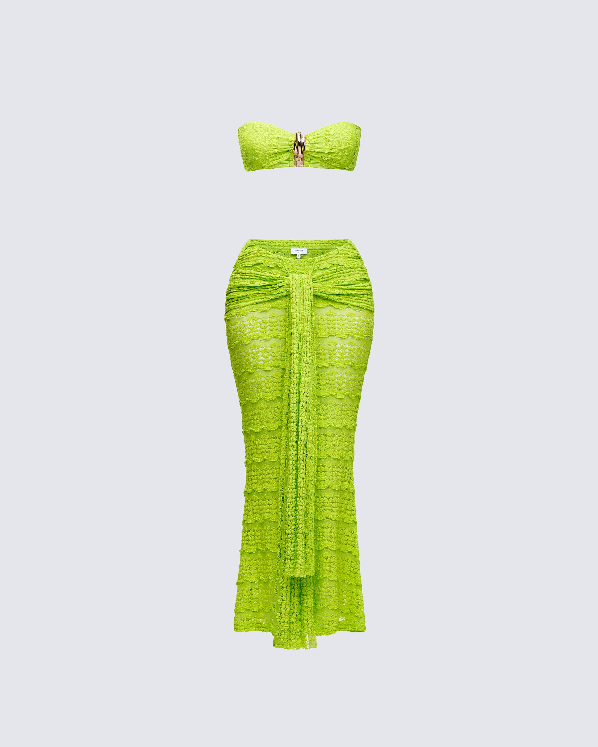 <p>Dreya Green Textured Bikini Top: 30% Cotton, 60% Nylon, 10% Spandex<br>Lining: 90% Polyester, 10% Spandex</p><p>Dreya Green Textured Bikini Bottom: 30% Cotton, 60% Nylon, 10% Spandex<br>Lining: 90% Polyester, 10% Spandex</p><p>Dreya Green Textured Maxi Skirt: 30% Cotton, 60% Nylon, 10% Spandex</p>