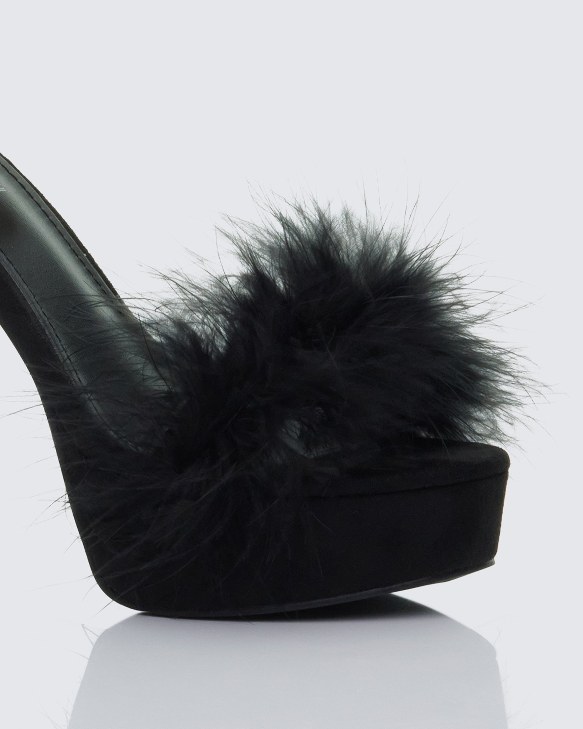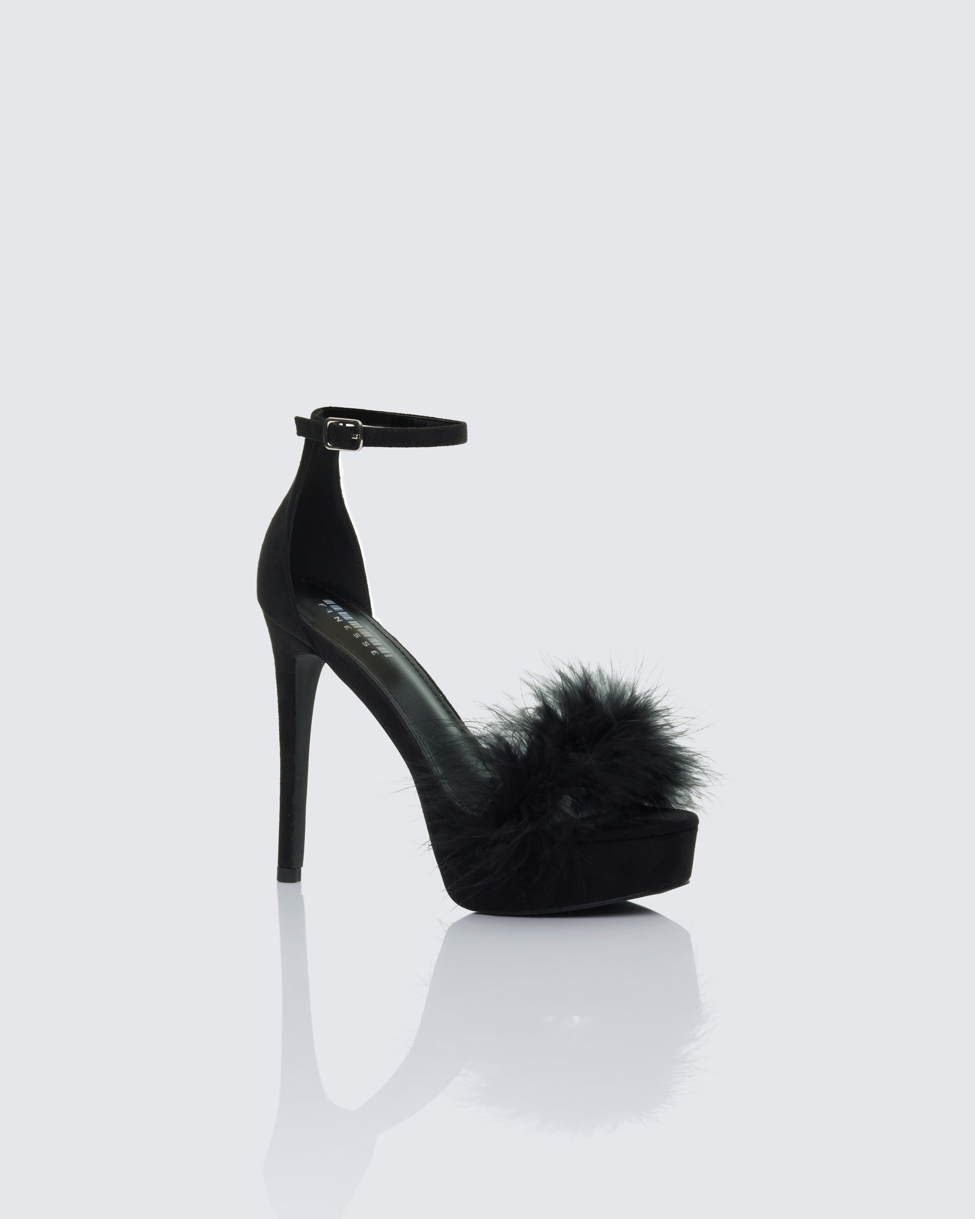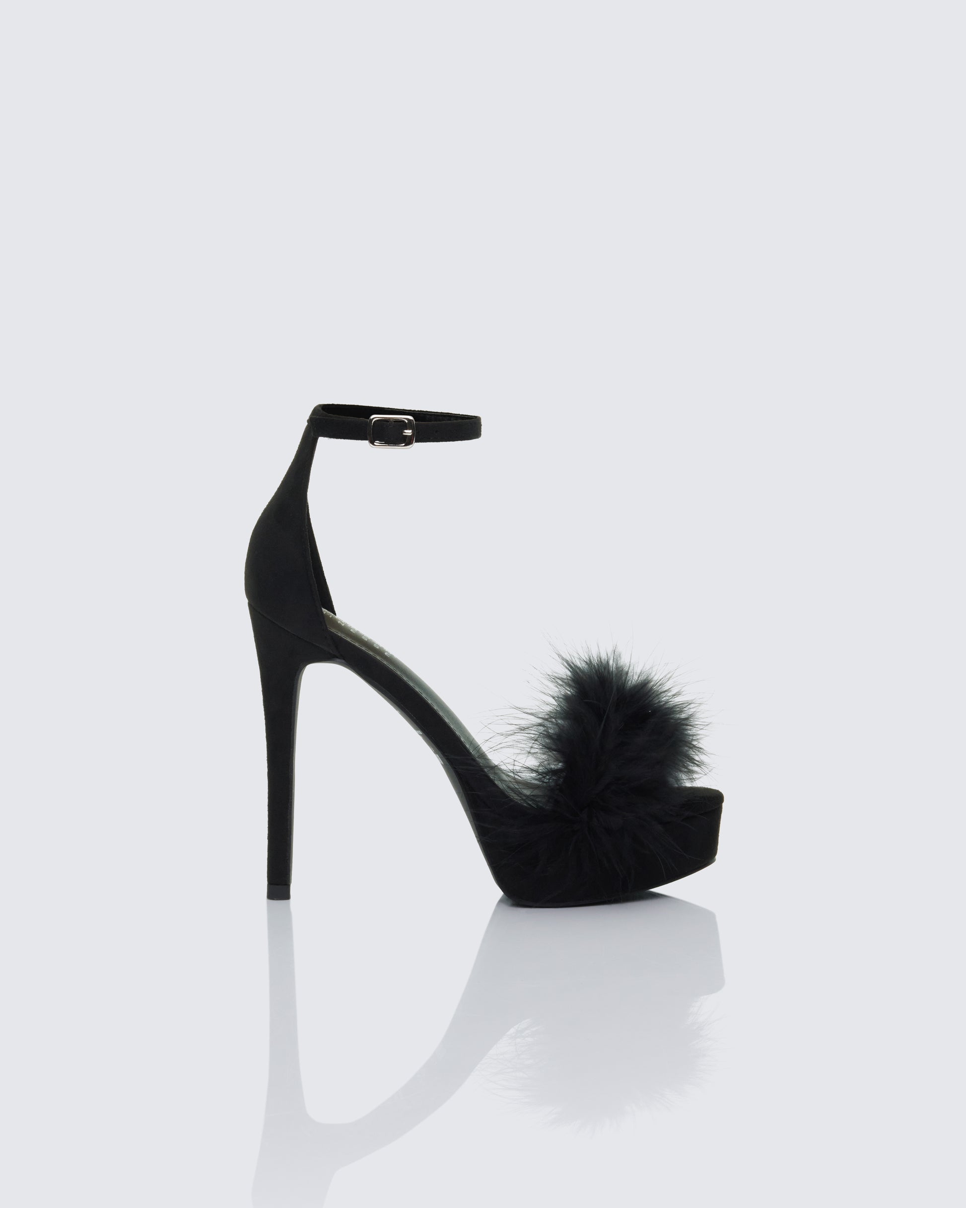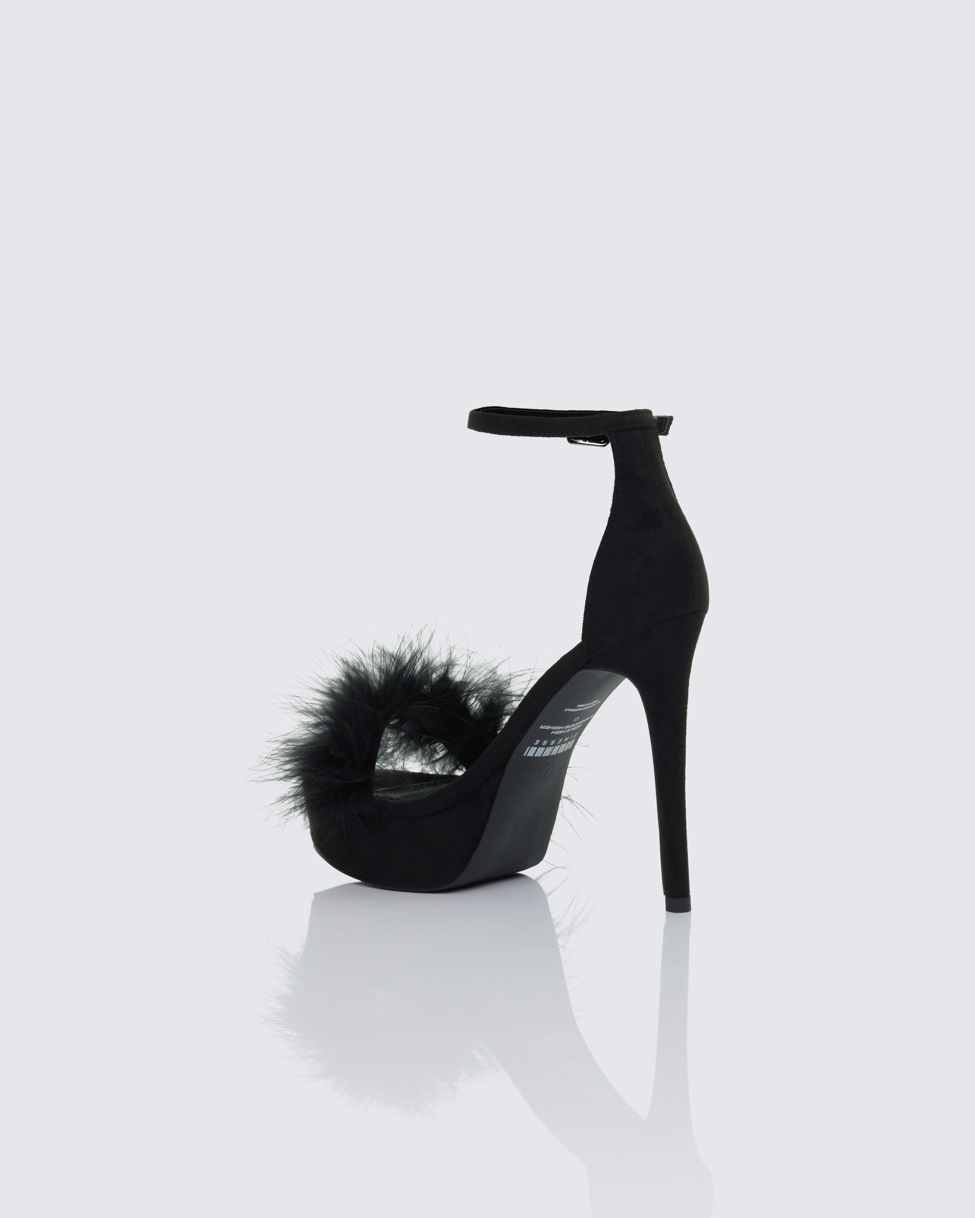 Dark, dramatic, and just the right amount of wicked 😏 Featuring sleek black satin, a sculpted stiletto, and a flirty feather detail - these heels were made for after-dark entrances 🖤