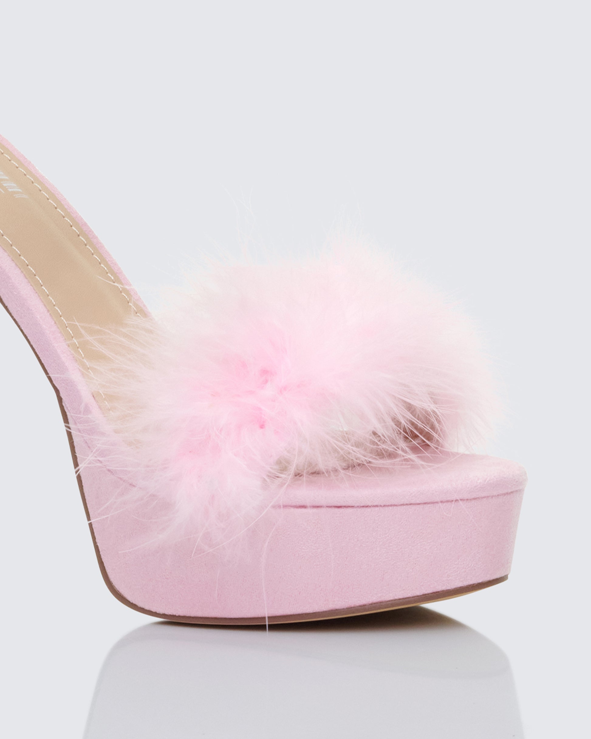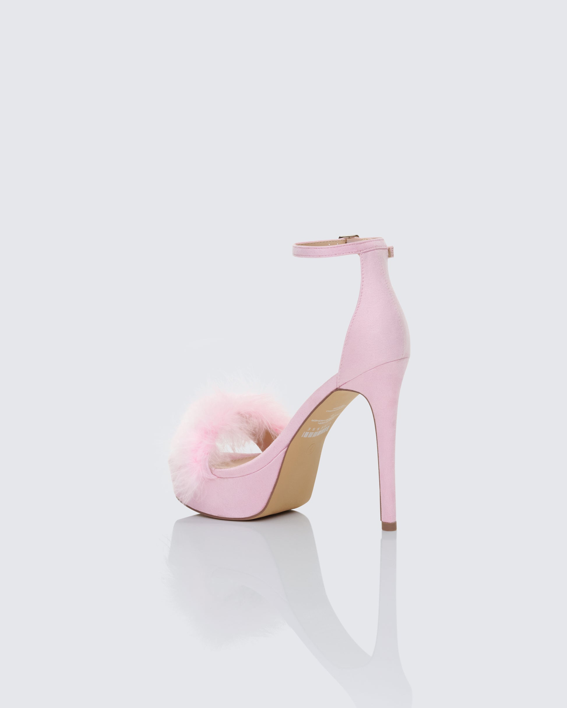 Sweet but far from subtle πŸ‘ This heel takes blush pink satin and tops it with a feather corsage for a look that flirts with every step πŸ’–Β