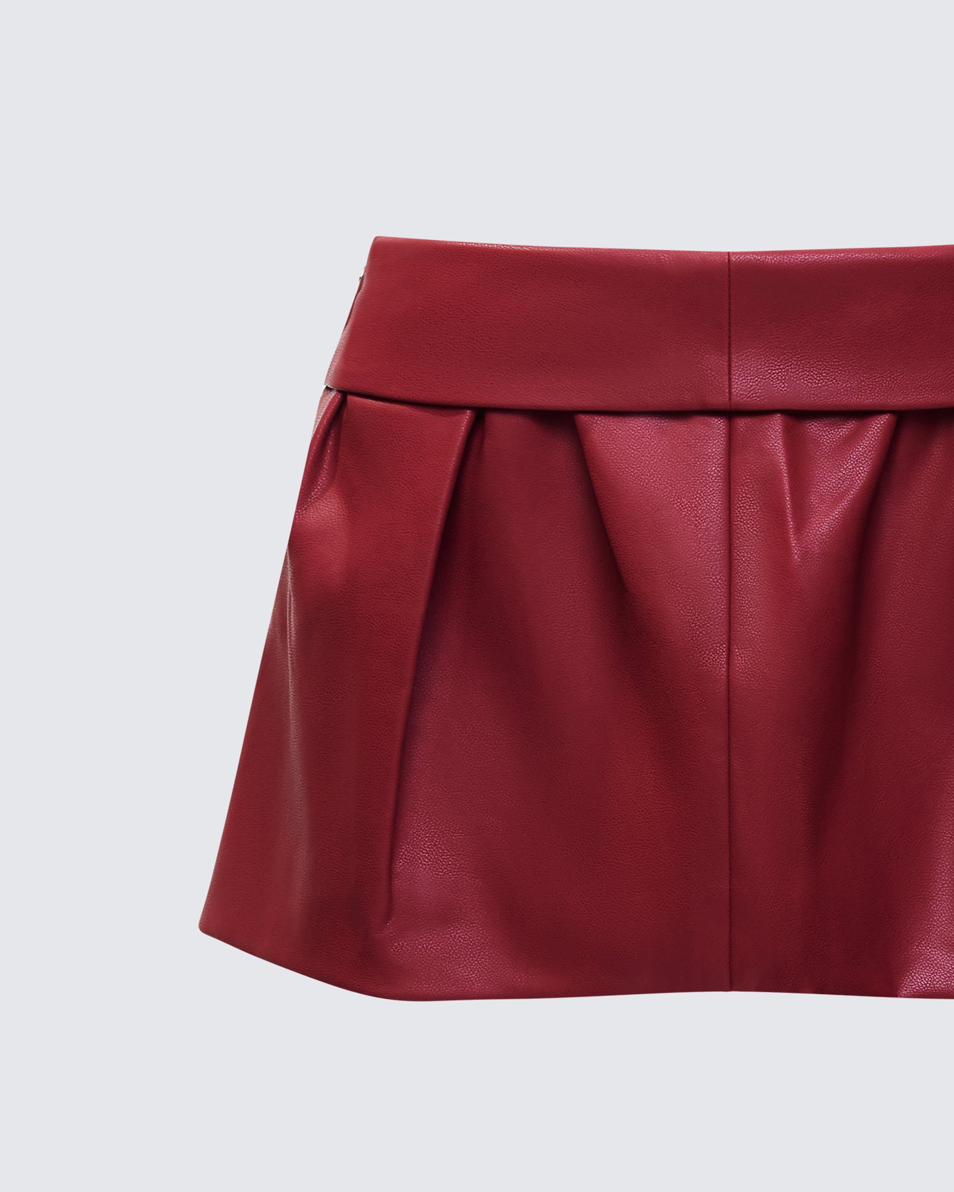 Cherry bomb energy ๐ This skirt turns up the heat with luxe vegan leather and a bold silhouette. Tiny? Sureโฆ Mighty? Absolutely ๐