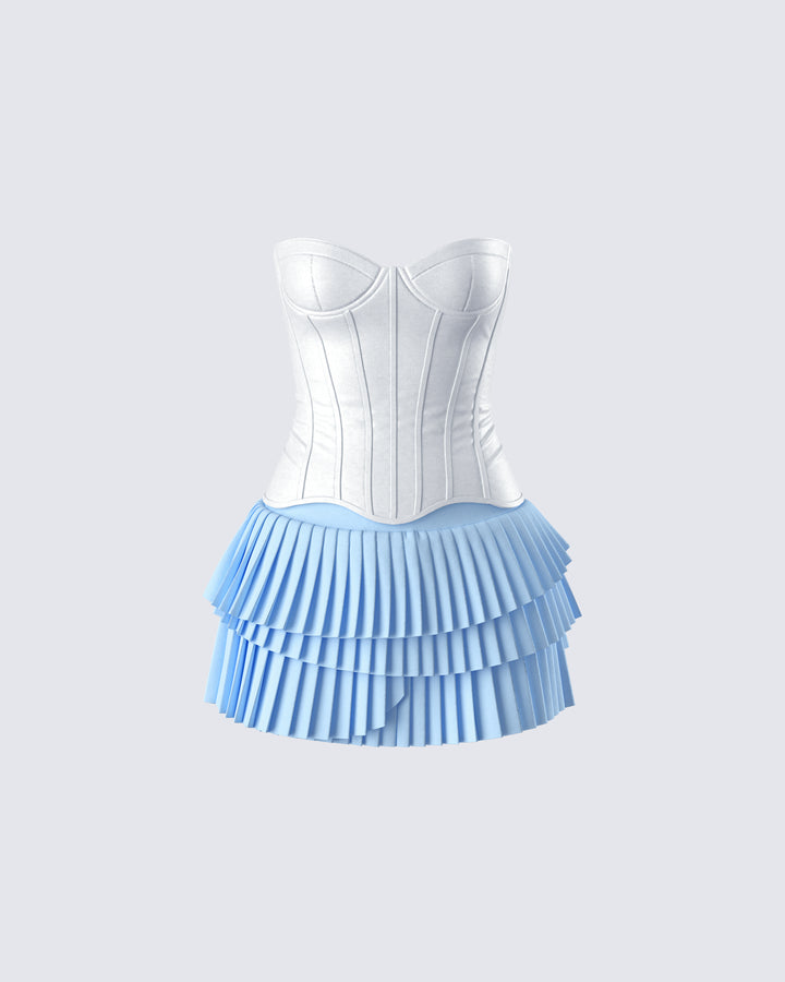Evalina Blue Pleated Mini Skirt
