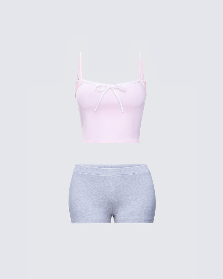 Make your day 10x sweeter with this pink bow cami 💗 Made from jersey fabric featuring a lace trim with a ribbon insert and adjustable straps - this crop top will have everyone calling you babygirl 🎀