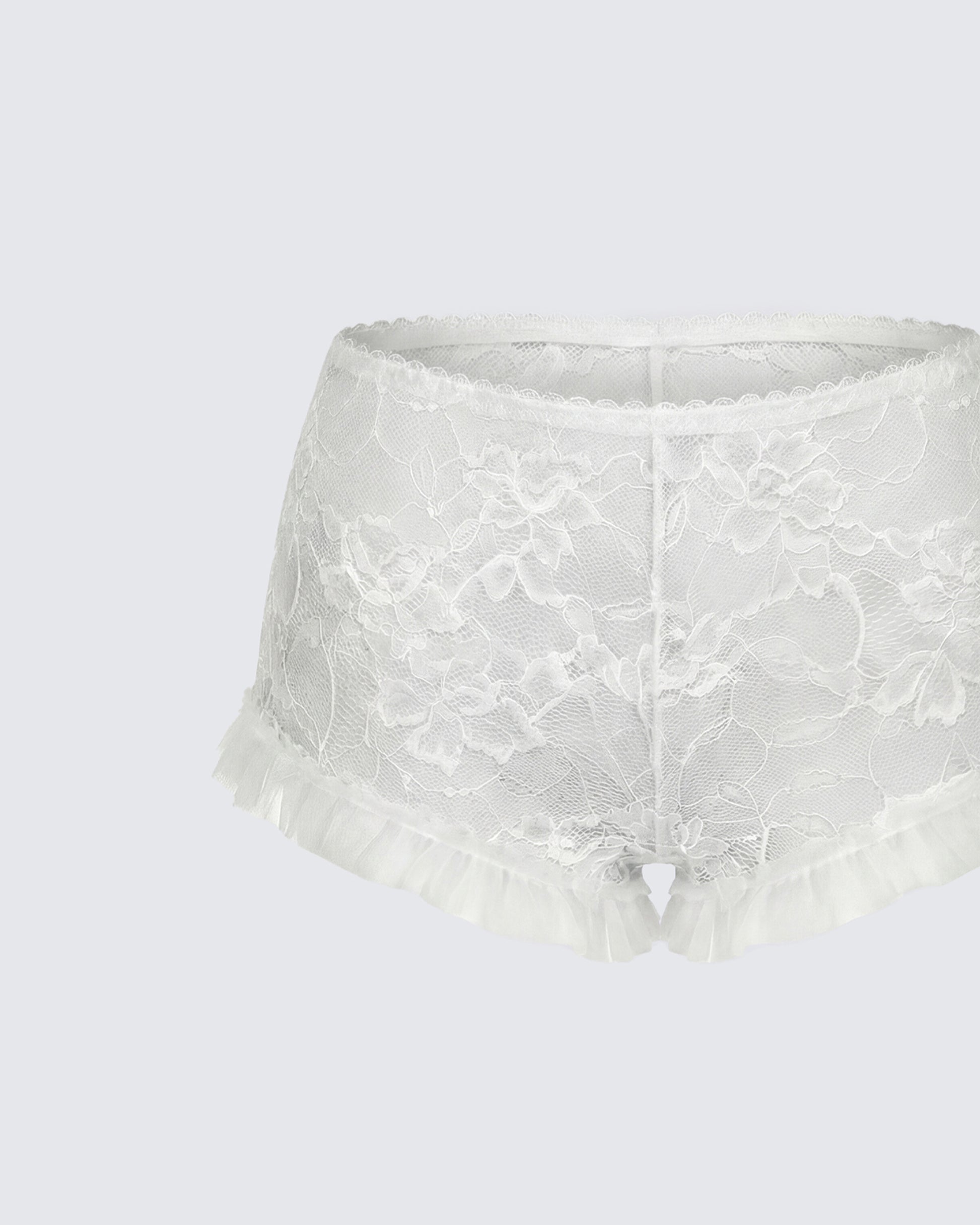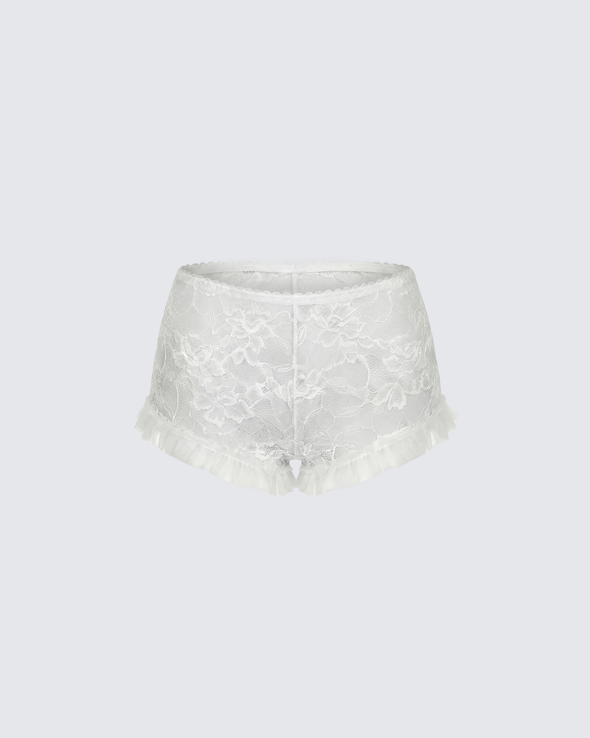 Sweet from afar, a little scandalous up close 😌 These shorts bring soft lace and flirty ruffles together in the tiniest little silhouette that was definitely not made to behave 🤍