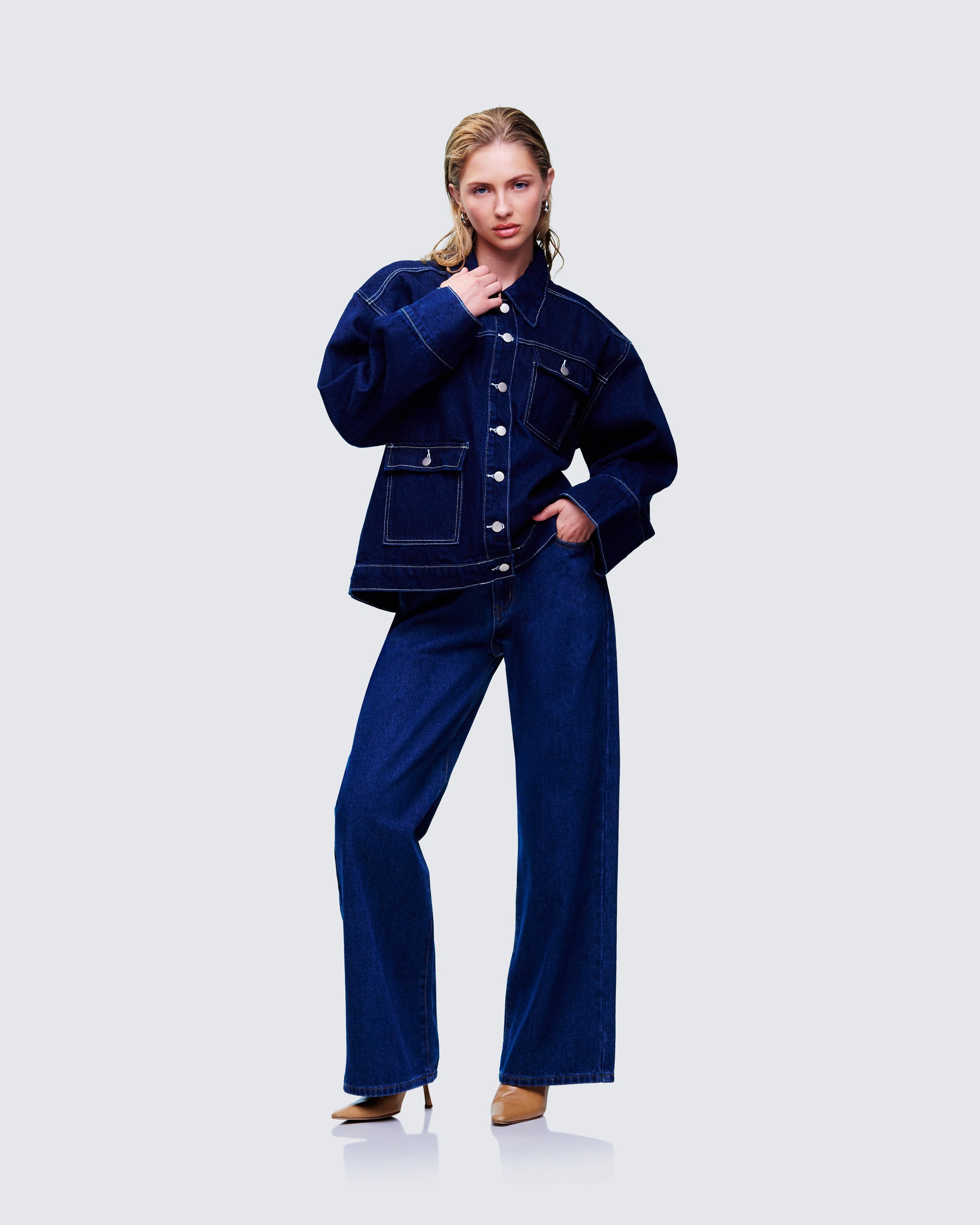 <p>Frovi Blue Denim Oversized Shirt: 100% Cotton</p><p>Dulcie Blue Denim Wide Leg Jean: 100% Cotton</p>