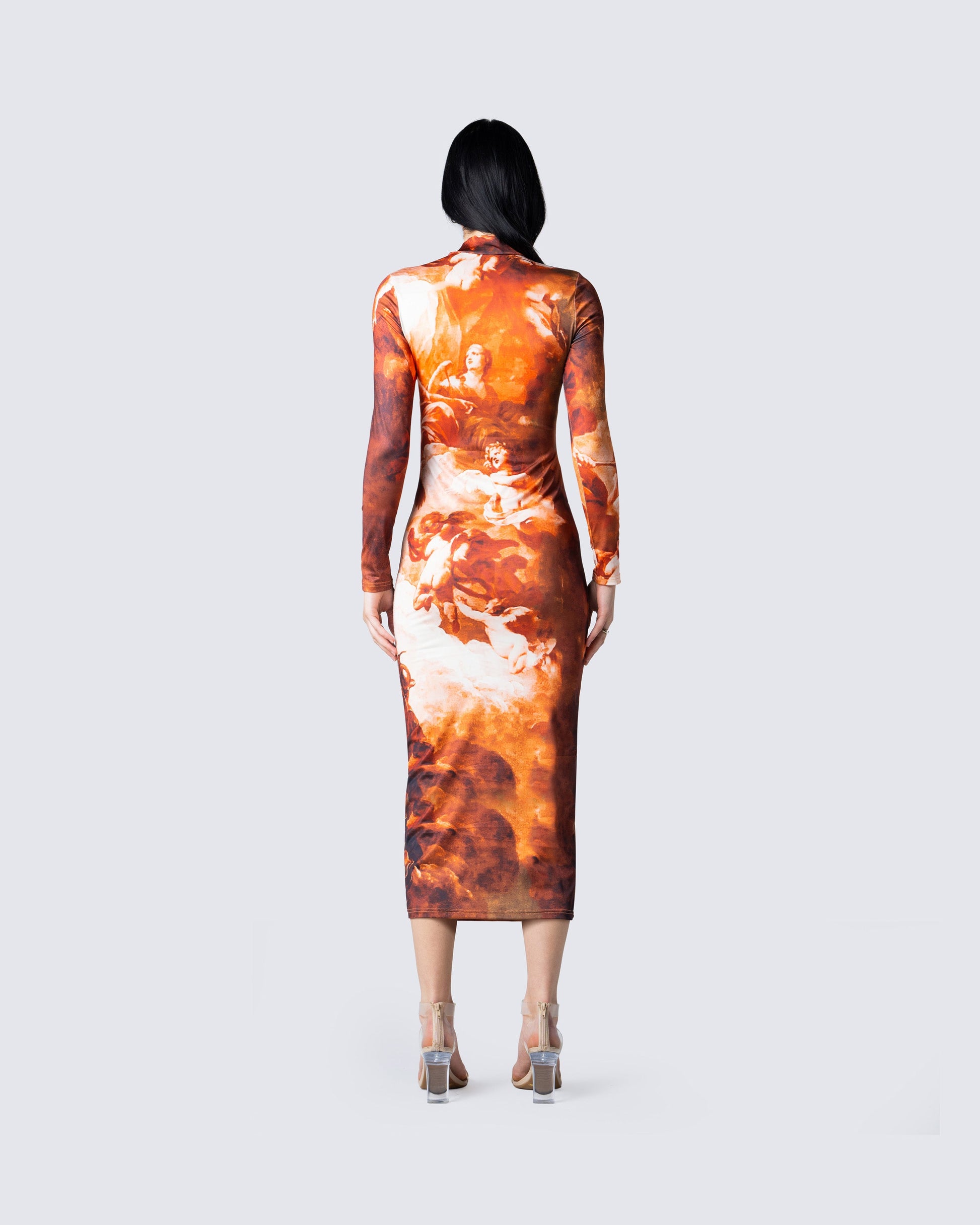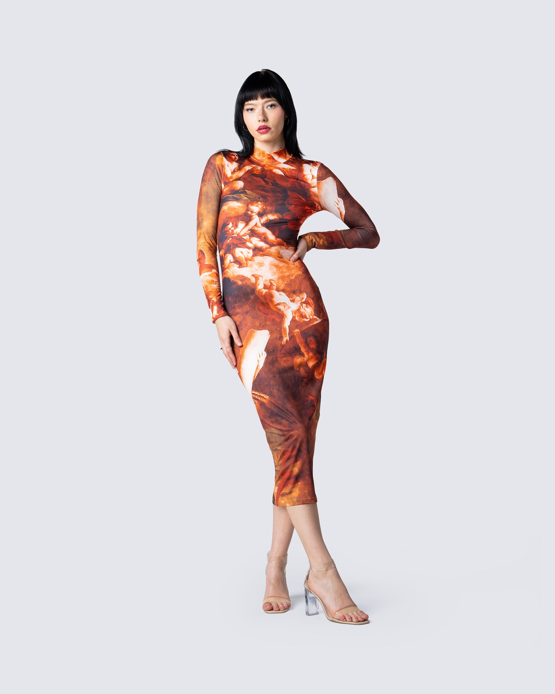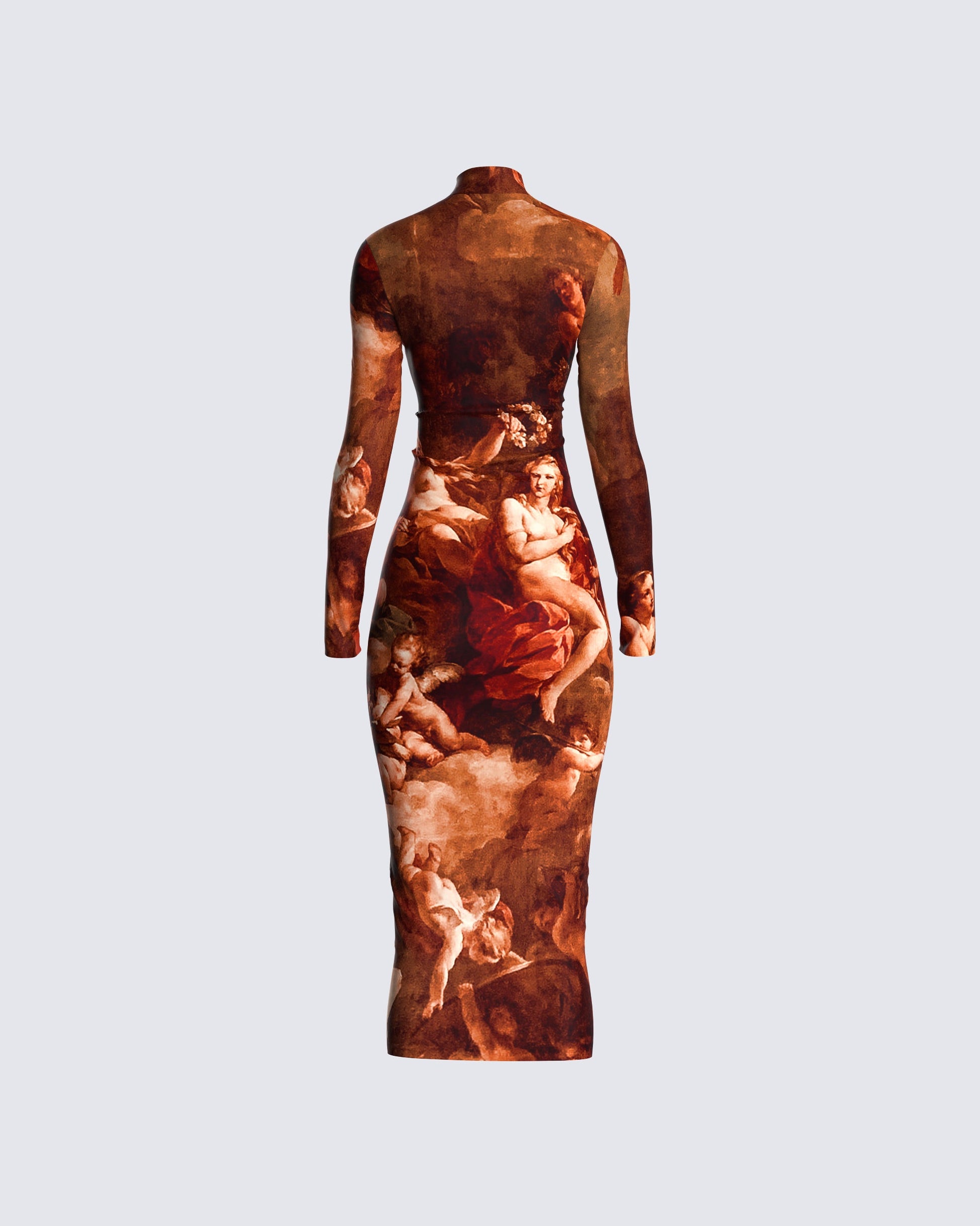The perfect date night outfit - but don't go to an art museum, they might try to keep you 😇 Feel priceless in this long sleeve renaissance print midi dress 💋