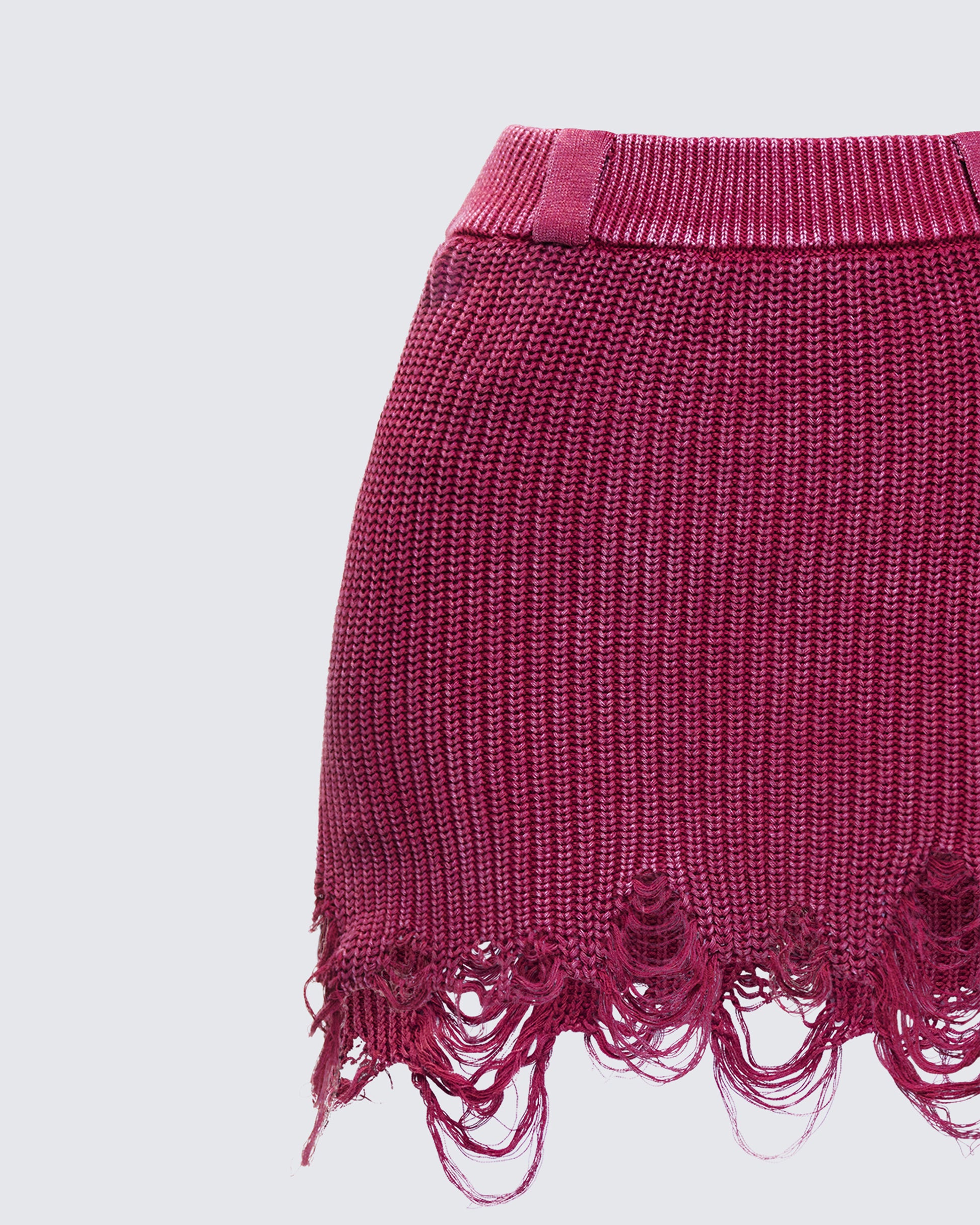 Sweet but rough around the edges 💋 This maroon mini skirt brings the attitude with raw hems and a perfectly worn-in wash – built to flirt, but with a little bite ❤️