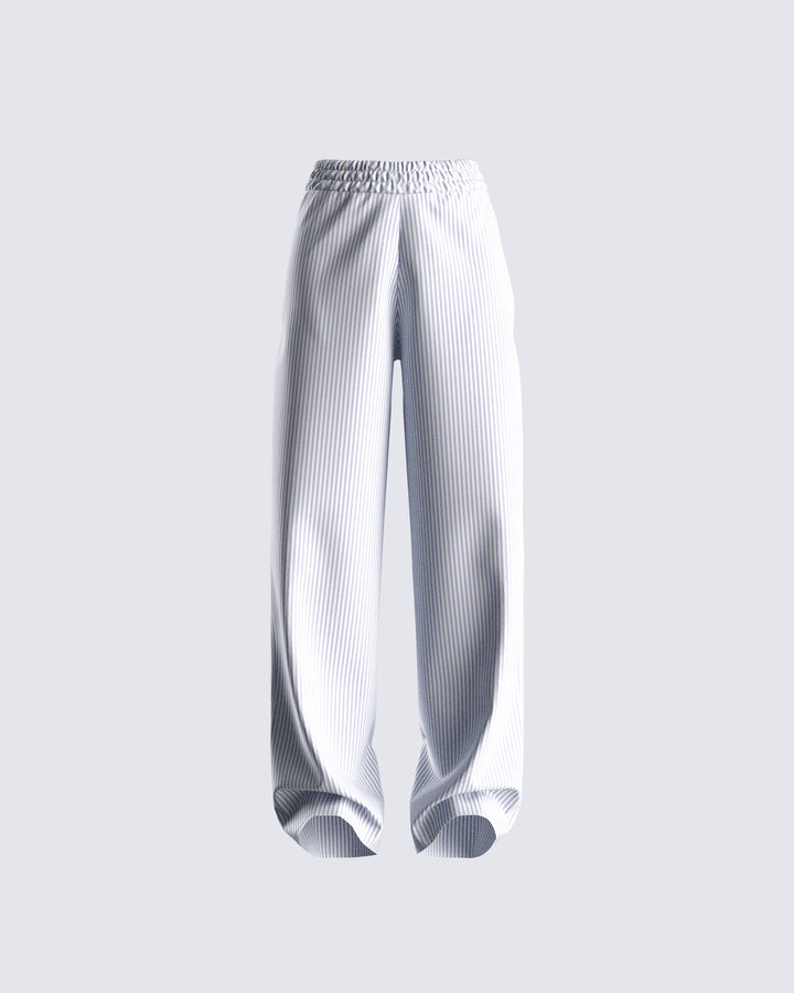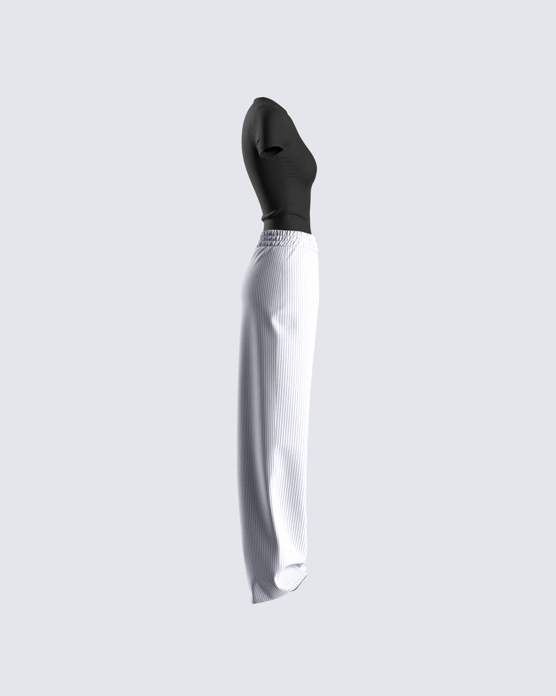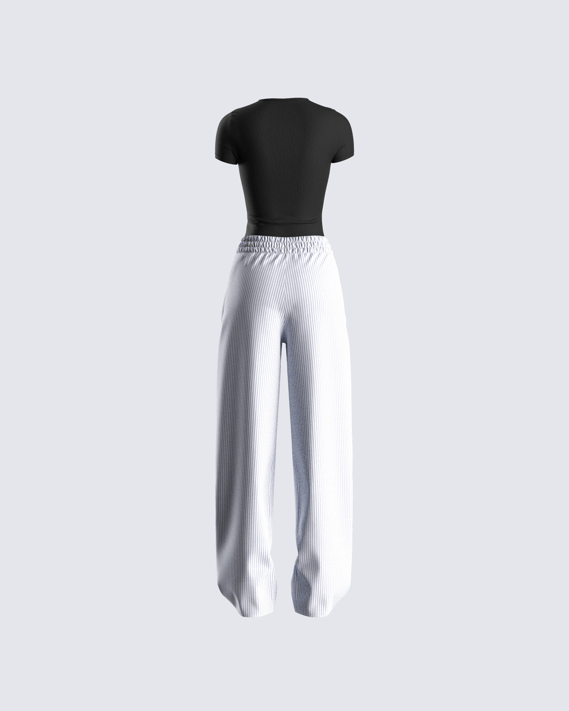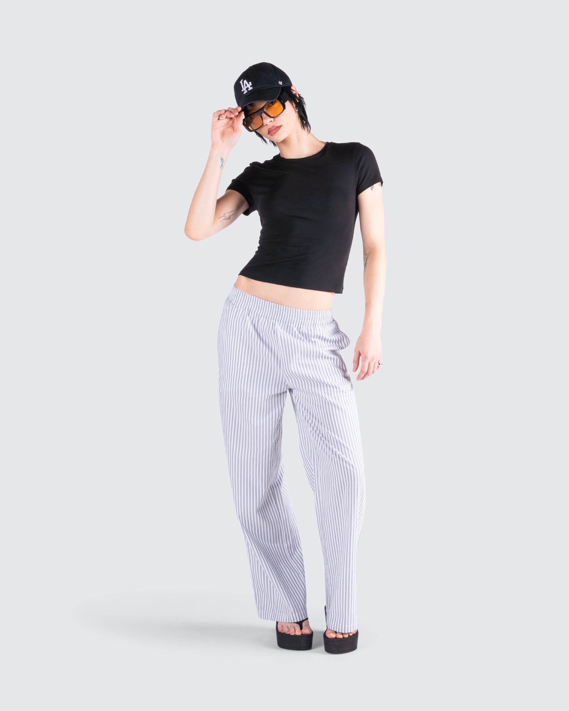 Bad b*tches have casual days too 💅 This cozy two-piece set features a black jersey top, and grey striped poplin pants for a look that can be worn all day, and night… literally 😜