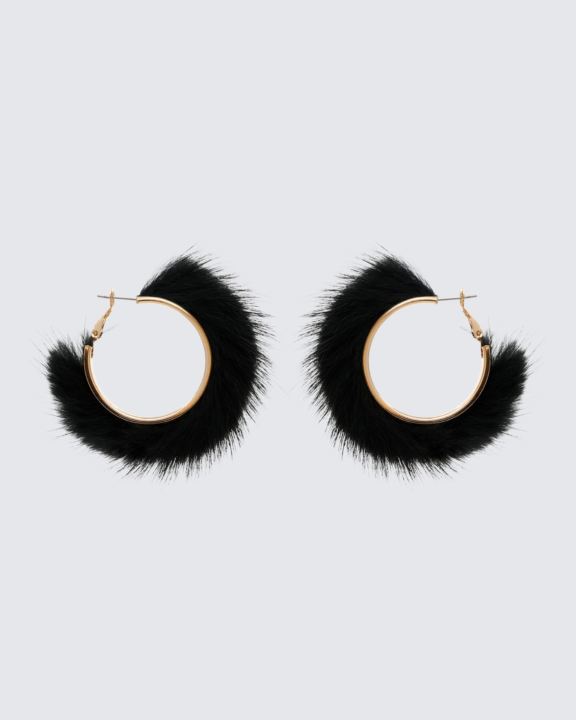Bold hoops, plush detail 🖤 Wrapped in soft black fur, these statement earrings bring drama and texture, turning a classic hoop into the ultimate after-dark accessory ✨
