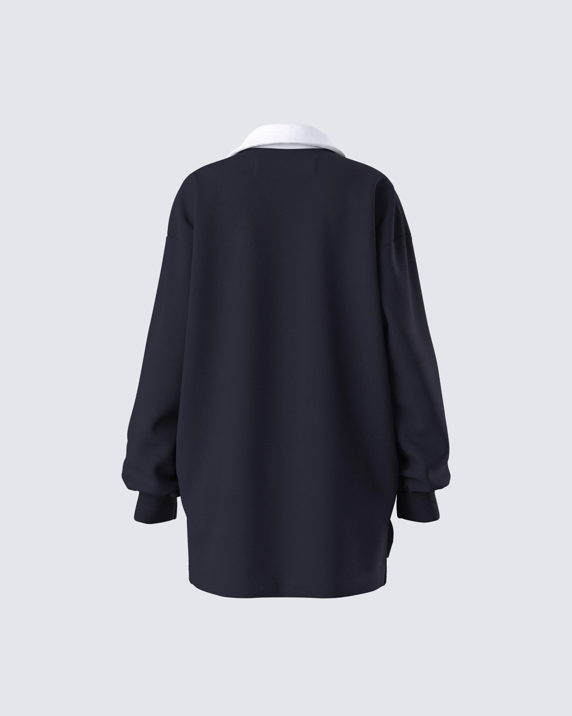 This fit's for our baddies who like to teach them a lesson 😜 Crafted from french terry shelf fabric and complete with a cotton shirting contrast collar, an inside button placket, and embroidery on the left chest - this black rugby polo dress will make sure they are all taking notes 💙