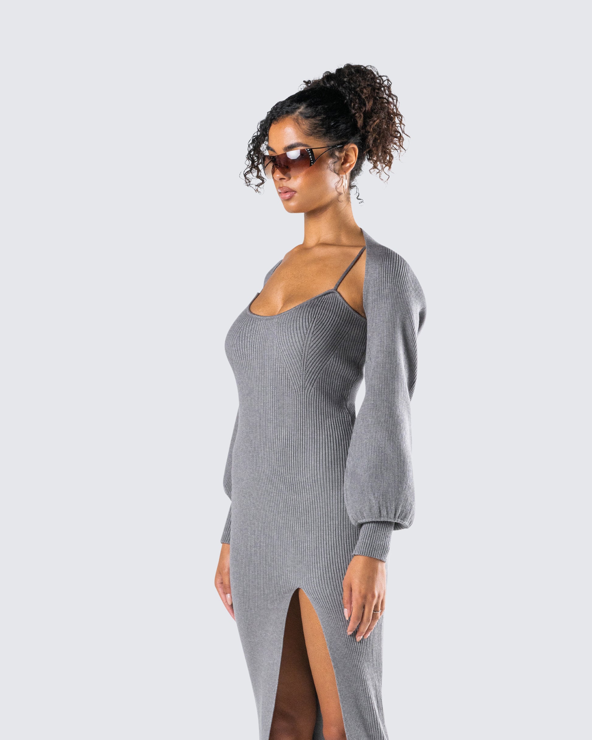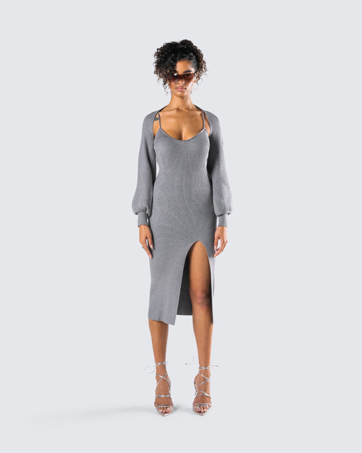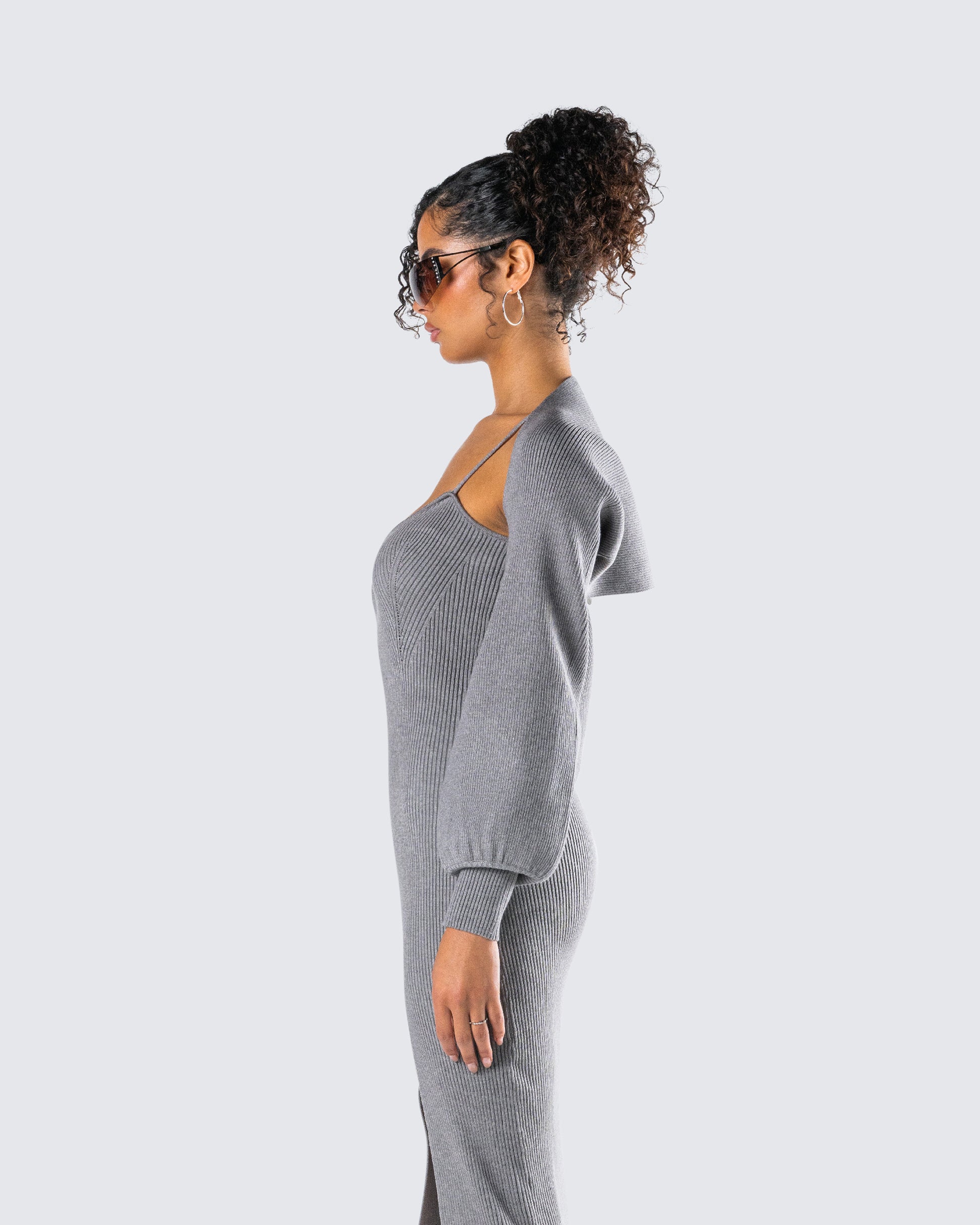 Ilana Grey Rib Shrug Sweater Top