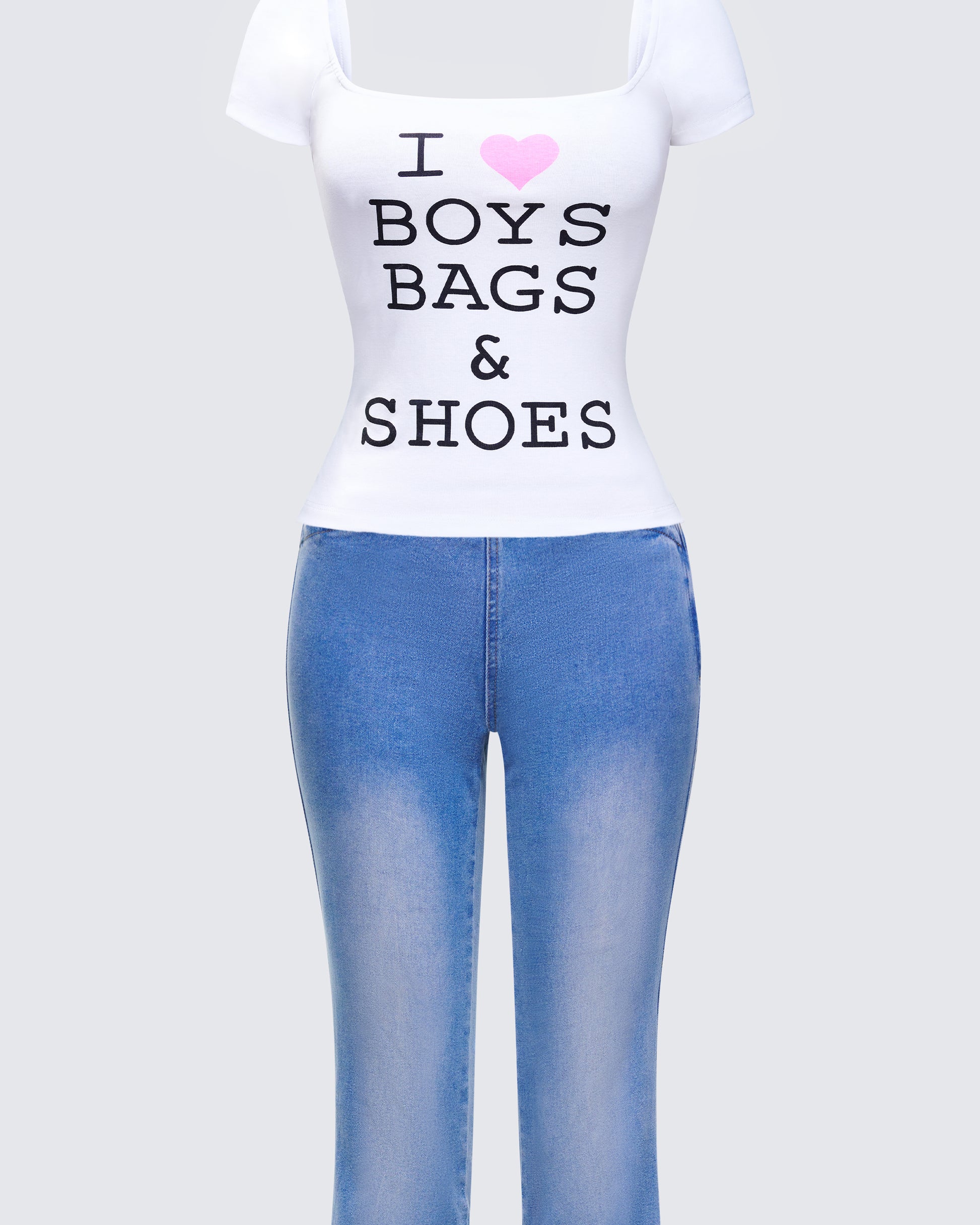 The ultimate 2000s flashback π This set pairs a slogan cap sleeve top with low-rise blue denim flares for a look that's pure nostalgia π