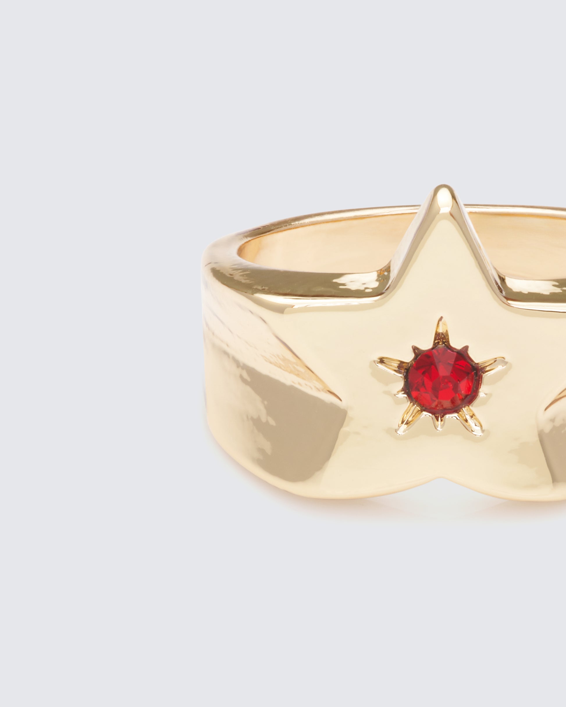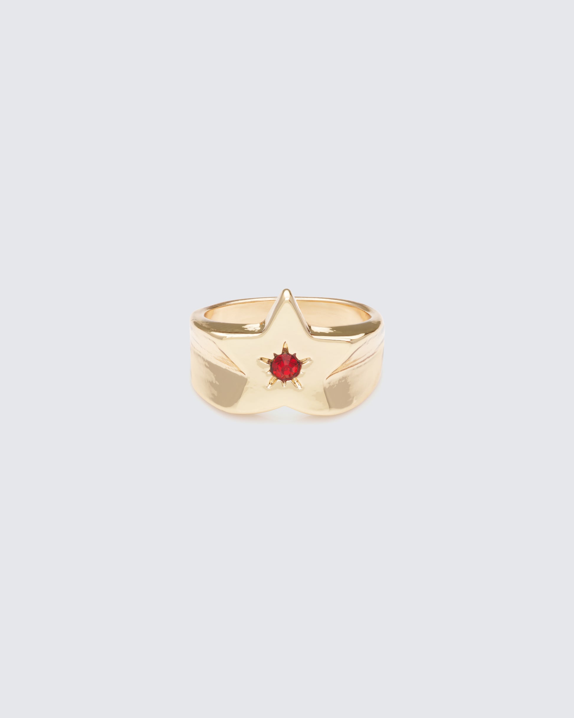 Stars on your hand, wishes at your fingertips 🌟Complete with a gold star design and accented by a red gem, this ring brings it-girl to every occasion 💄