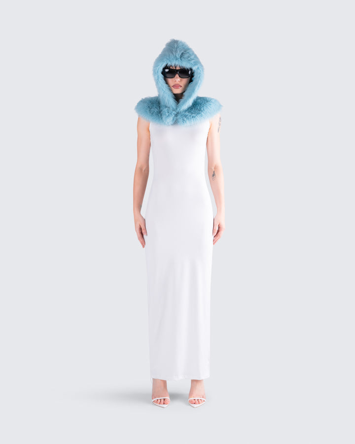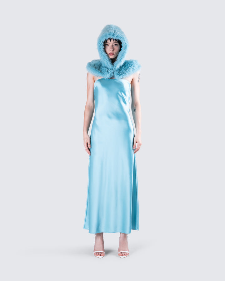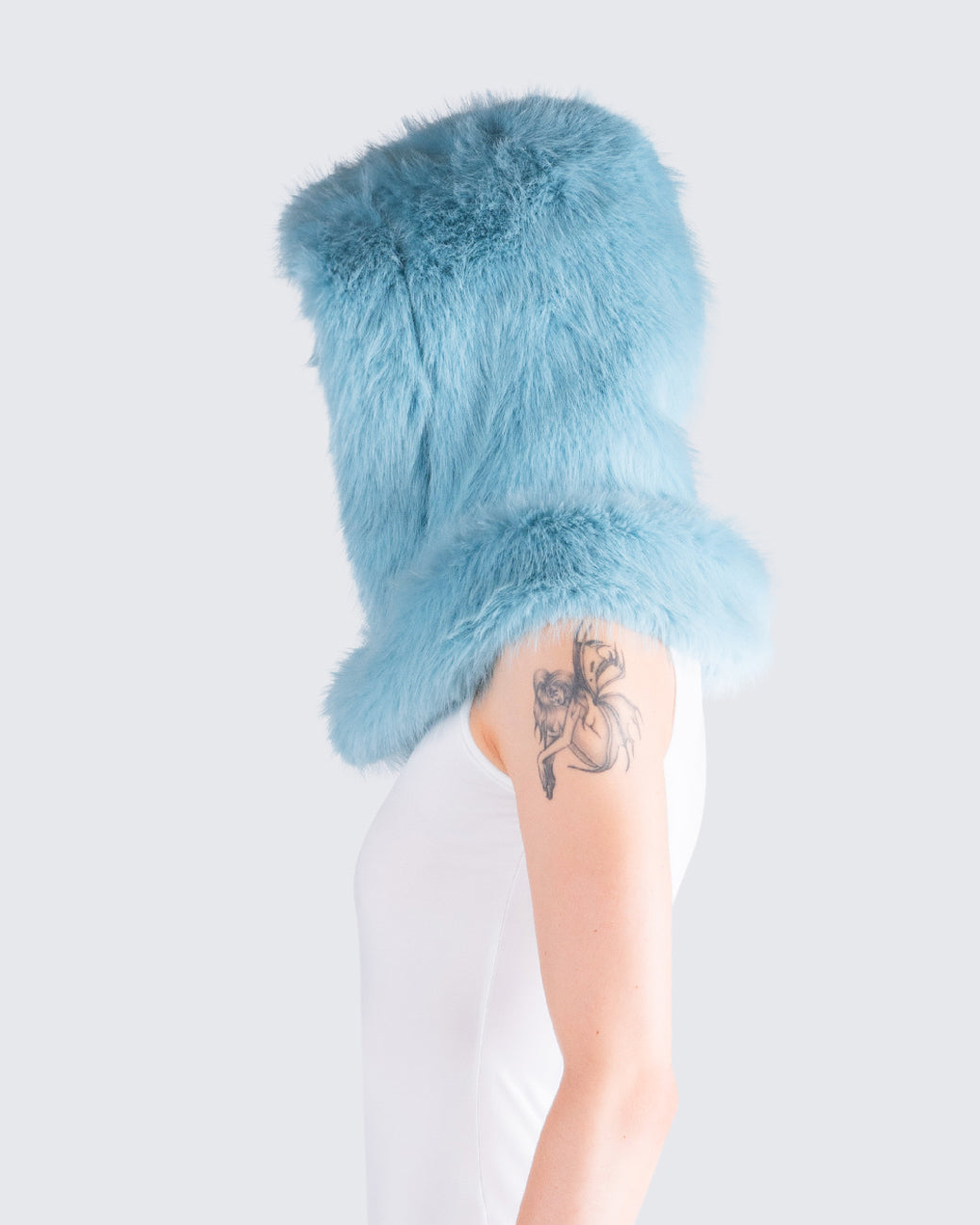 Have temperatures rising even on the chilliest of days in this blue hood π Made from soft faux fur and complete with a hook & eye closure for a fierce winter statement piece βοΈ