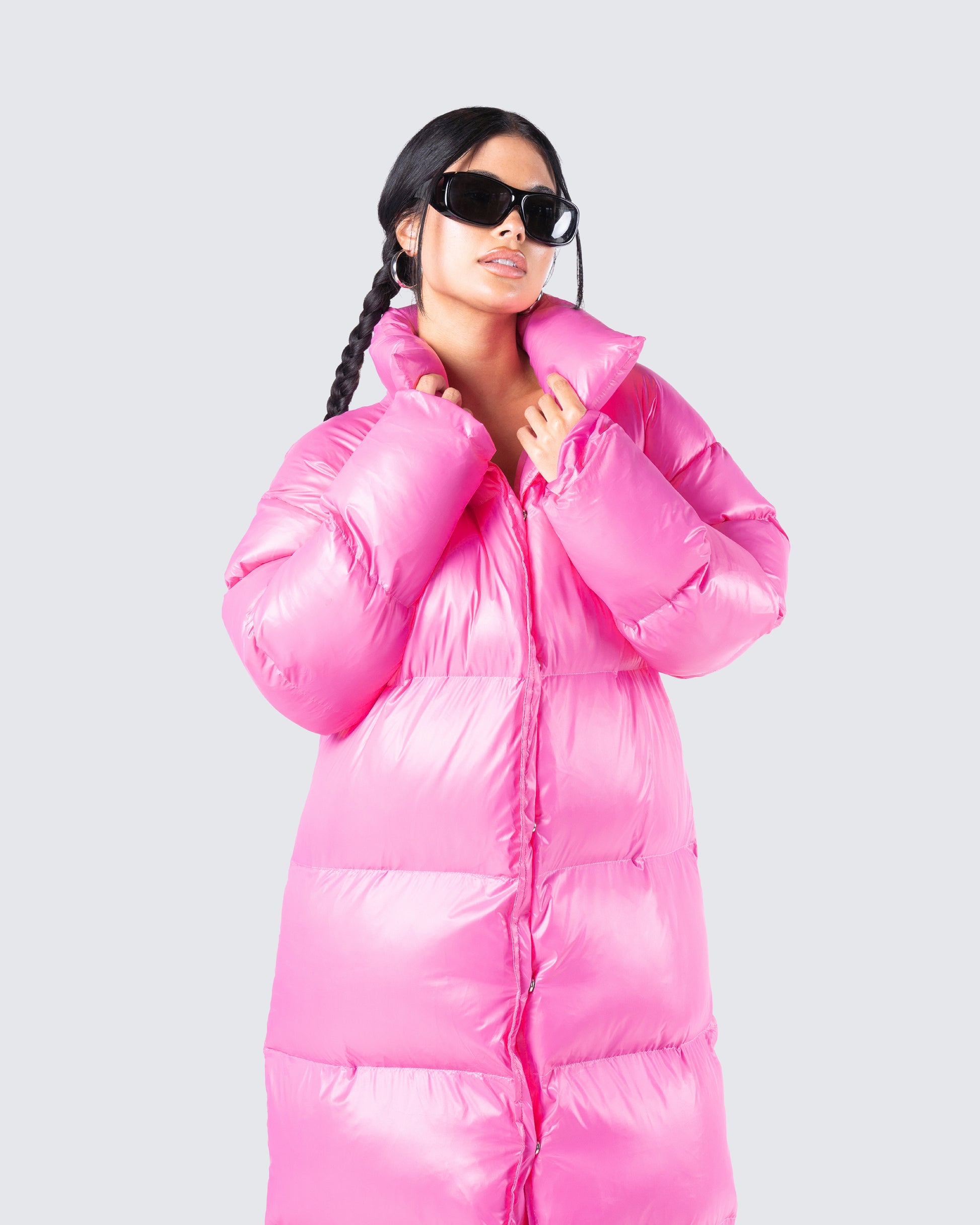tis the shade of the season 💖 Even if you aren't a celebrity you'll have your own paparazzi wearing this outstanding piece. Made from puffer jacket fabric, and complete with snap button closures 😍