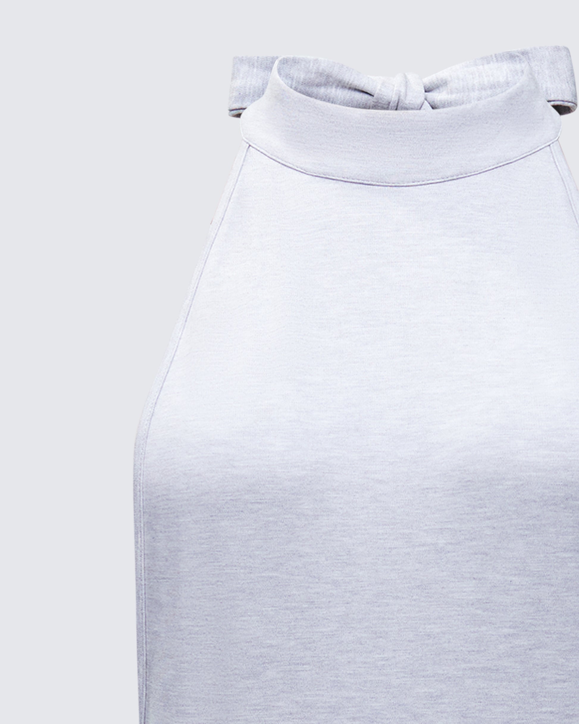 The perfect grey mini dress for anything and everything šŸ¤Ā Made from ponte fabric, featuring a low open back, a pull-on style, and halter ties at the back neck - this simple, yet significant dress is the perfect closet stapleĀ šŸ‘