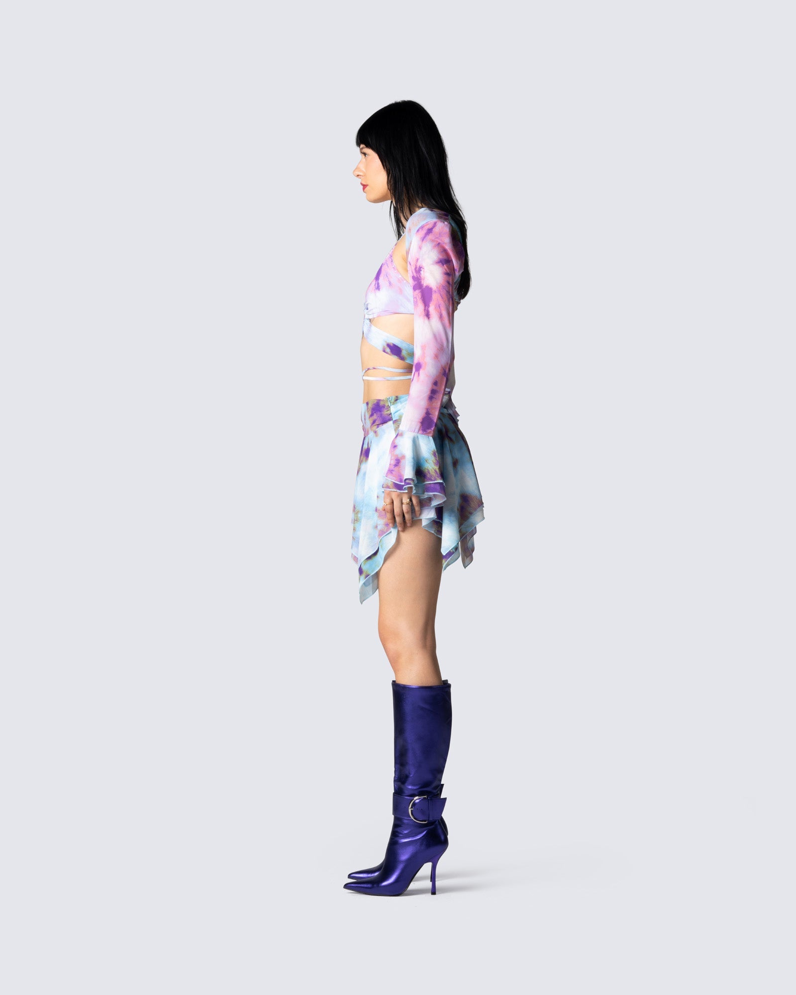 <p>Kadence Tie Dye Print Shrug: 100% Polyester</p><p>Kadence Tie Dye Print Top: 100% Polyester</p><p>Kadence Tie Dye Print Skirt : 100% Polyester</p>