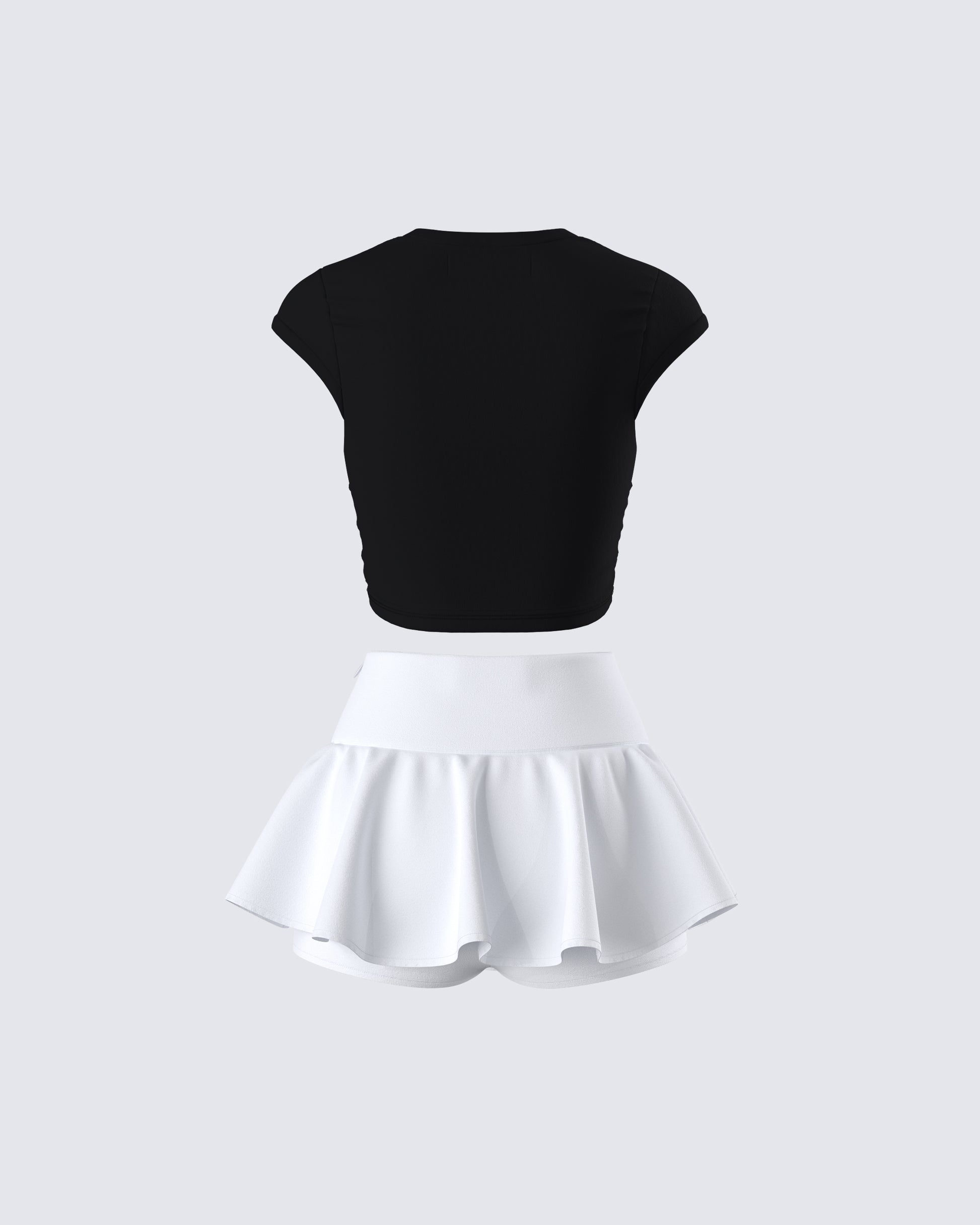 <p>Kari Black Libra Graphic Top: 70% Cotton, 30% Polyester</p><p>Pippa White Ruffle Tiered Skort: 95% Polyester, 5% Spandex</p>