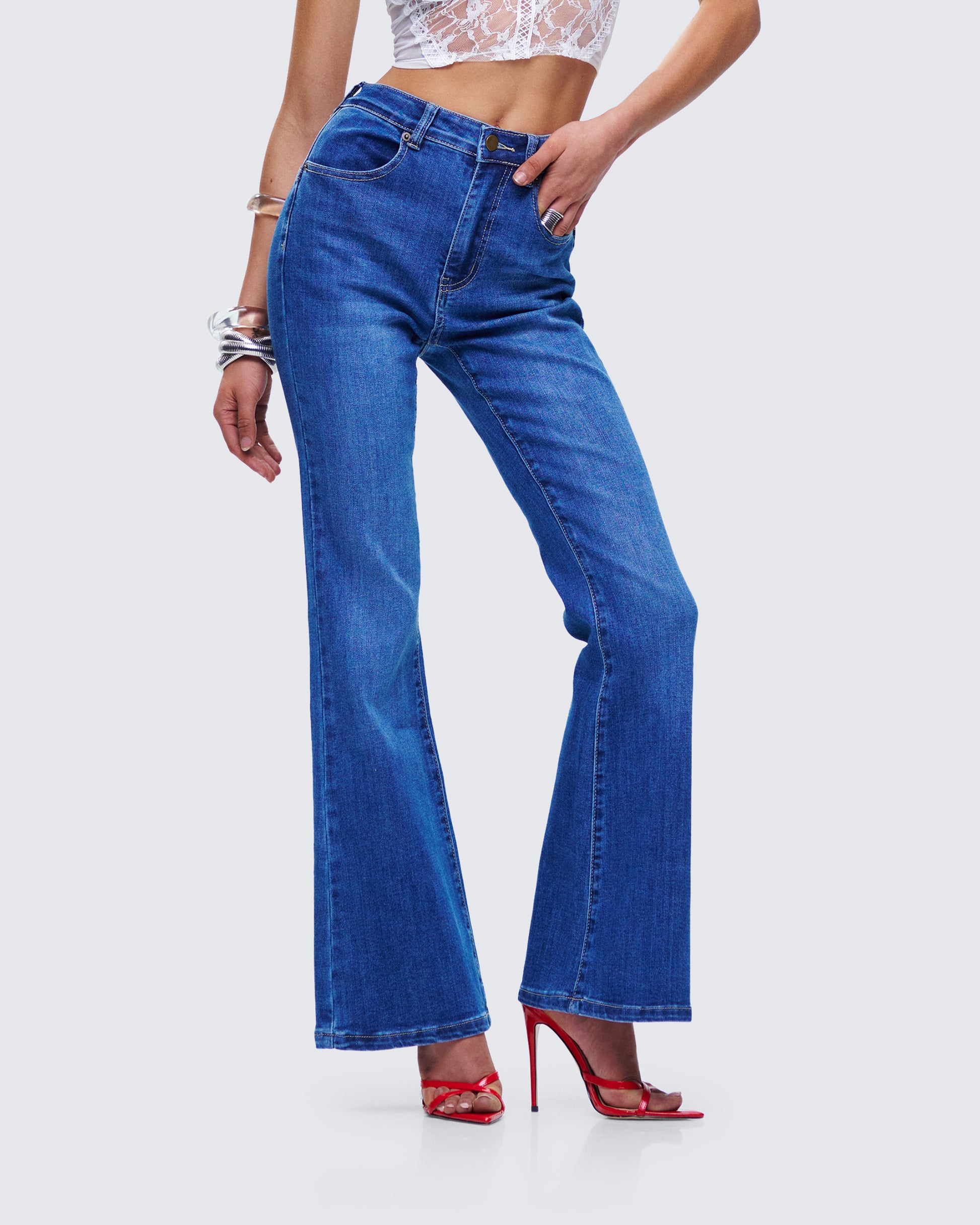 High-rise jeans are a closet MUST… we all know this 😌 Perfect for any and every occasion, these denim jeans complete with distressed washing and flared leg will be your new staple 💙