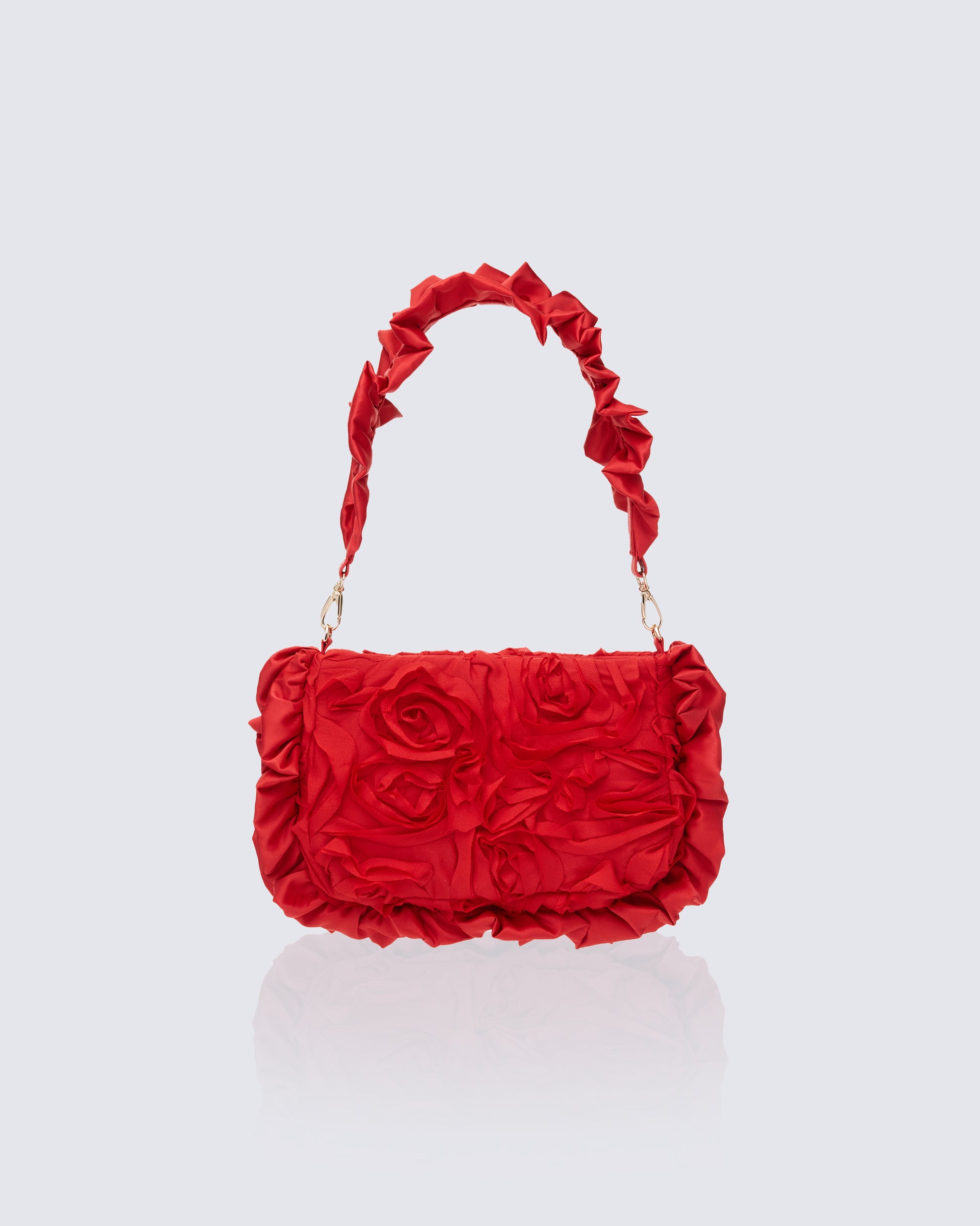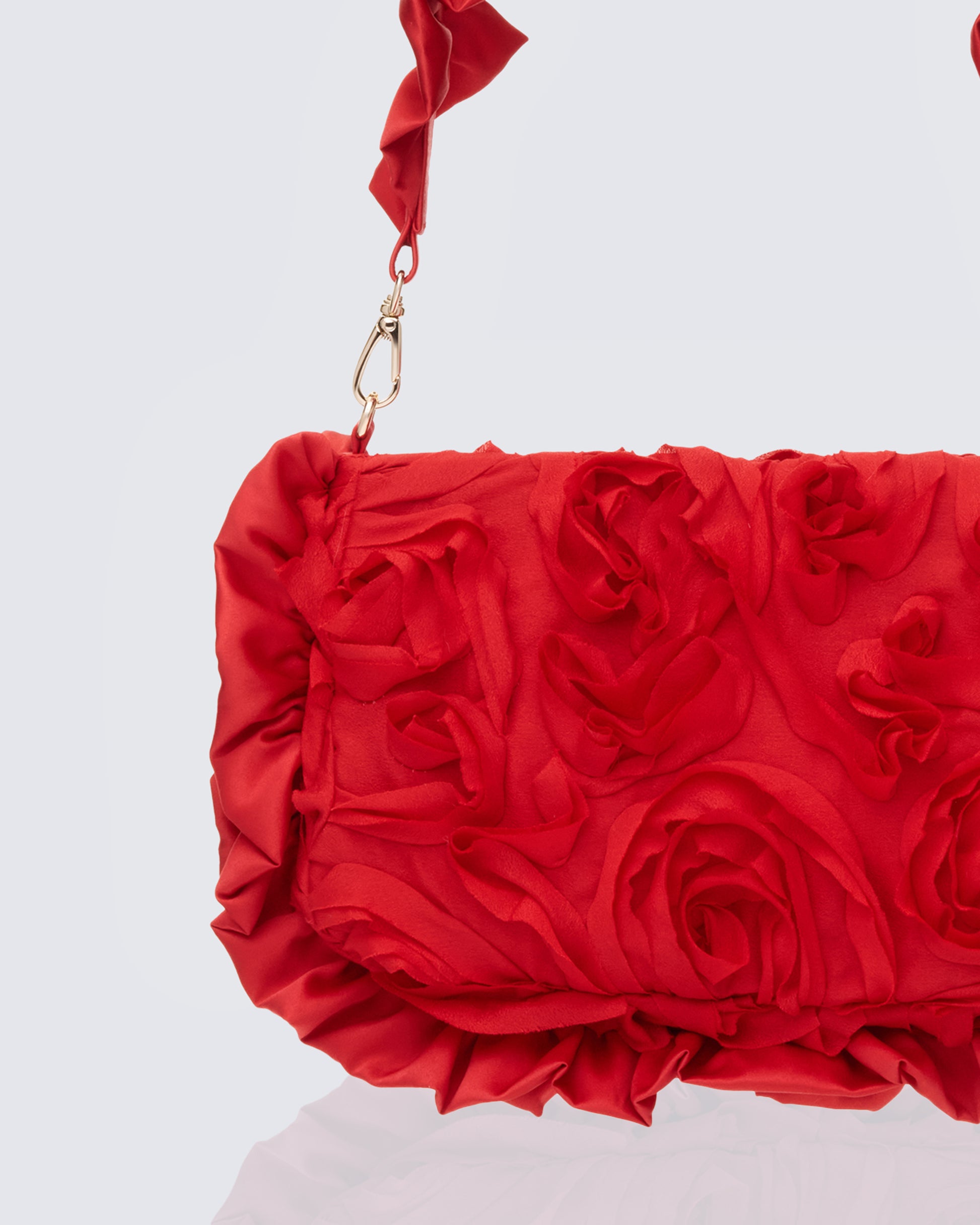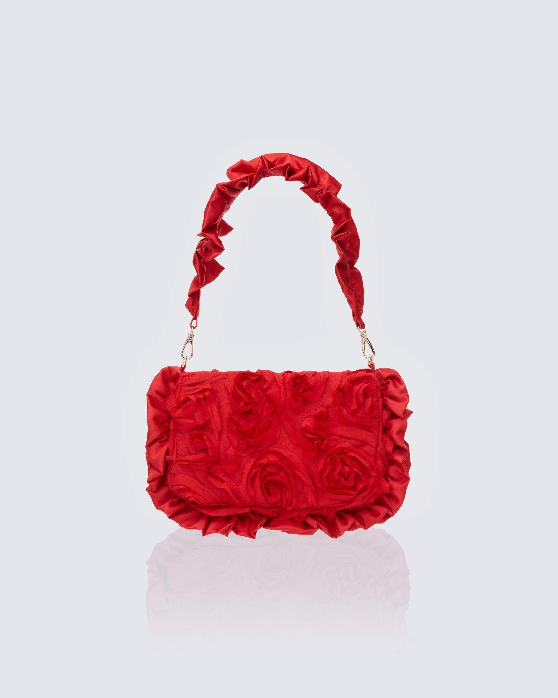 Roses that never wilt 🌹 More femme fatale than fairy tale, this organza ruffle bag drips in drama with sculpted petals that do all the flirting for you πŸ’‹