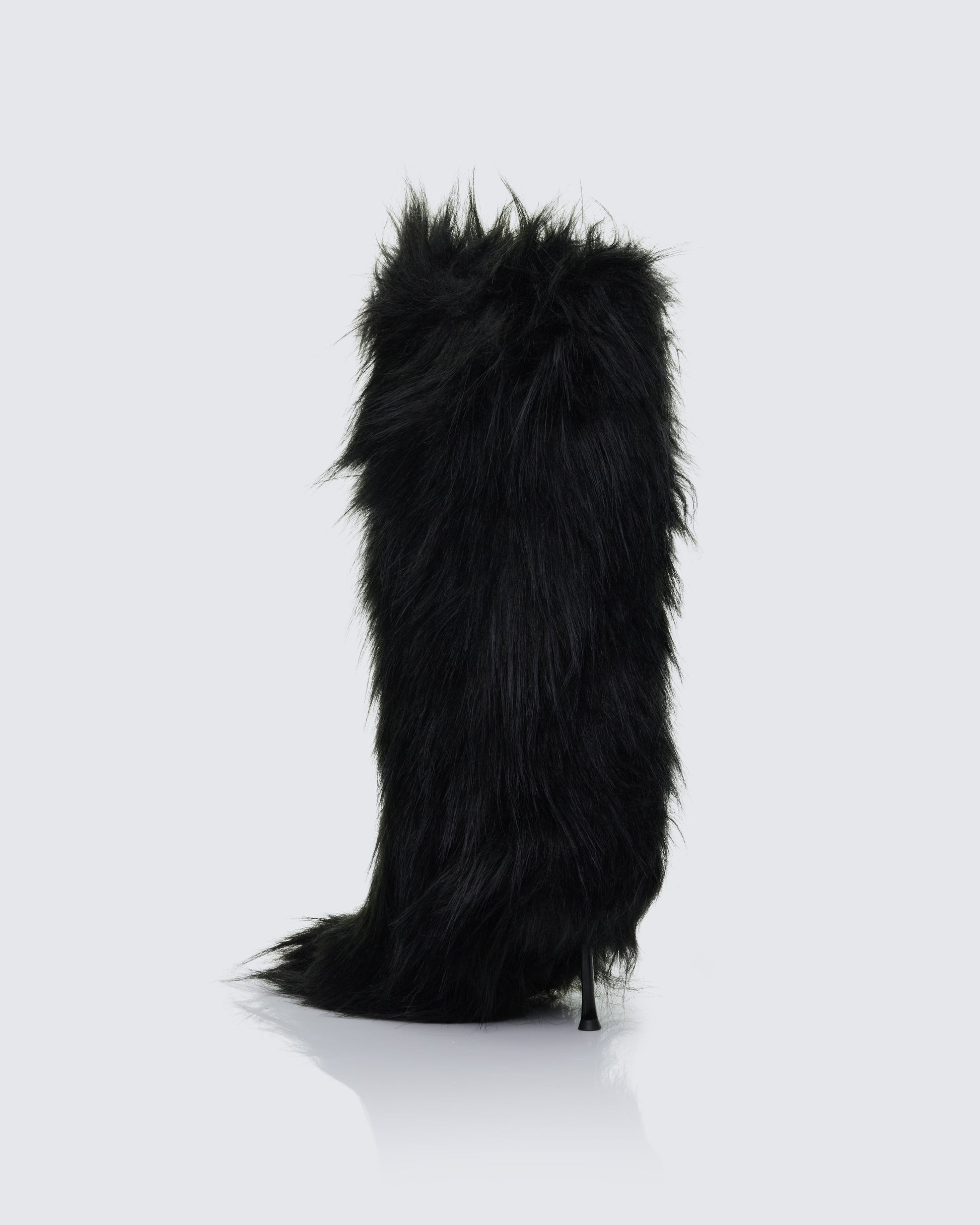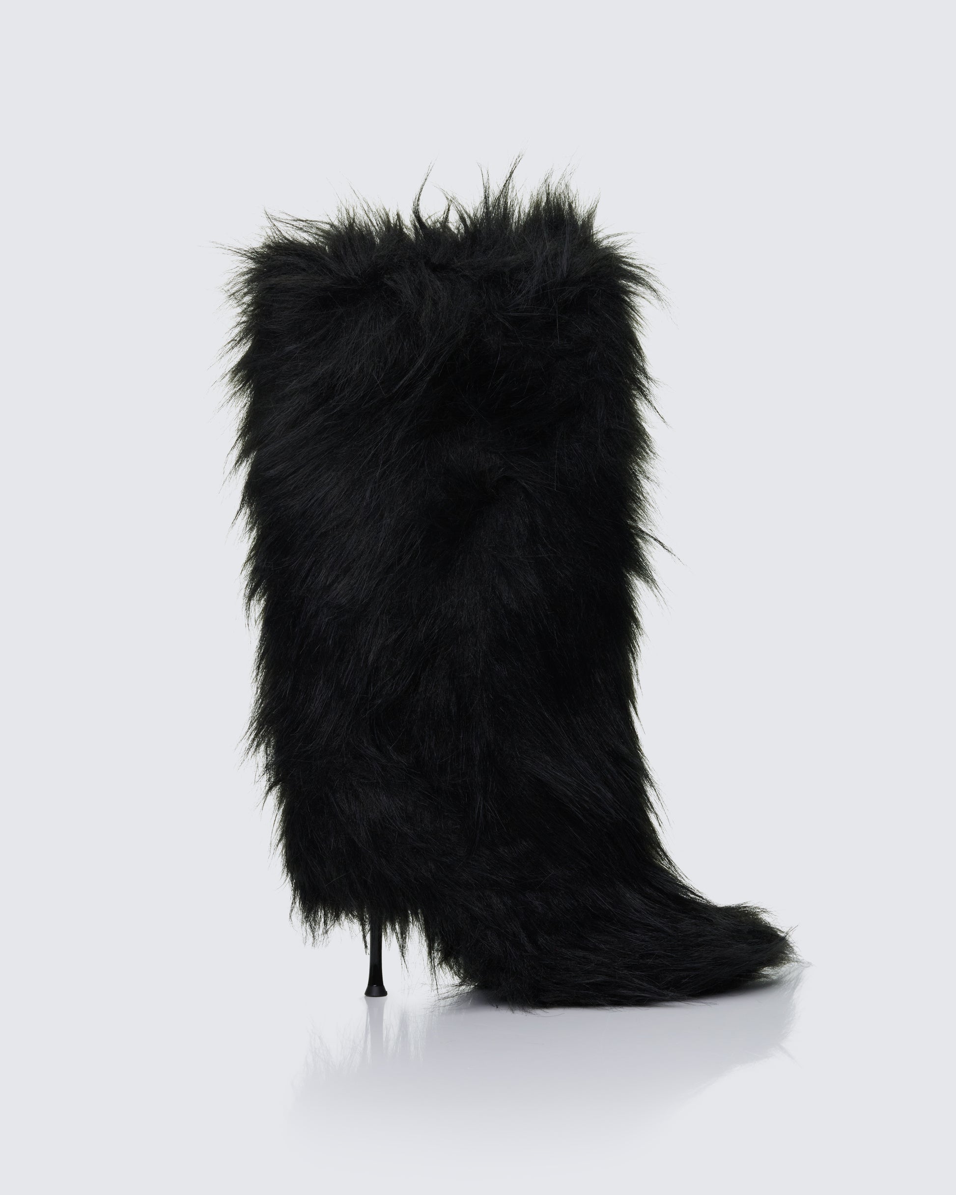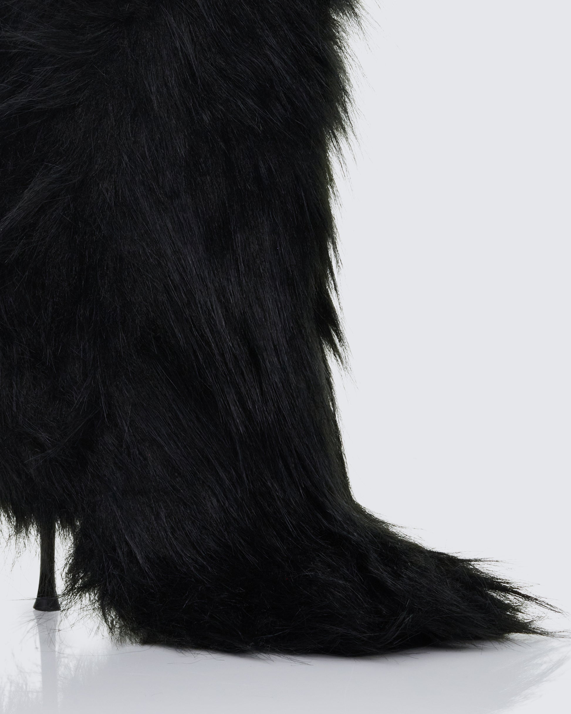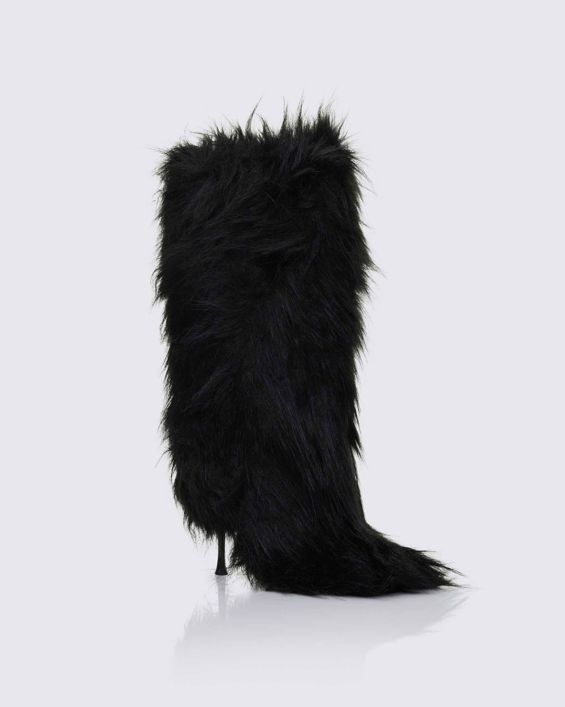 Go big or go home 🙌 Finished with black faux fur layered over a slim stiletto, these boots aren’t here to accessorize… they’re here to dominate 🖤