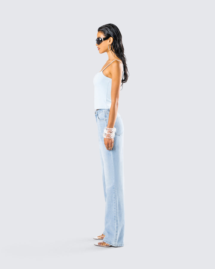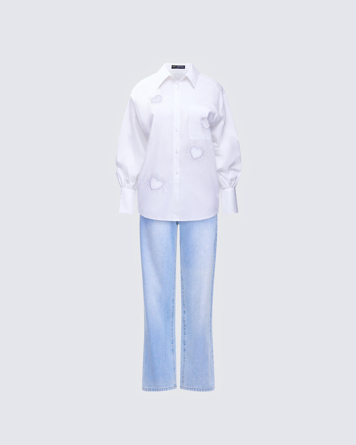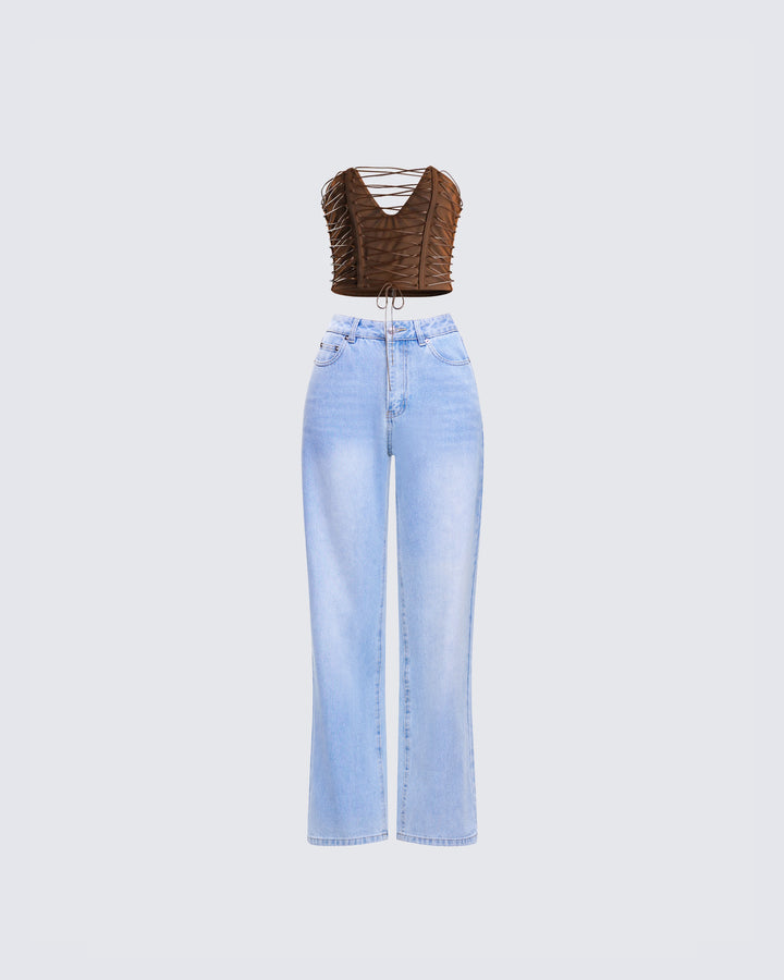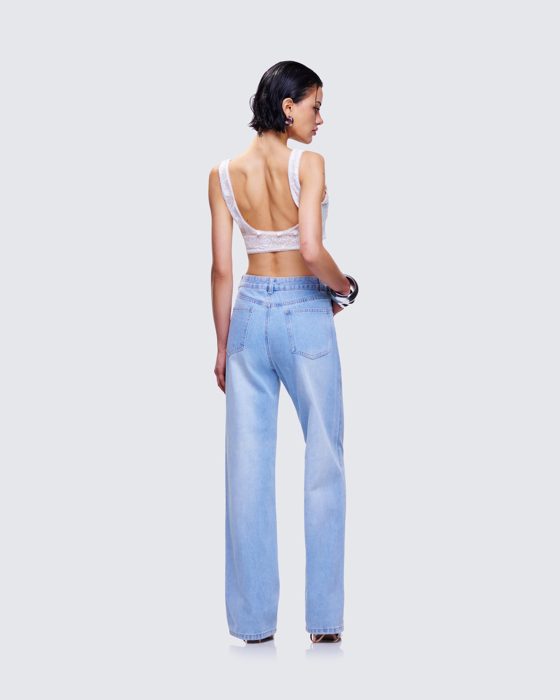 Off-duty, but only if you mean off-limits π€ pairing an embroidered lace bra top with straight-leg jeans, this two-piece set is easygoing, but never boring π€