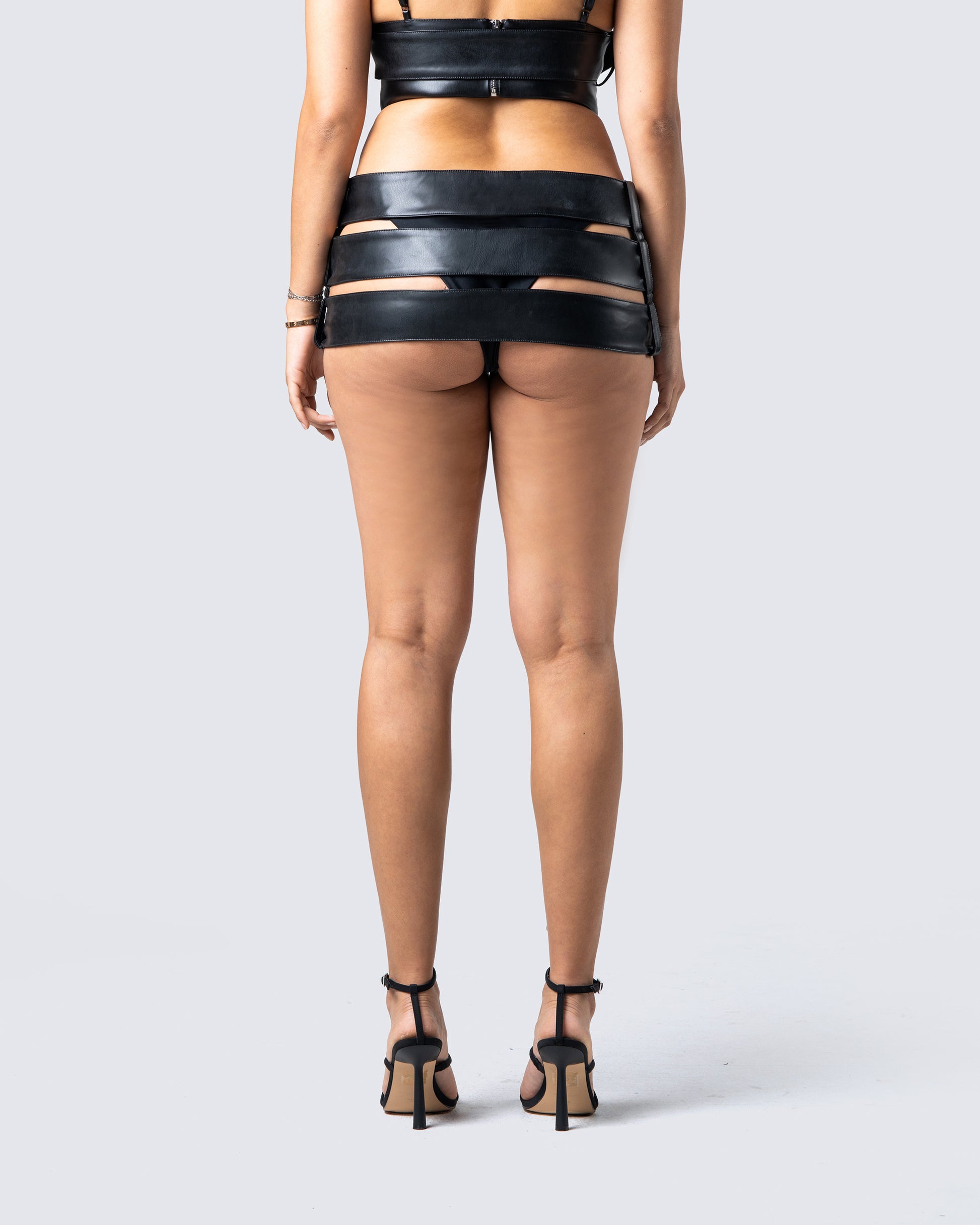 The perfect black vegan leather skirt for all our risk-taking baddies š¤ Designed with 3 rows of belts for a unique style that will bring out an intimidating fierceness in you that you'veĀ never seen beforeĀ šĀ