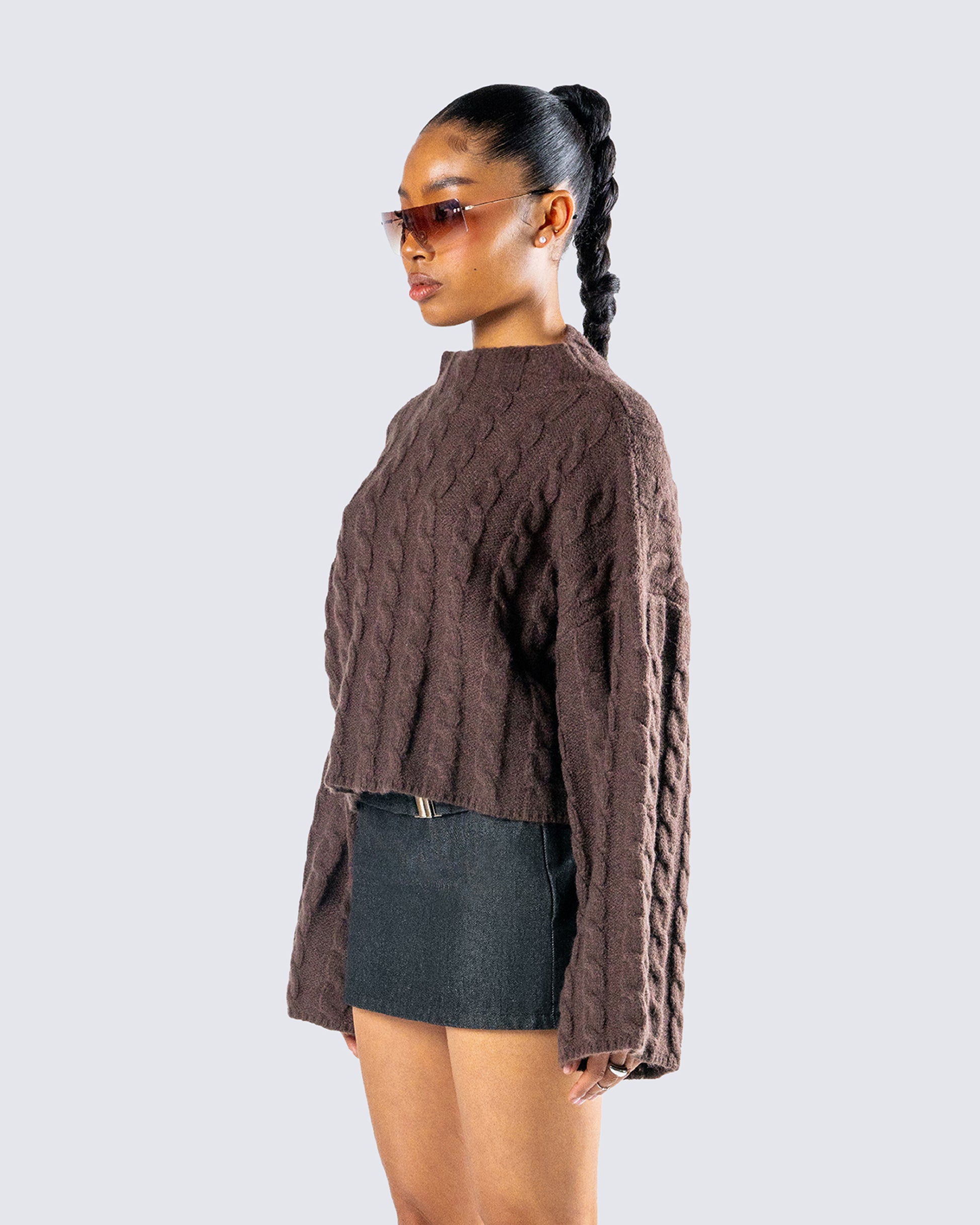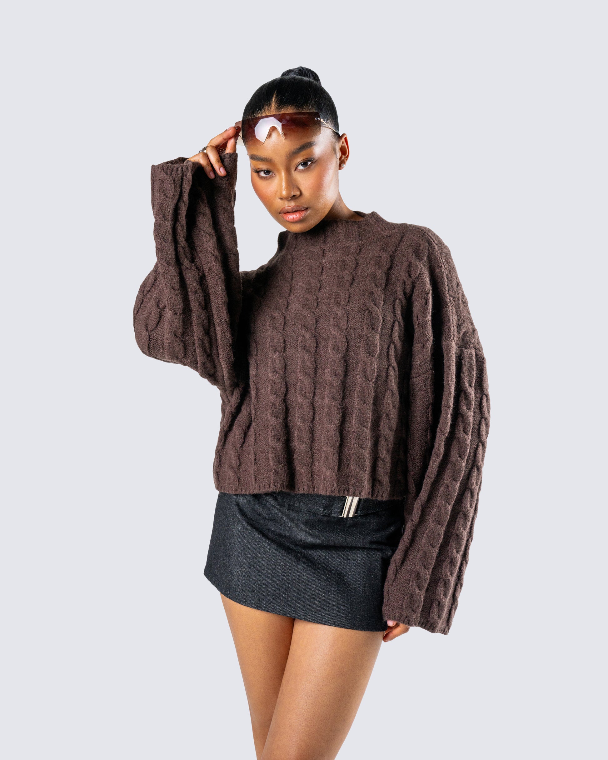 Bigger is always better π€ This brown chunky knit sweater, made complete with a cowl neck and long sleeves is taking sweater weather to a whole new level π