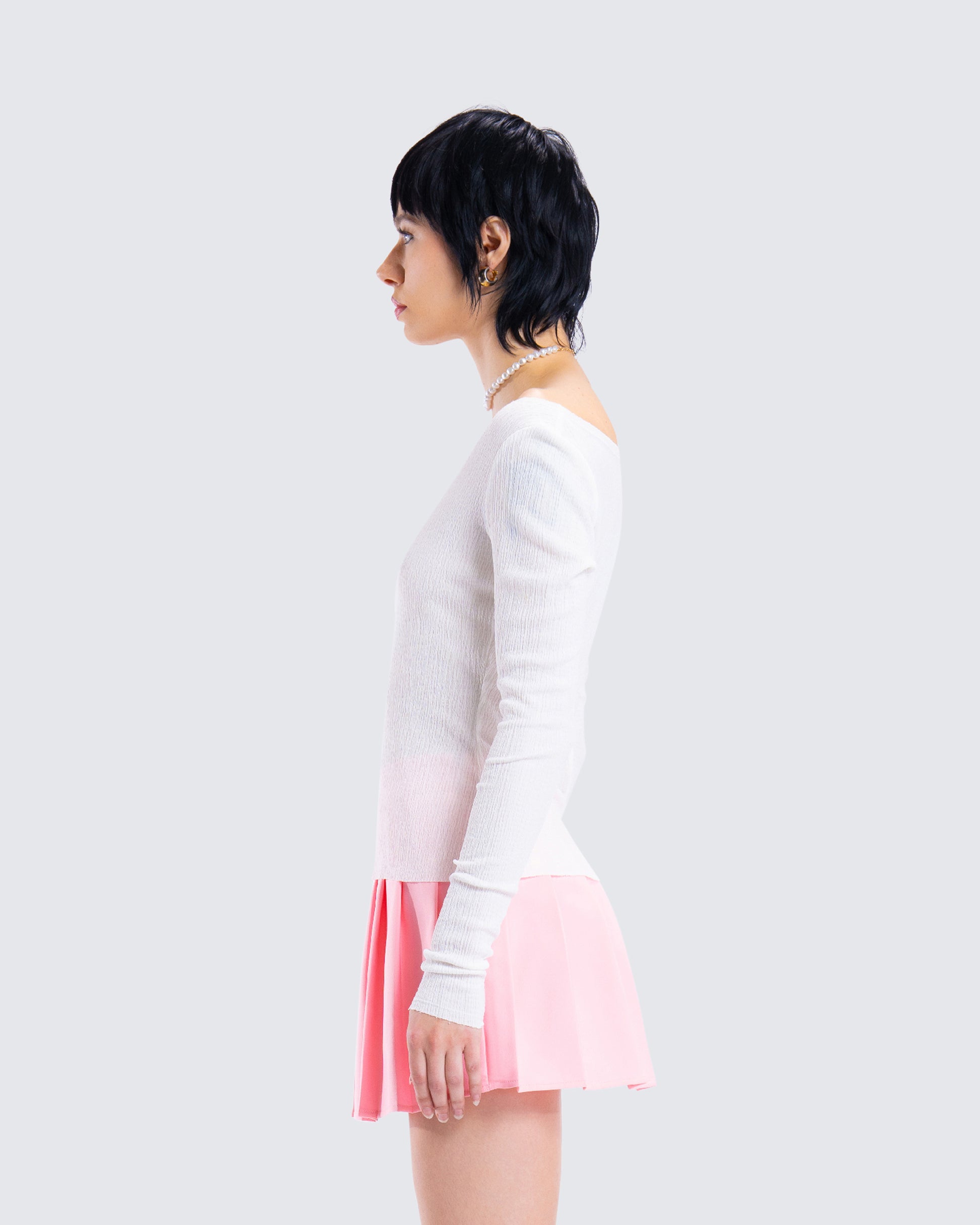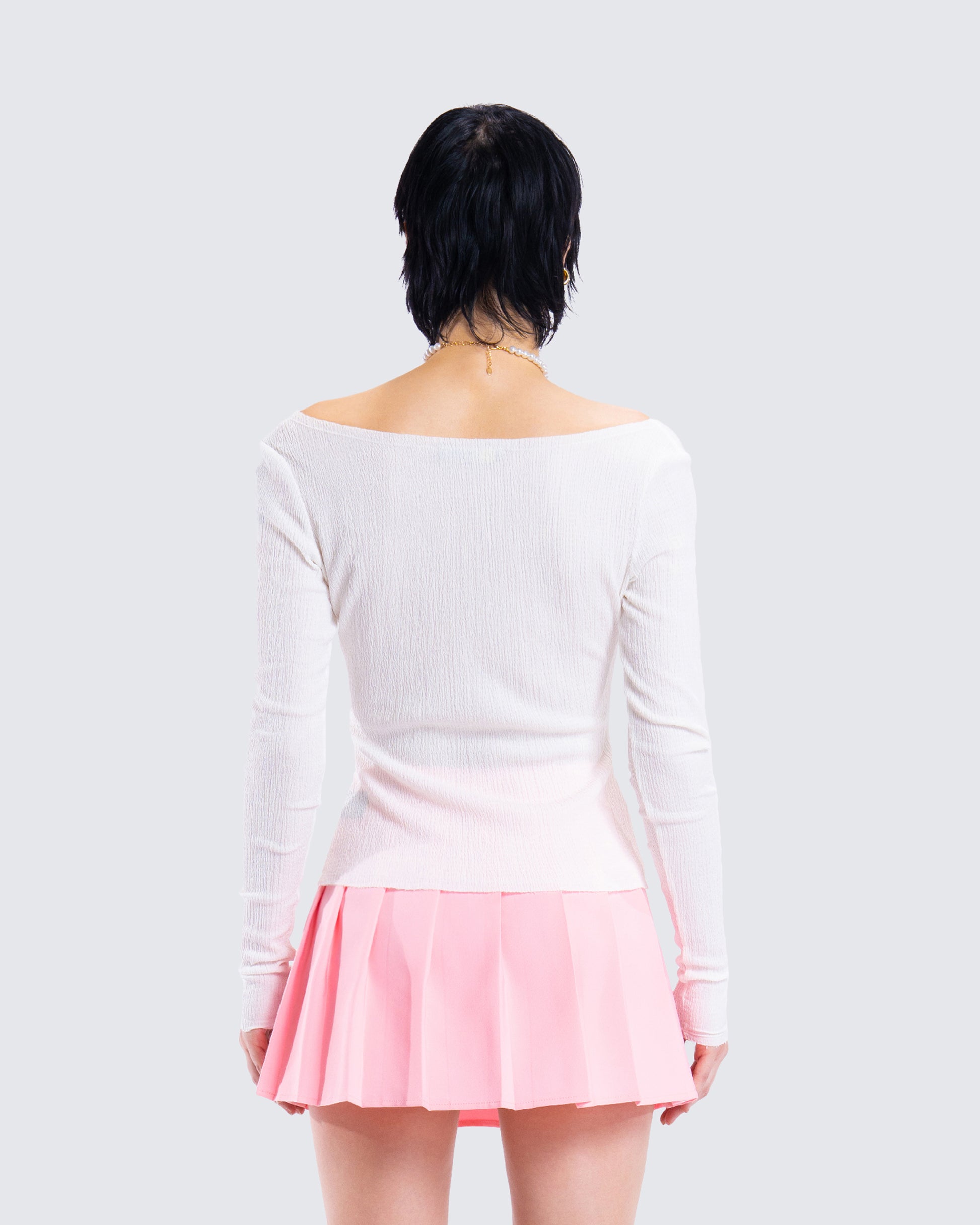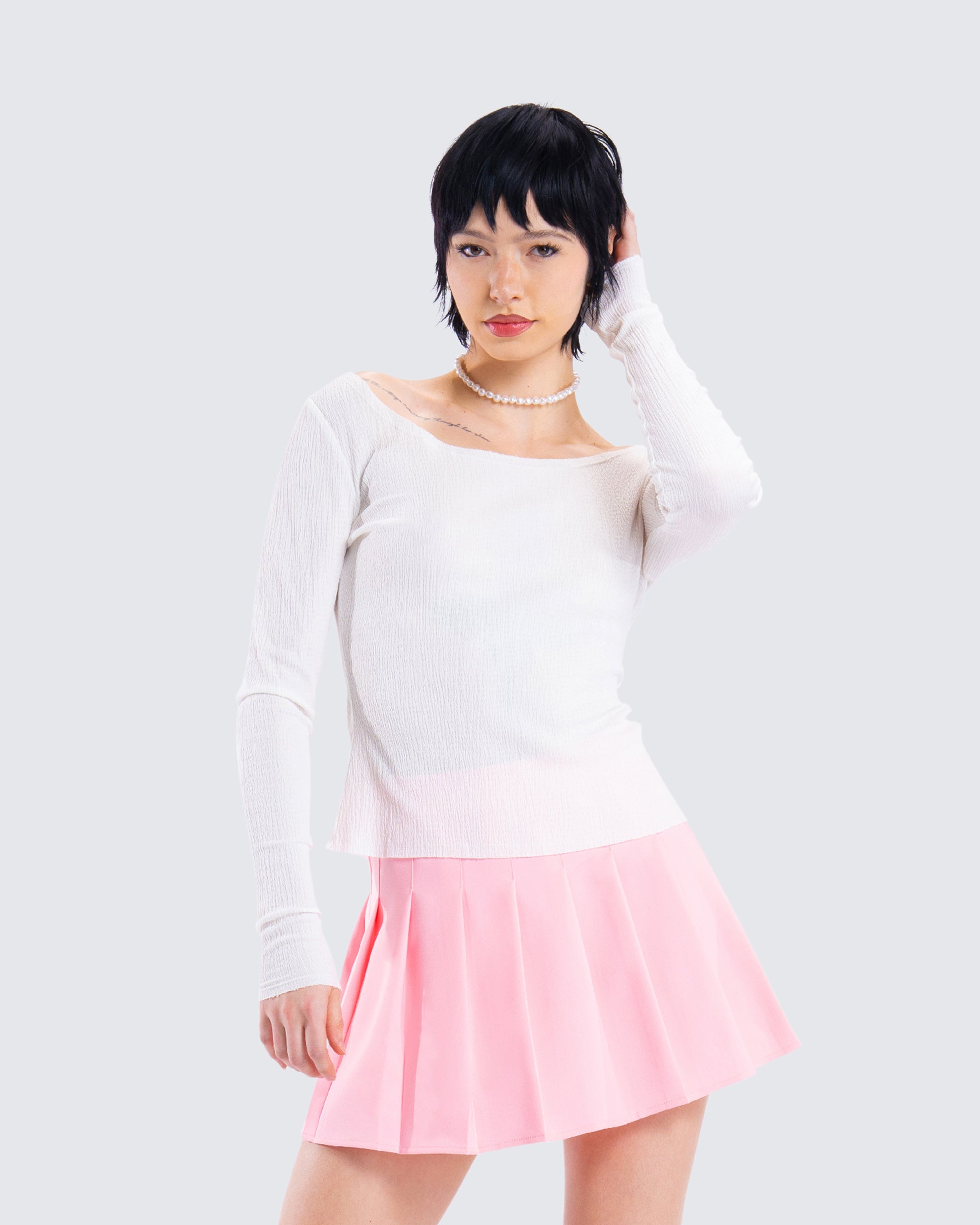 Sleek, chic, and effortless - this top is the perfect closet essential ✨ Constructed from soft stretch textured jersey, and complete with extra long sleeves and a raw edge for a sleek and subtle staple piece that's perfect for all occasions 🤍