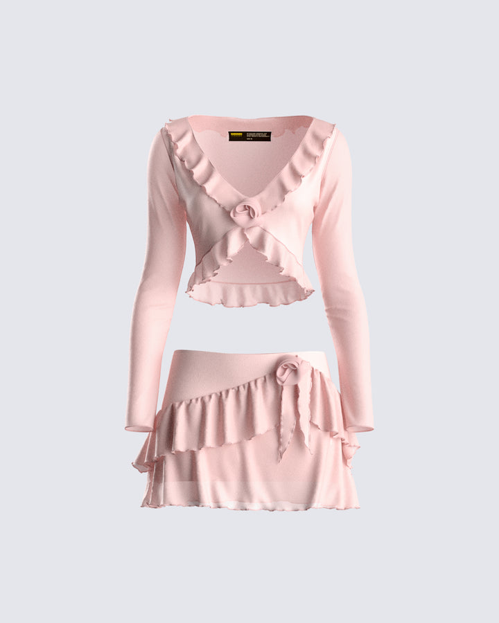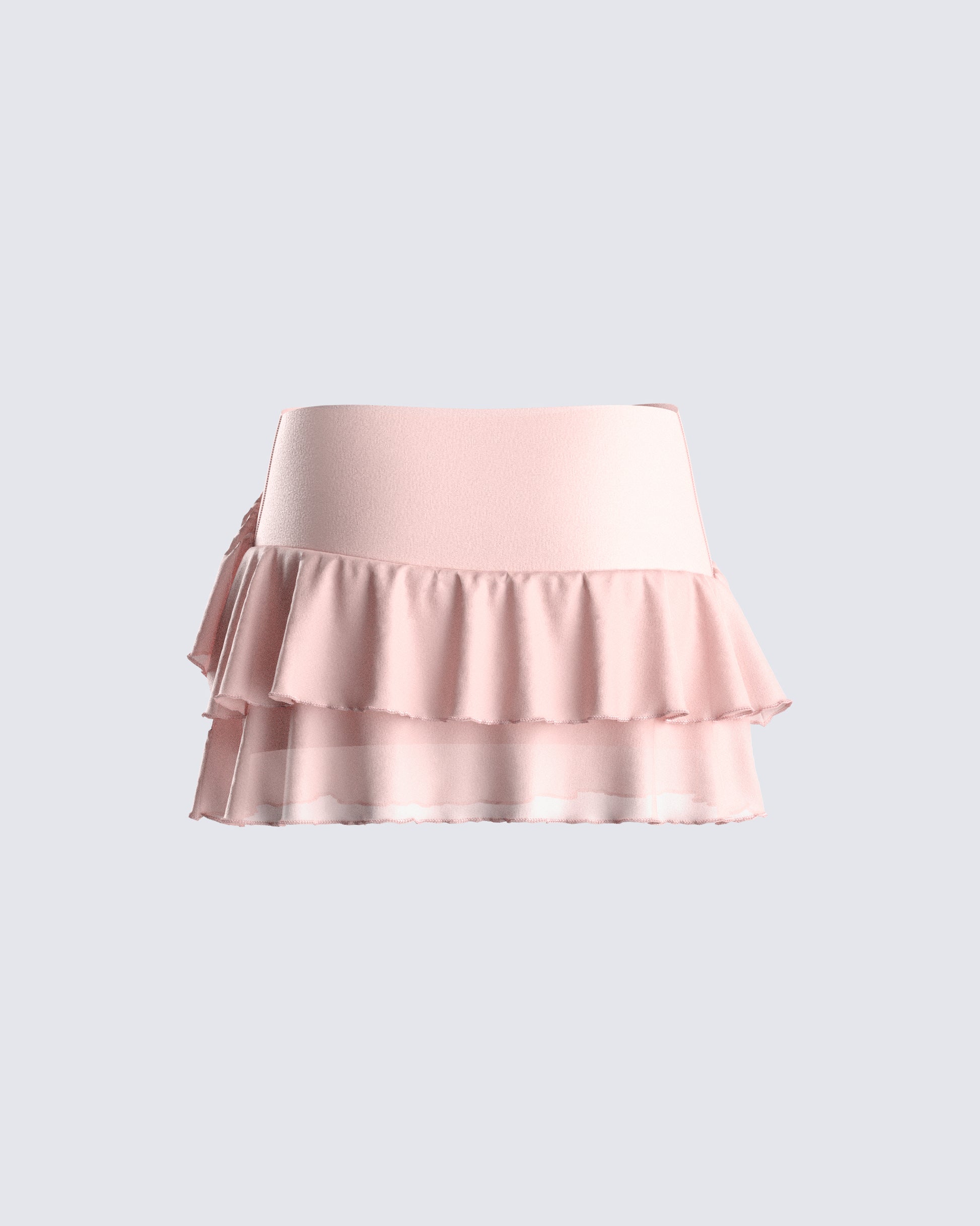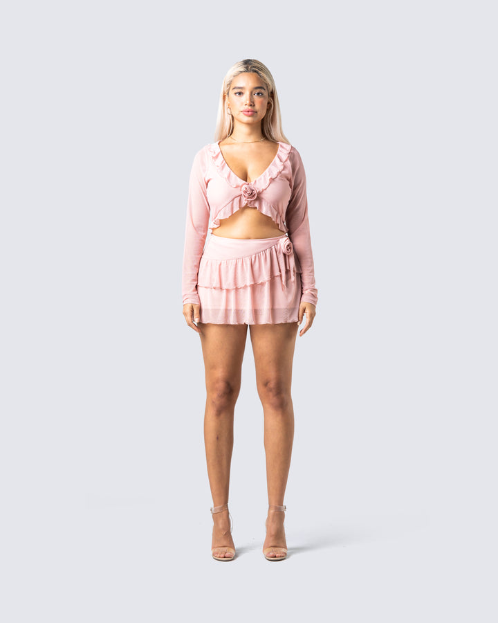 Pink, ruffled, and flirty - this mesh mini skirt will have you feeling like the pretty bad b*tch you are 💋 This tiered ruffle look complete with a floral applique screams, "I'm the hottest one here" 😜