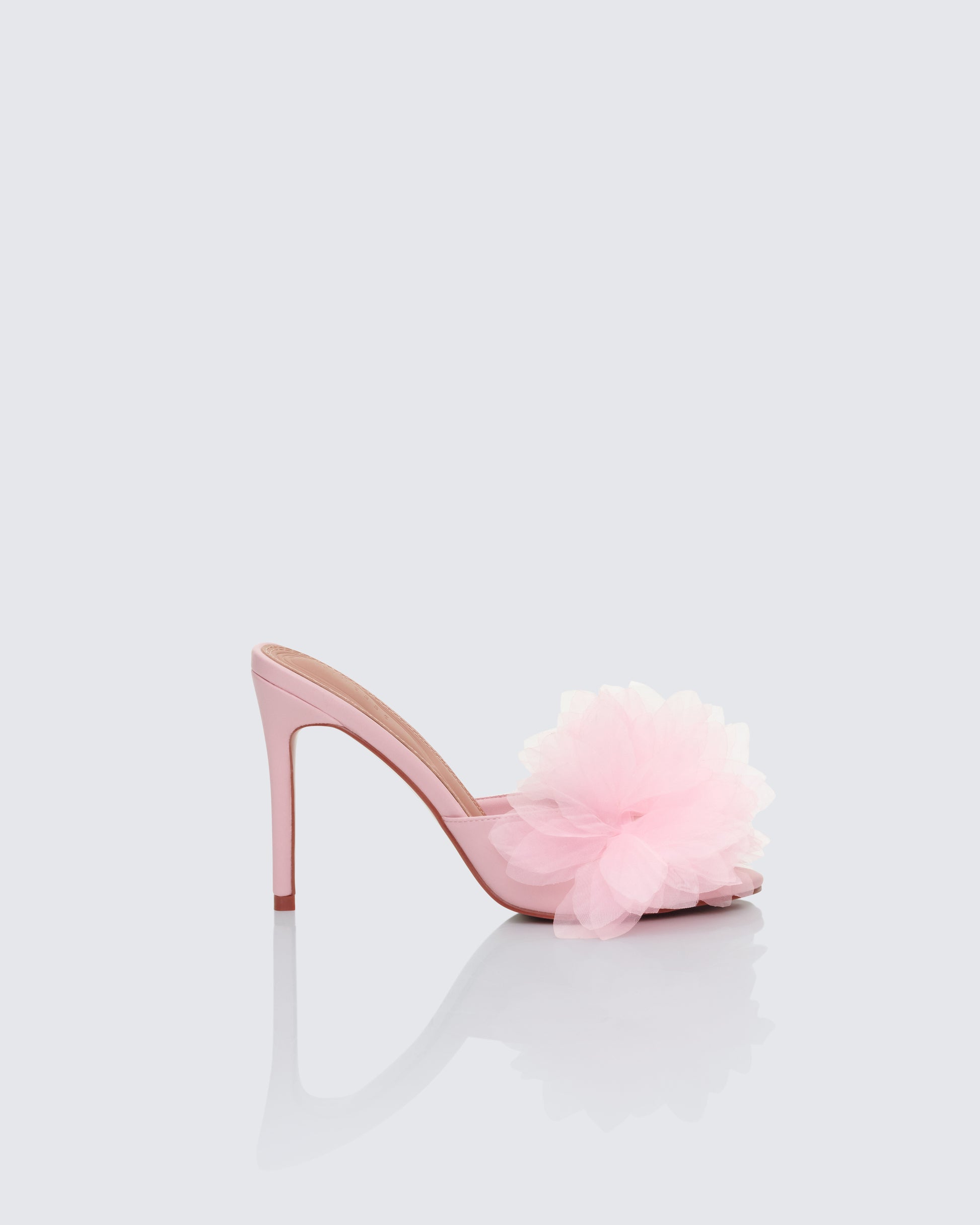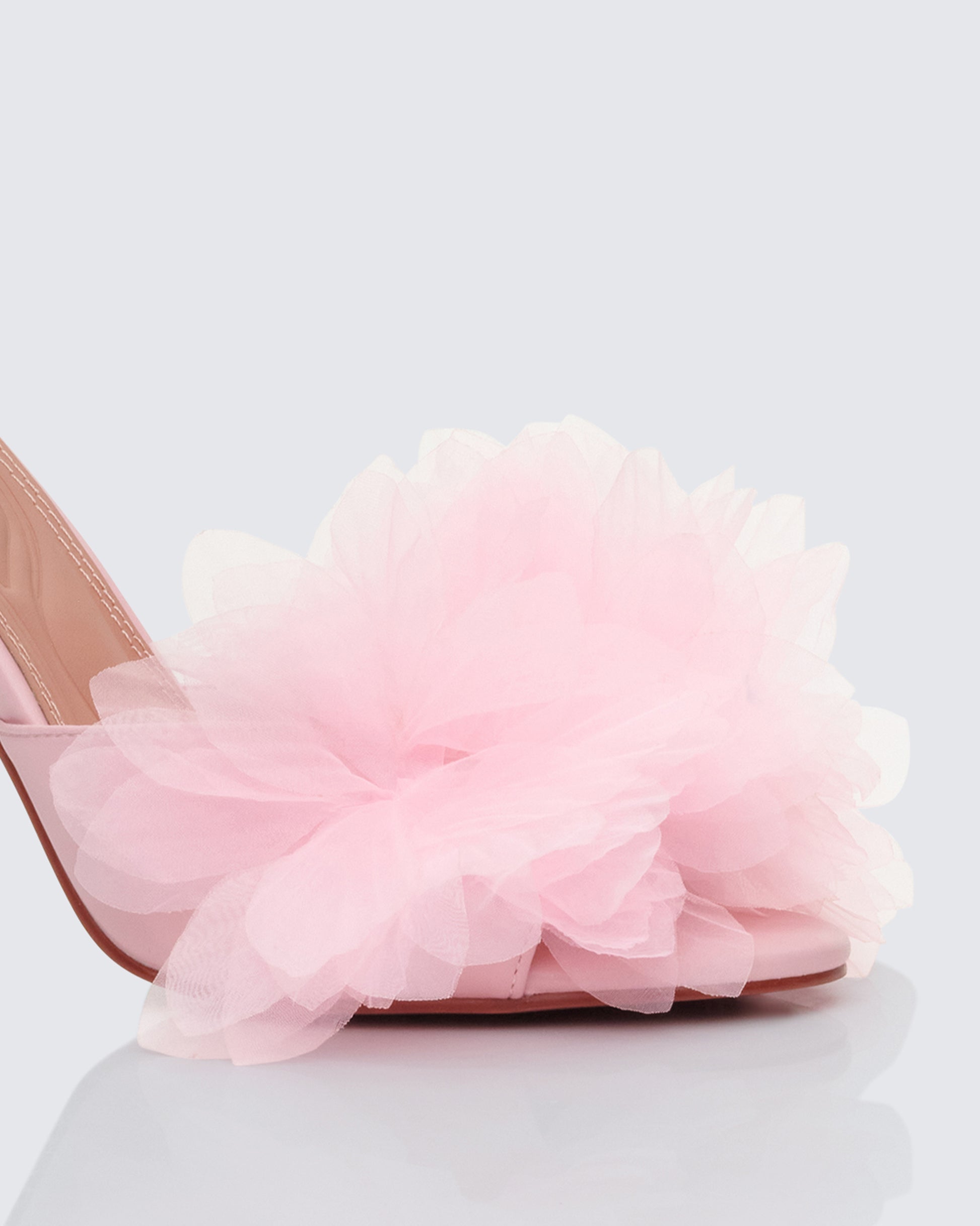 Step into pure doll energy with these baby pink slipper sandals πŸ’• with oversized petal mesh florals, giving you that dreamy vibe - this is your go-to heel when you want to look sweet but still turn heads 😚