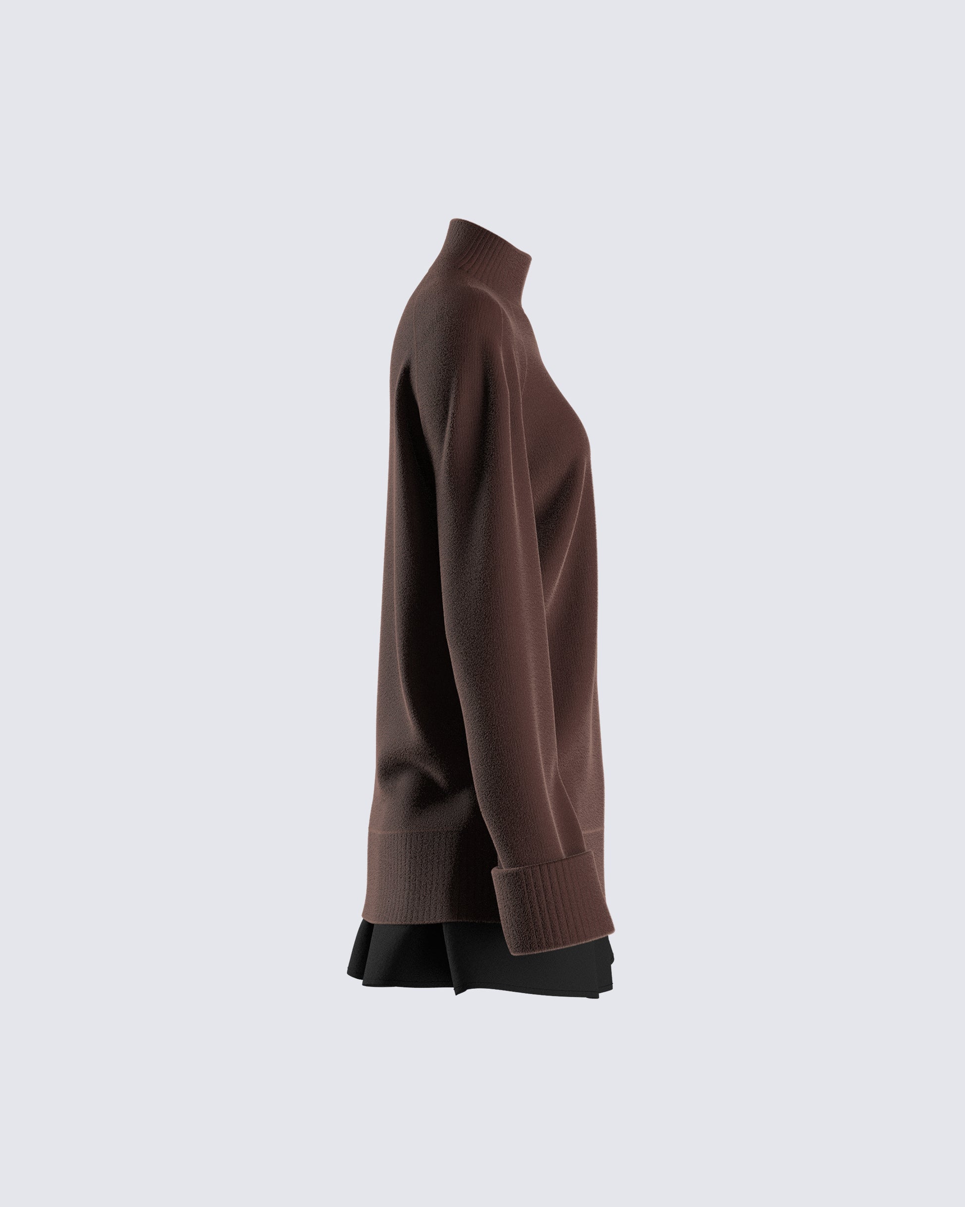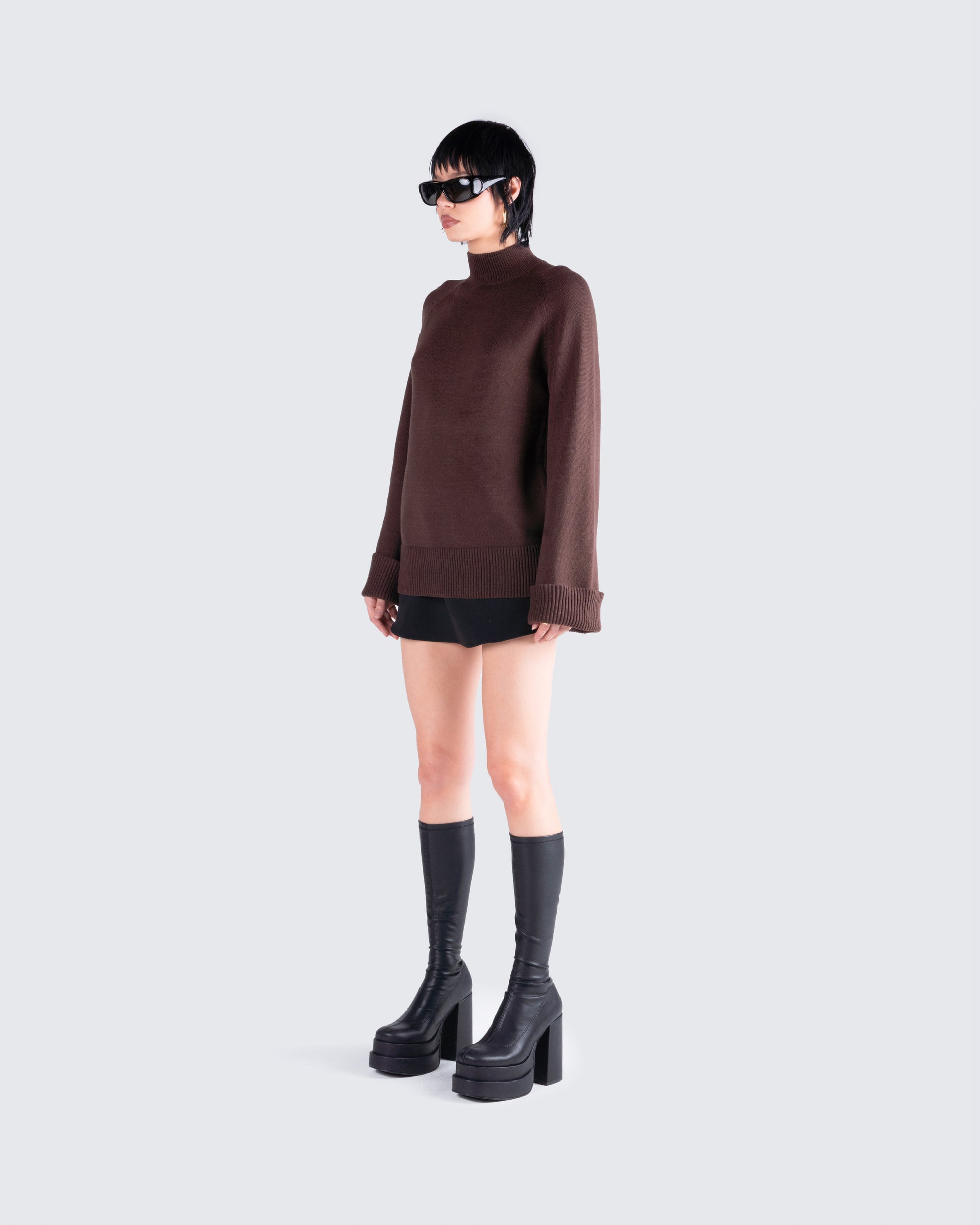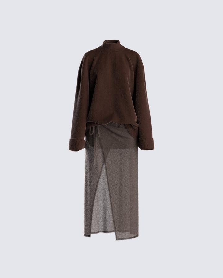 She cozy, or whateva π Bundle up in the chicest way possible with this two-piece set featuring a brown sweater knit top, and a black high waisted mini skirt π€