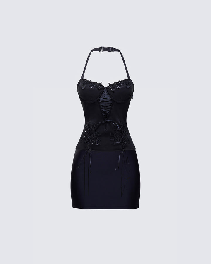 Yelina Black Halter Lace Up Top