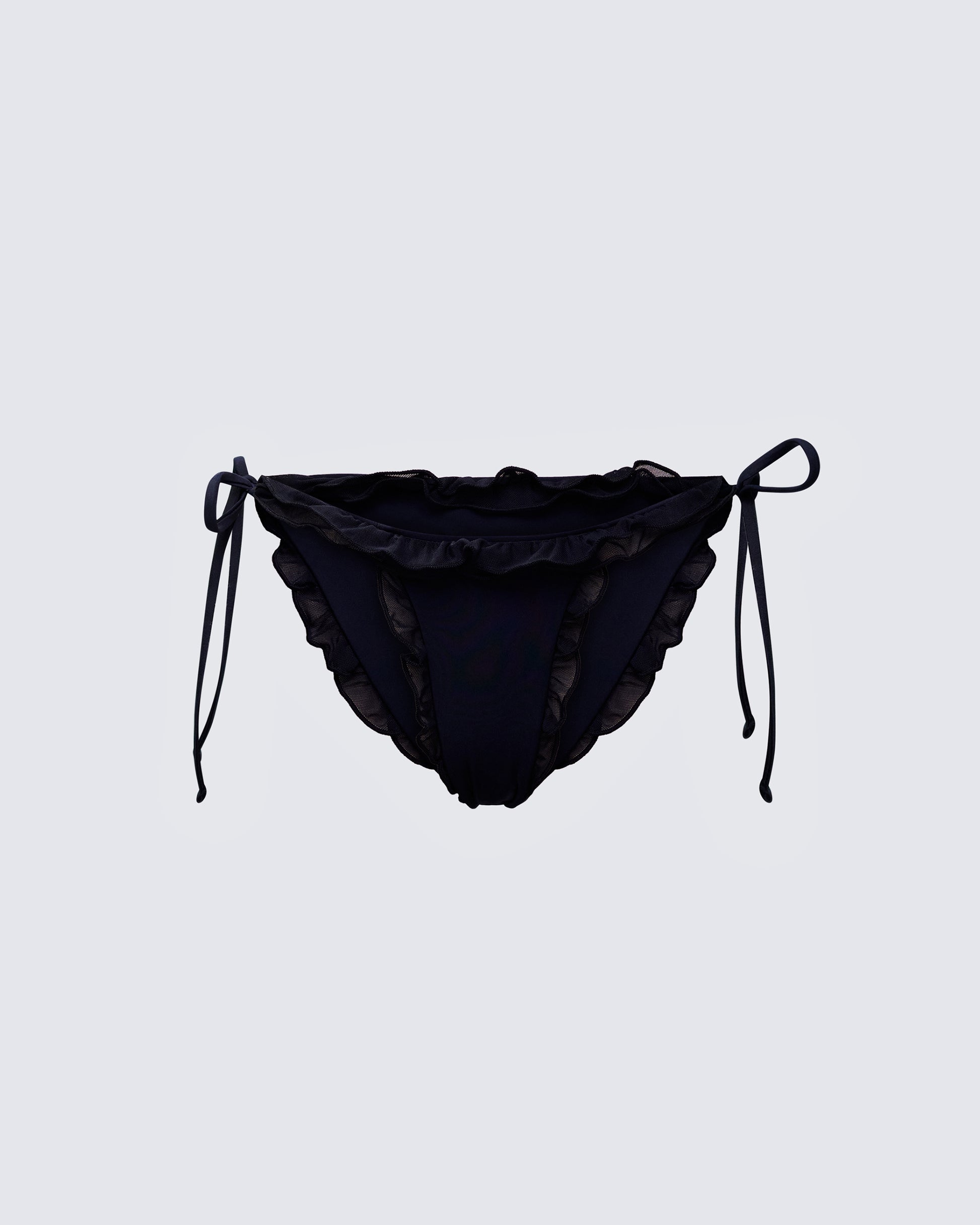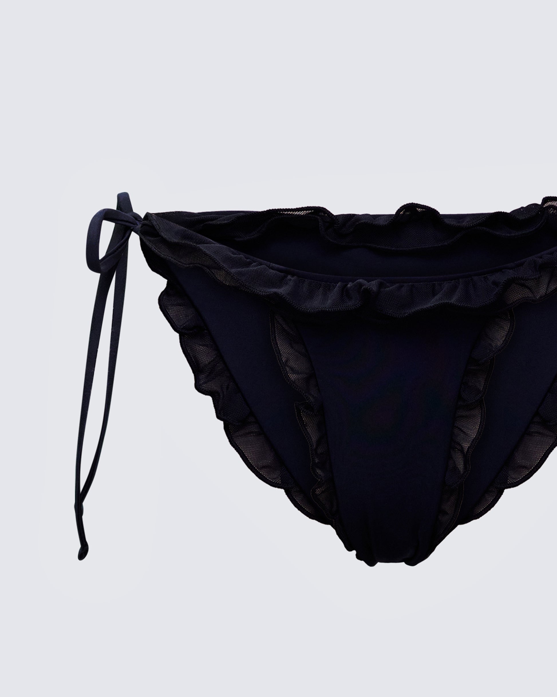 Your new swim essential 🖤 Tiny, tied, and trimmed with ruffles - these bikini bottoms keep it minimal while delivering maximum impact 👏