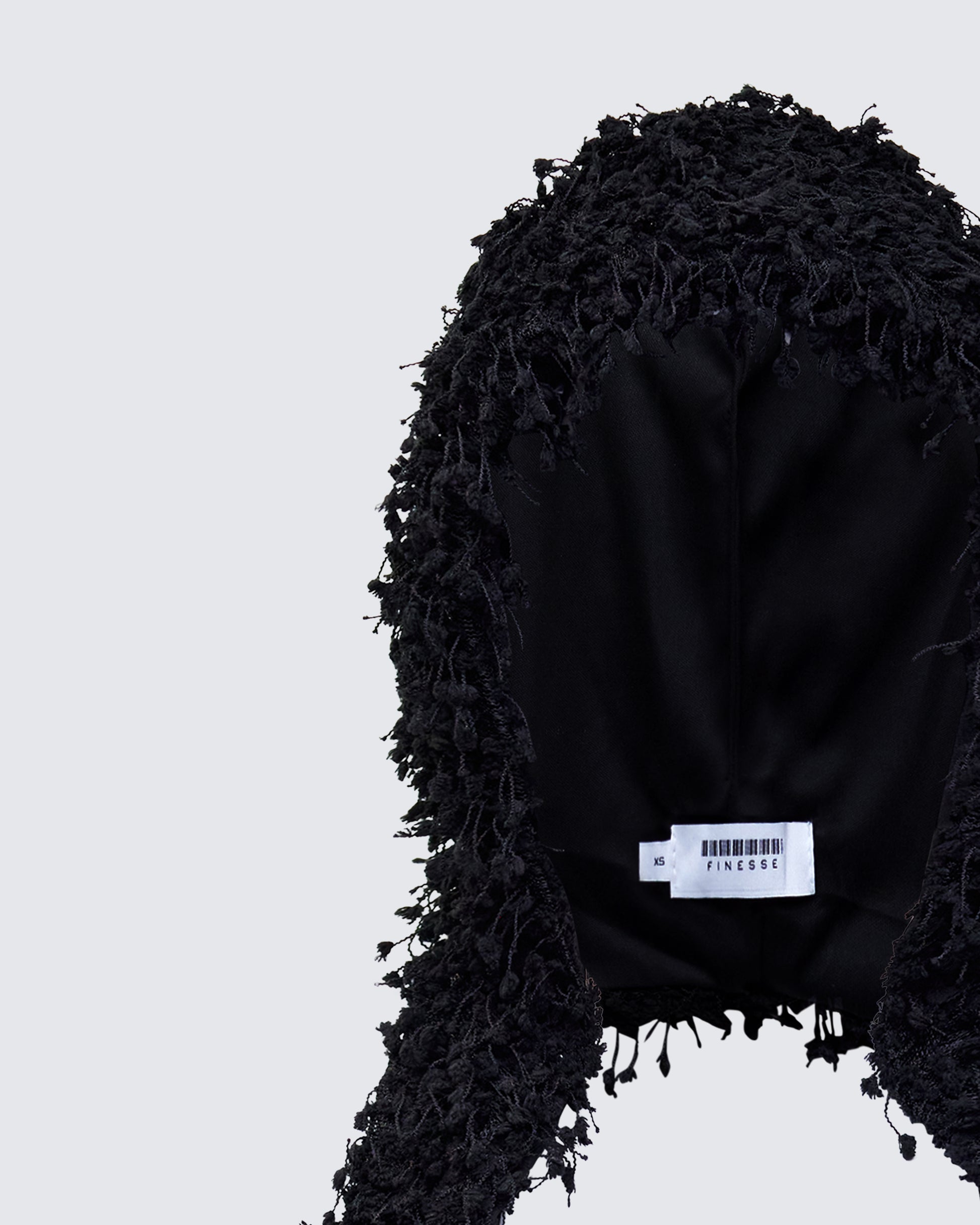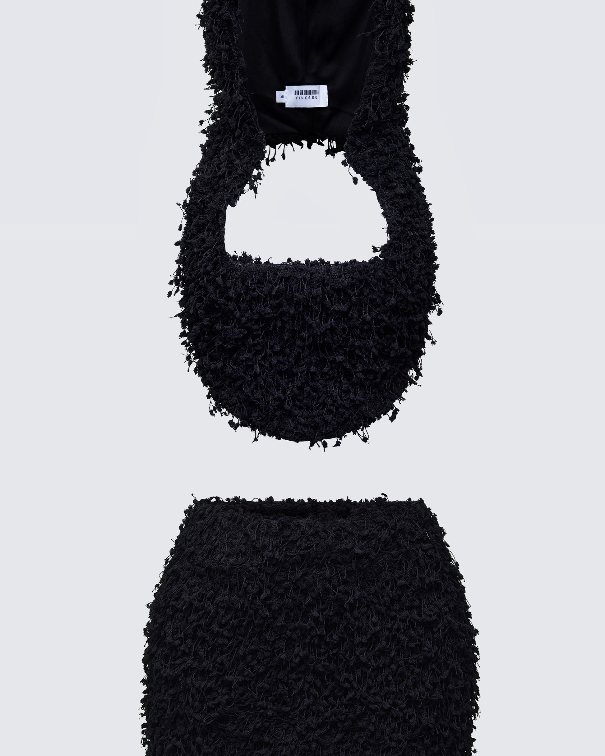 <p>Morgan Black Knit Hooded Halter Top: 100% Polyester</p><p>Morgan Black Knit Mini Skirt: 100% Polyester</p><p>Ramona Black Piercing Detail Sandal: 100% Polyurethane</p>