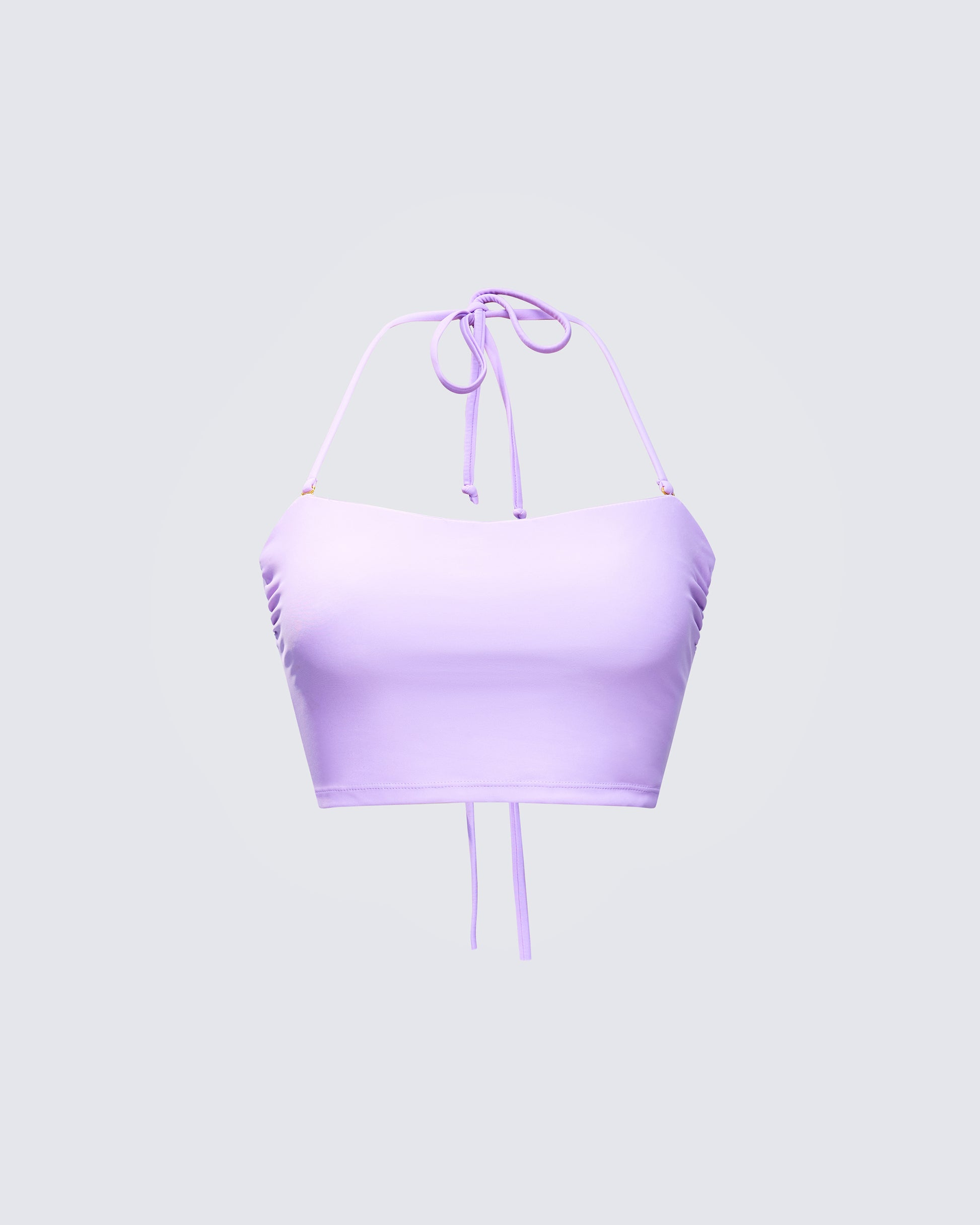 Tankini, but make it hot 💅 This lilac top comes with detachable straps so you can go bandeau, halter, or strap-free depending on the vibe. Fully lined and ready for dips, tanning, or just looking good on land 😌
