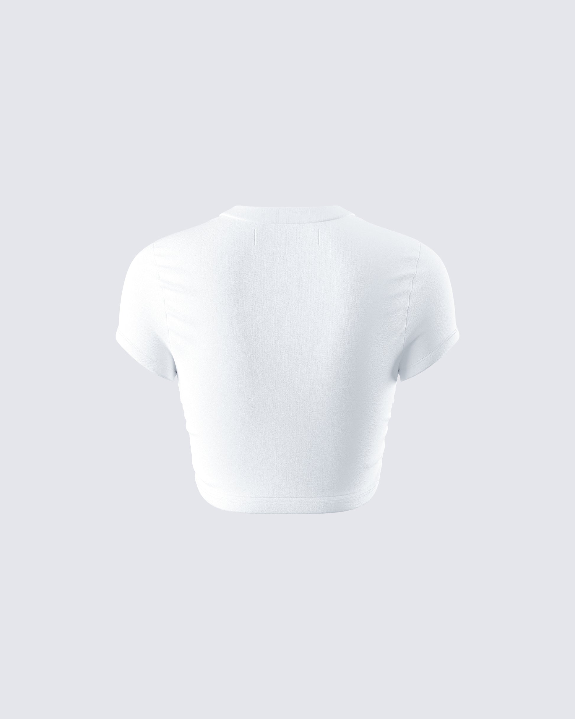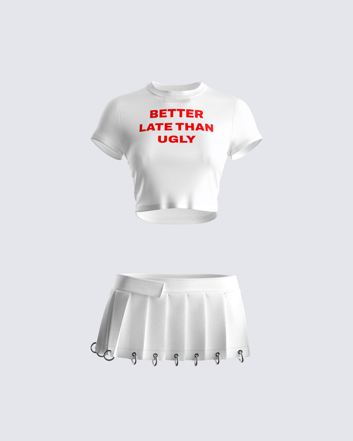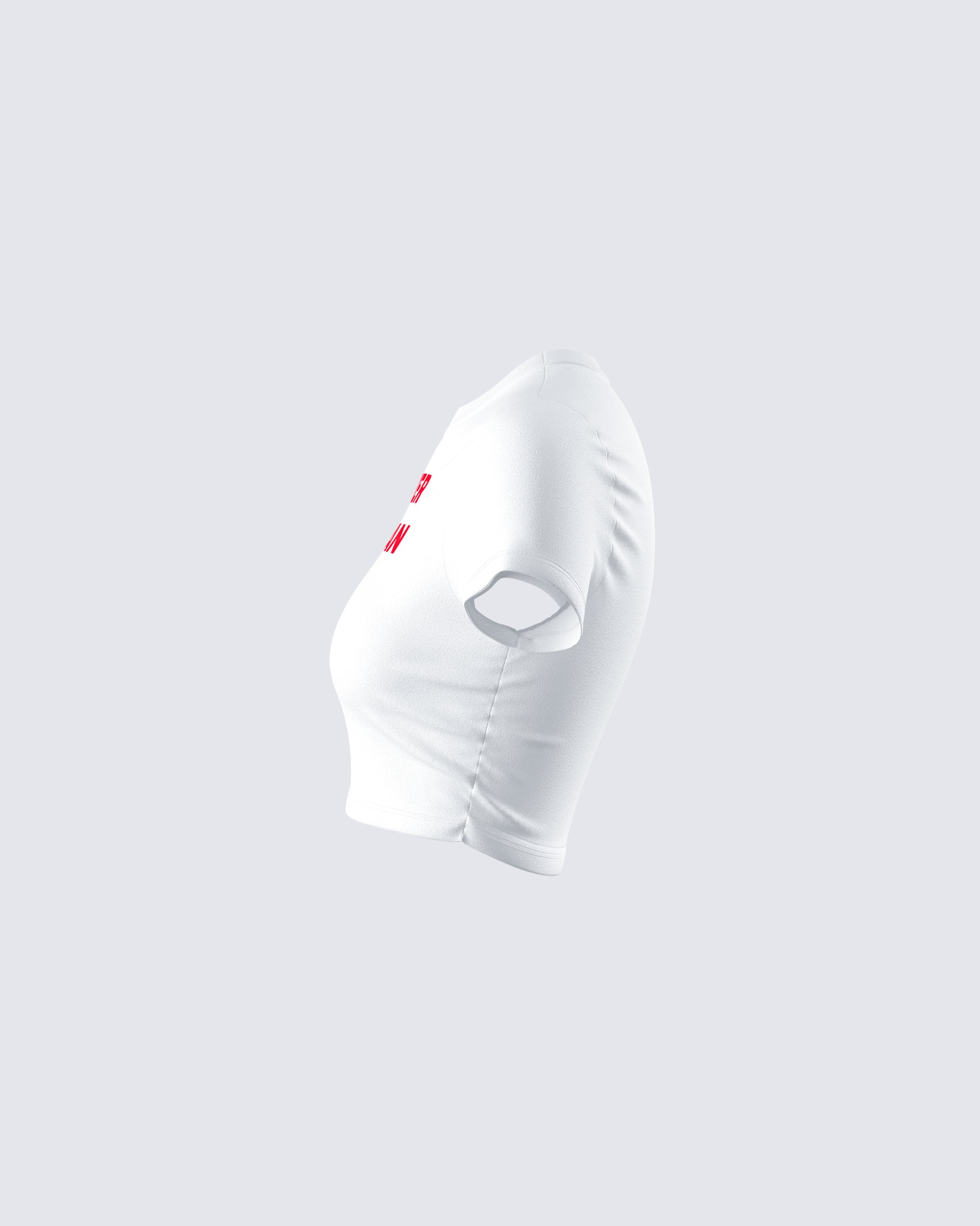 Good things take time... that's why the bad b*tches are always late 💅🏼 Share a little PSA with them all while wearing this sassy, white jersey graphic crop top ❤️