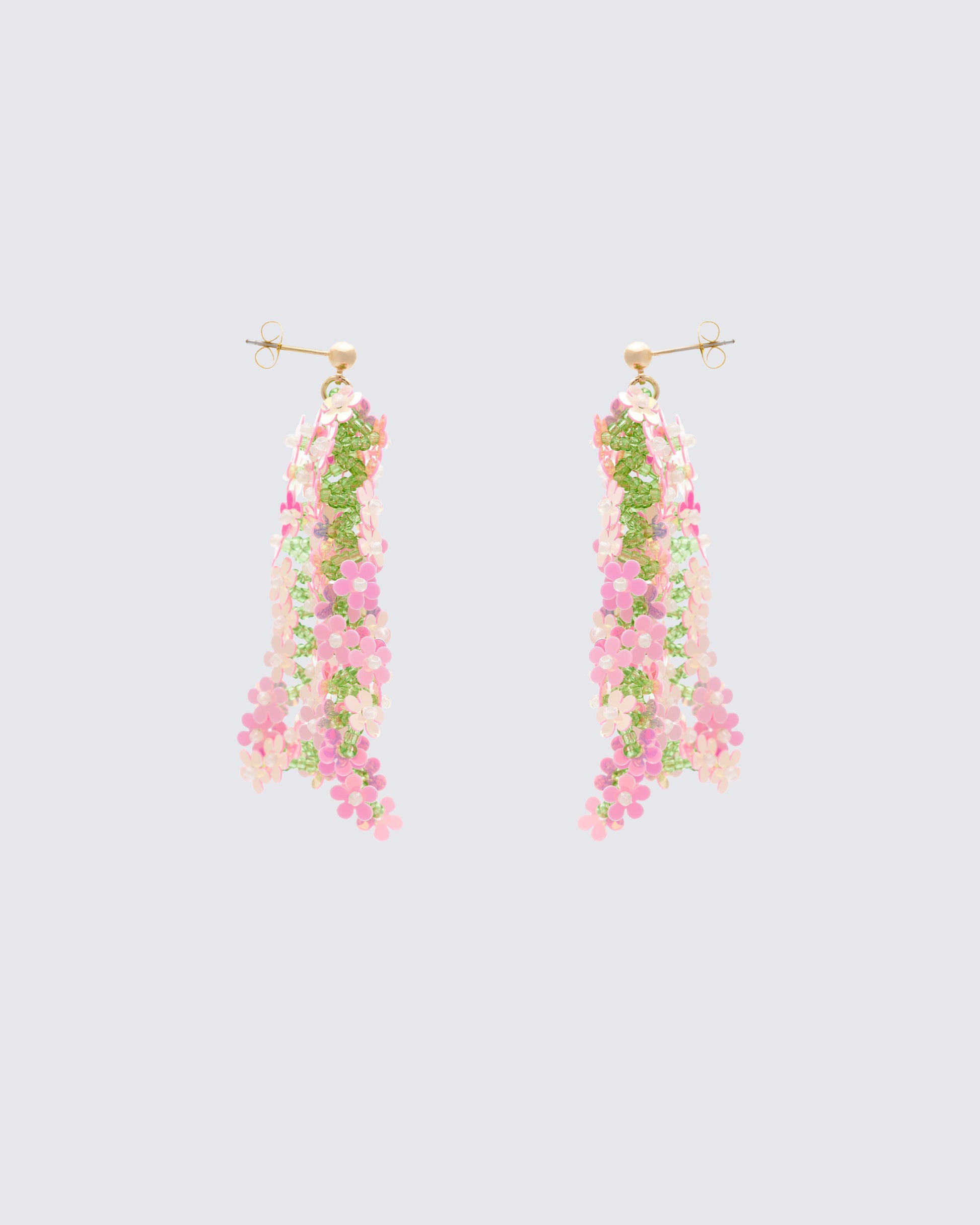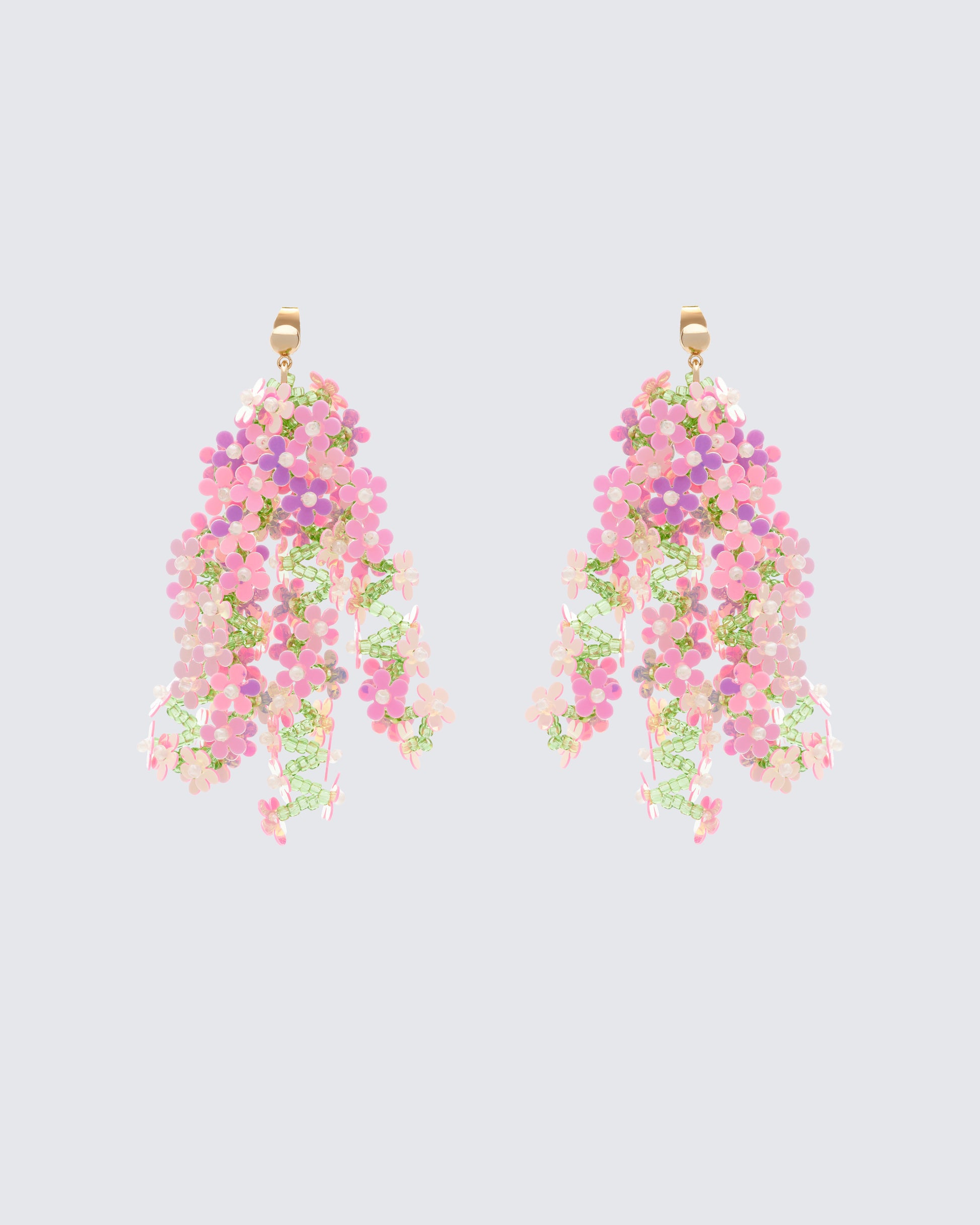 Go big or go home ๐Ÿ’ž These pink chandelier earrings are here to serve oversized sparkle and floral romance, made for the nights when subtle just wonโ€™t cut it ๐Ÿ˜