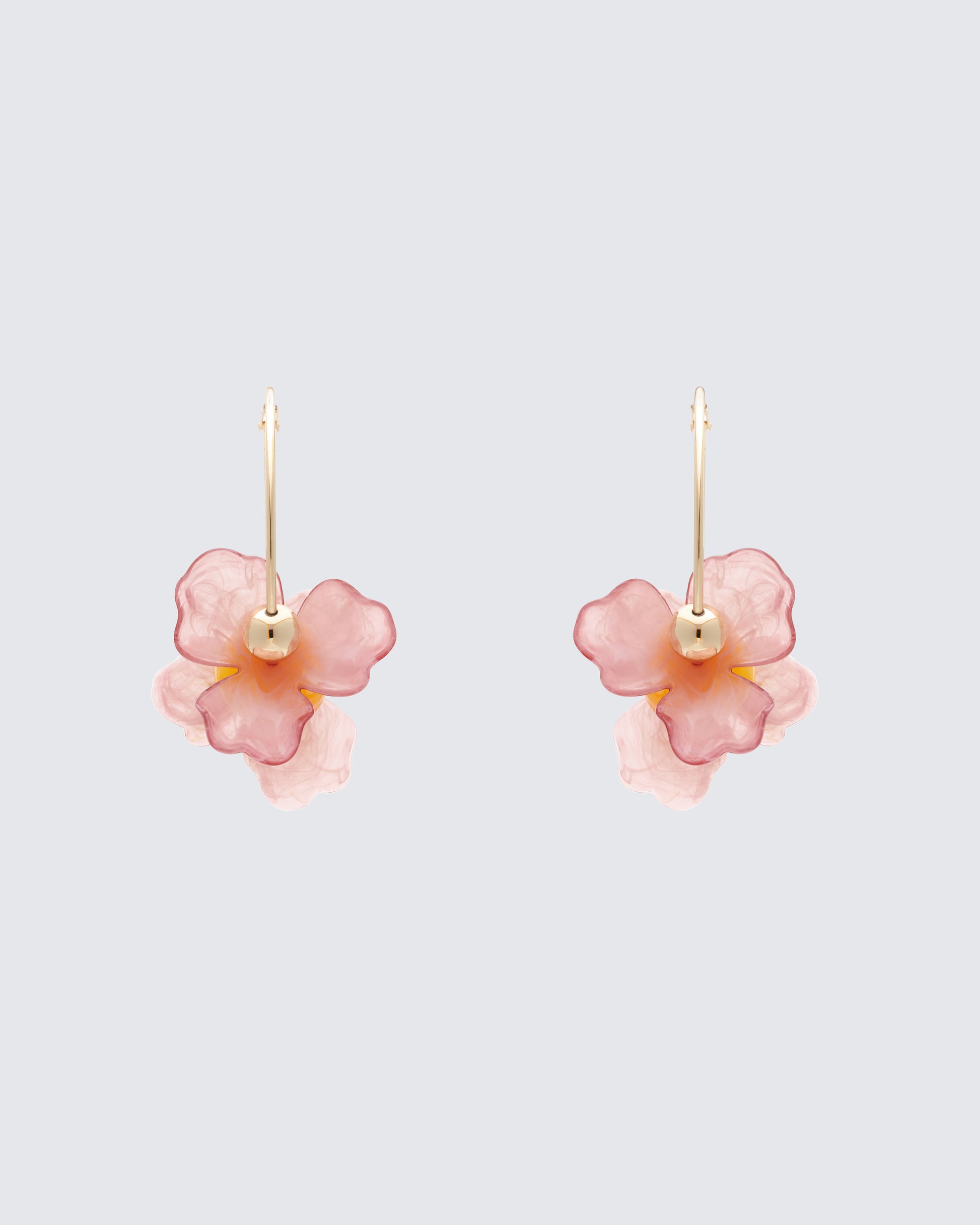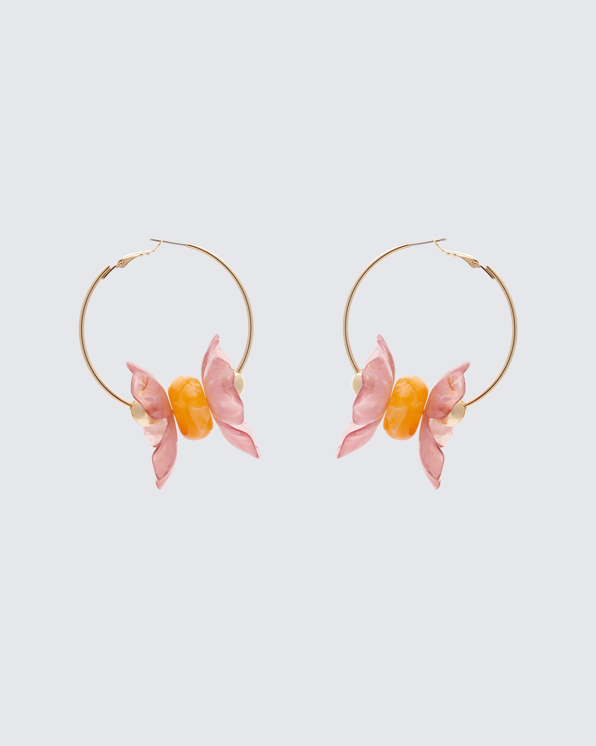 Hoops gone floral πŸ’• Adorned with sculpted pink flowers, these gold hoops bring playful charm and statement shine, the perfect pop of color for any look 🌺