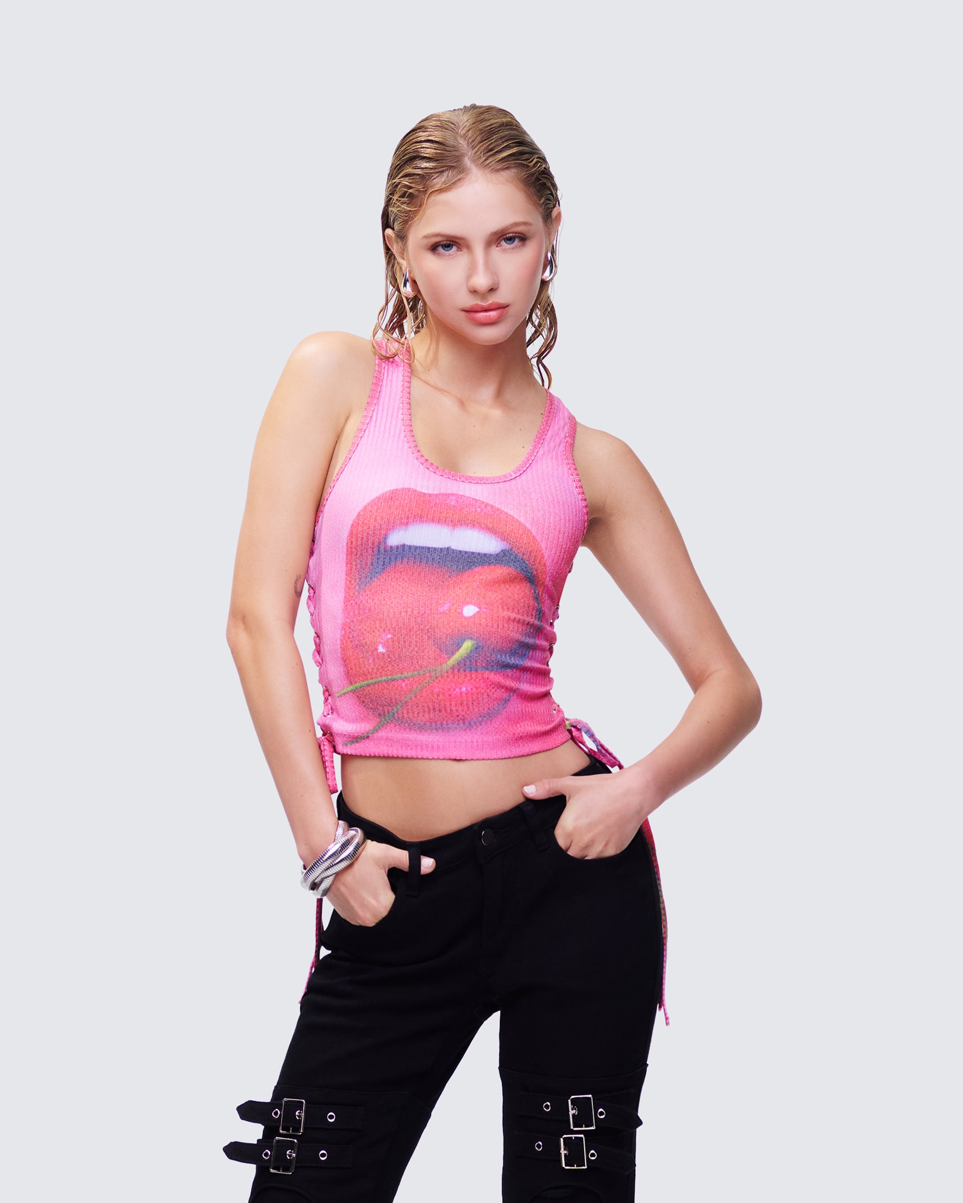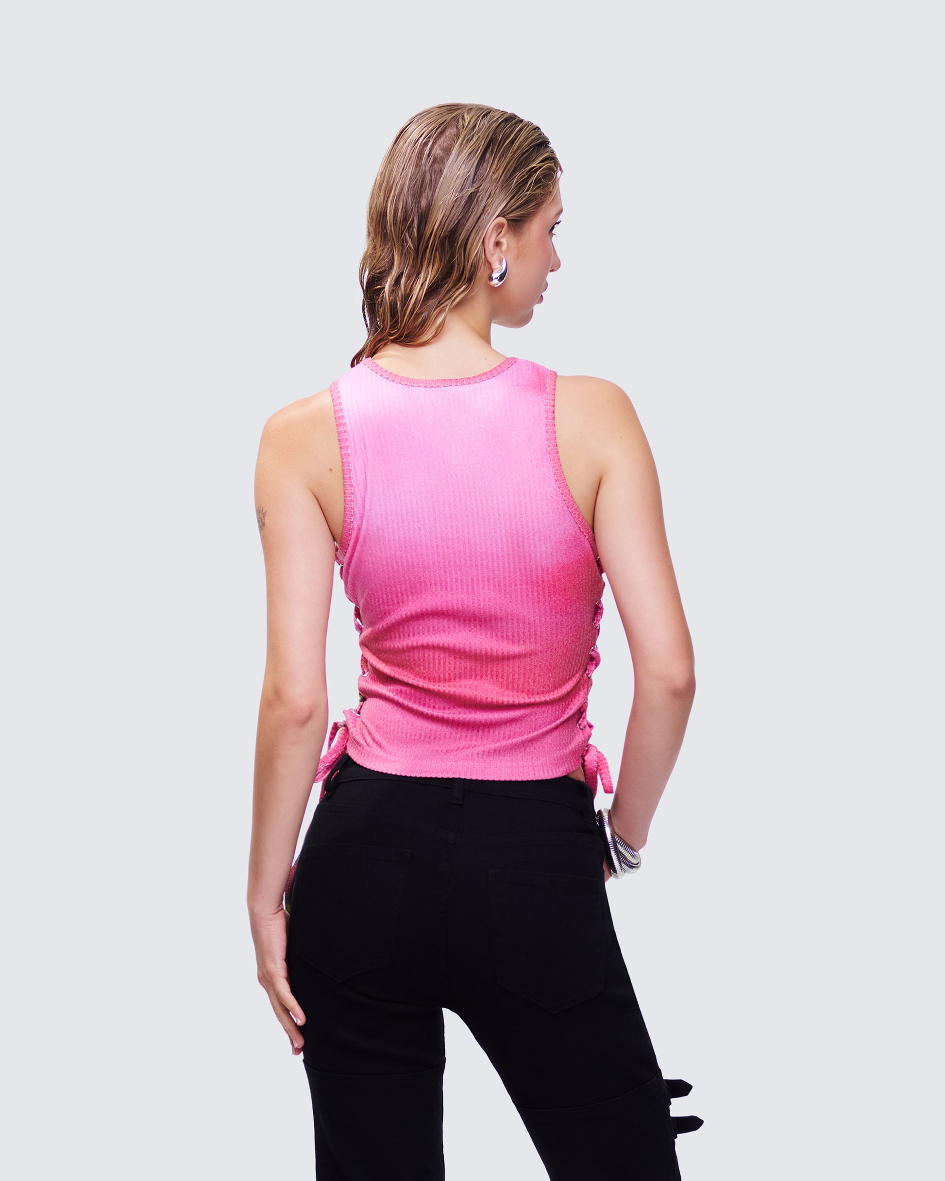 The type of tank that doesnโt whisper, it talks back ๐ Made for the girls who speak in statements โ this pink top is complete with lace-up sides and a whole lotta attitude ๐