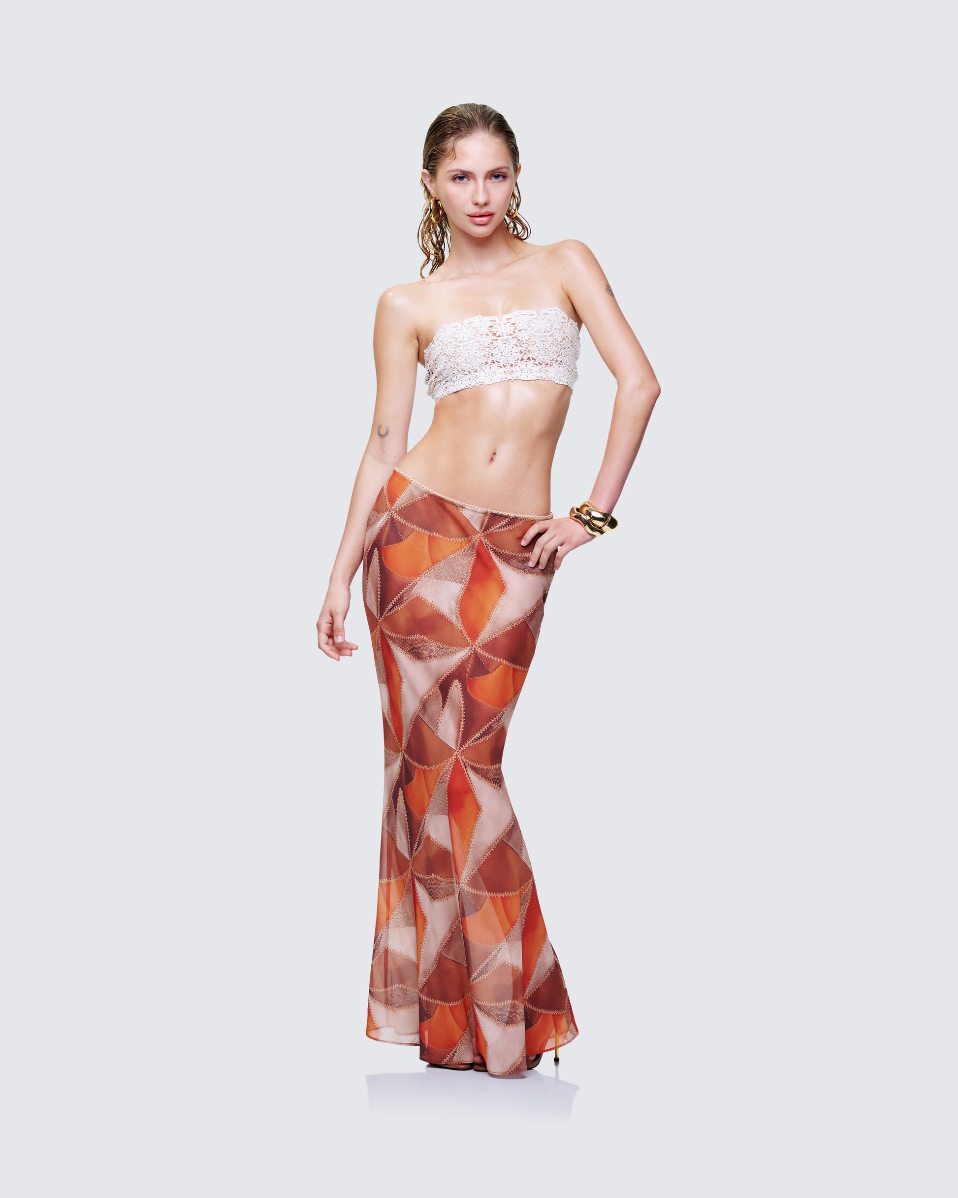 Warning: this set is not for background characters 🤎 Pairing a cheeky bandeau with scalloped trim and a low-rise sheer maxi that swishes with every step - this is the kind of look that will get remembered long after you’ve left 👏