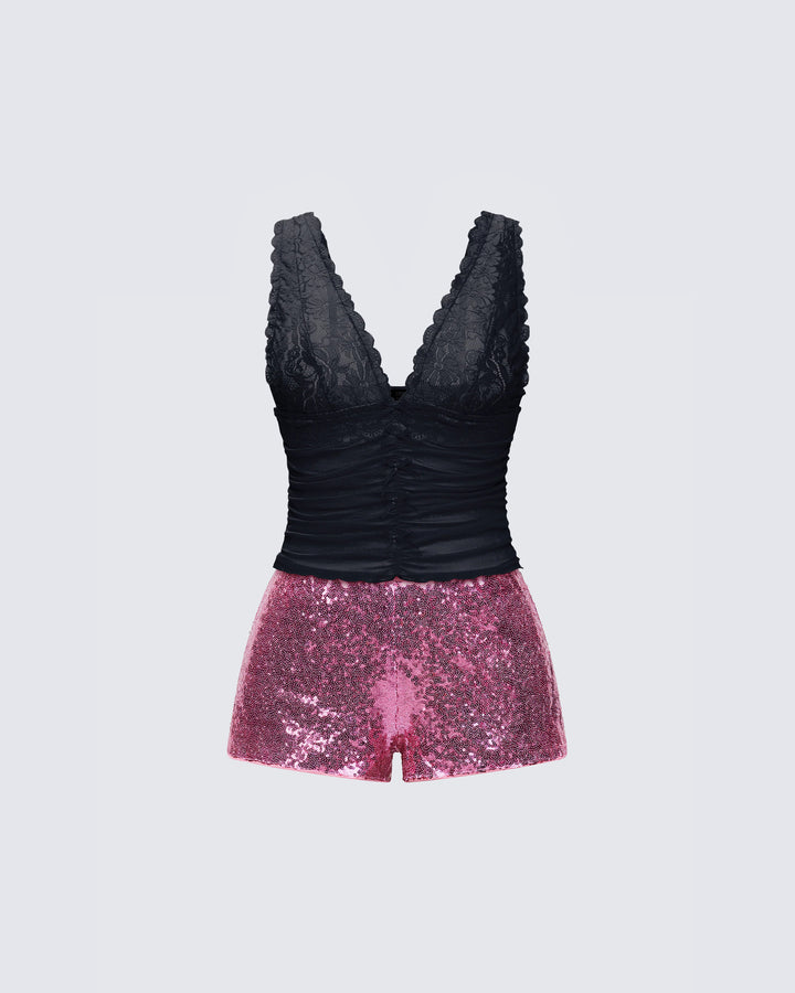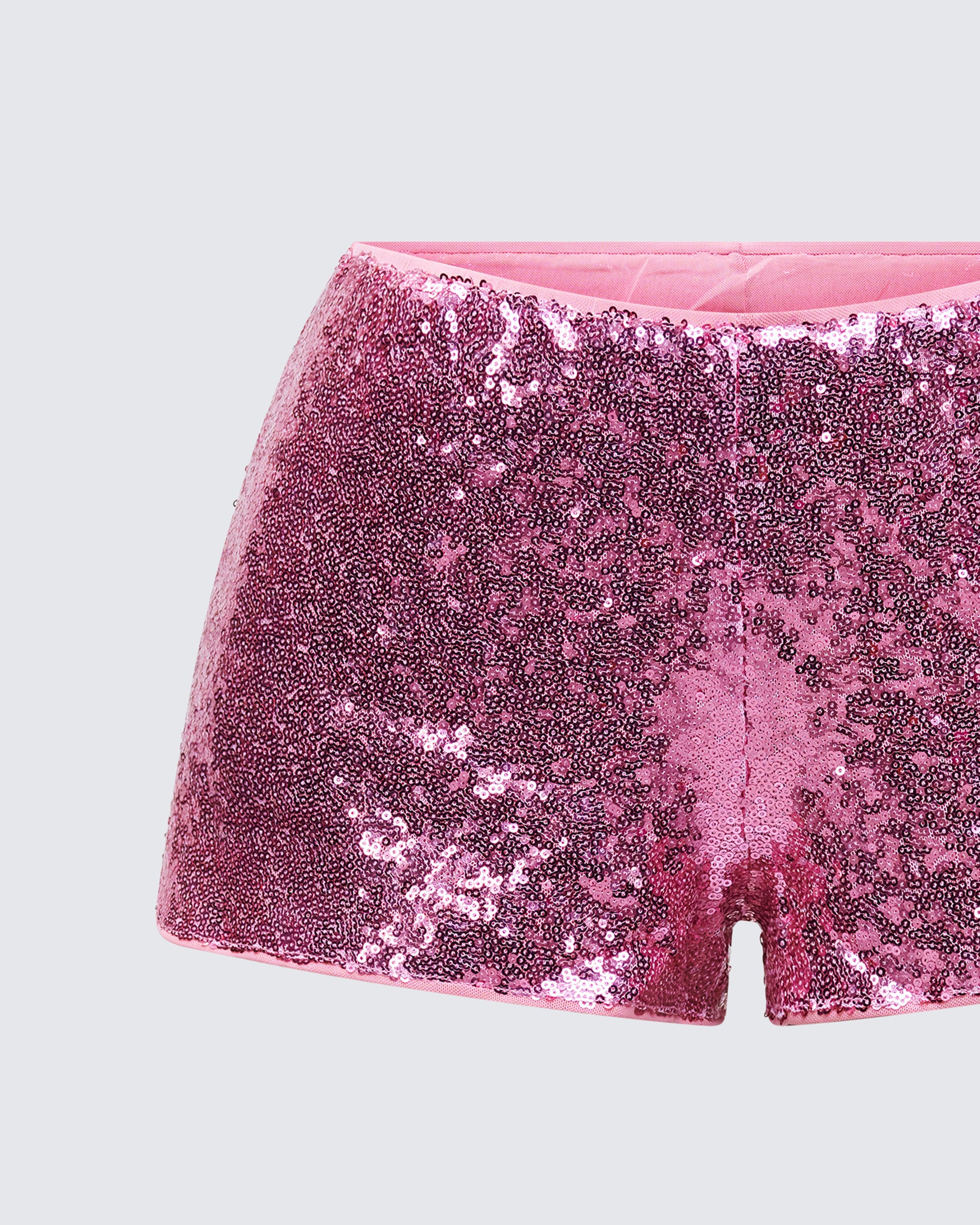 Short, shiny, and ready to cause trouble 💖 With a curve-hugging fit and high-shine finish - these pink sequin shorts shimmer with every move, catching the light and every stare all night long ✨