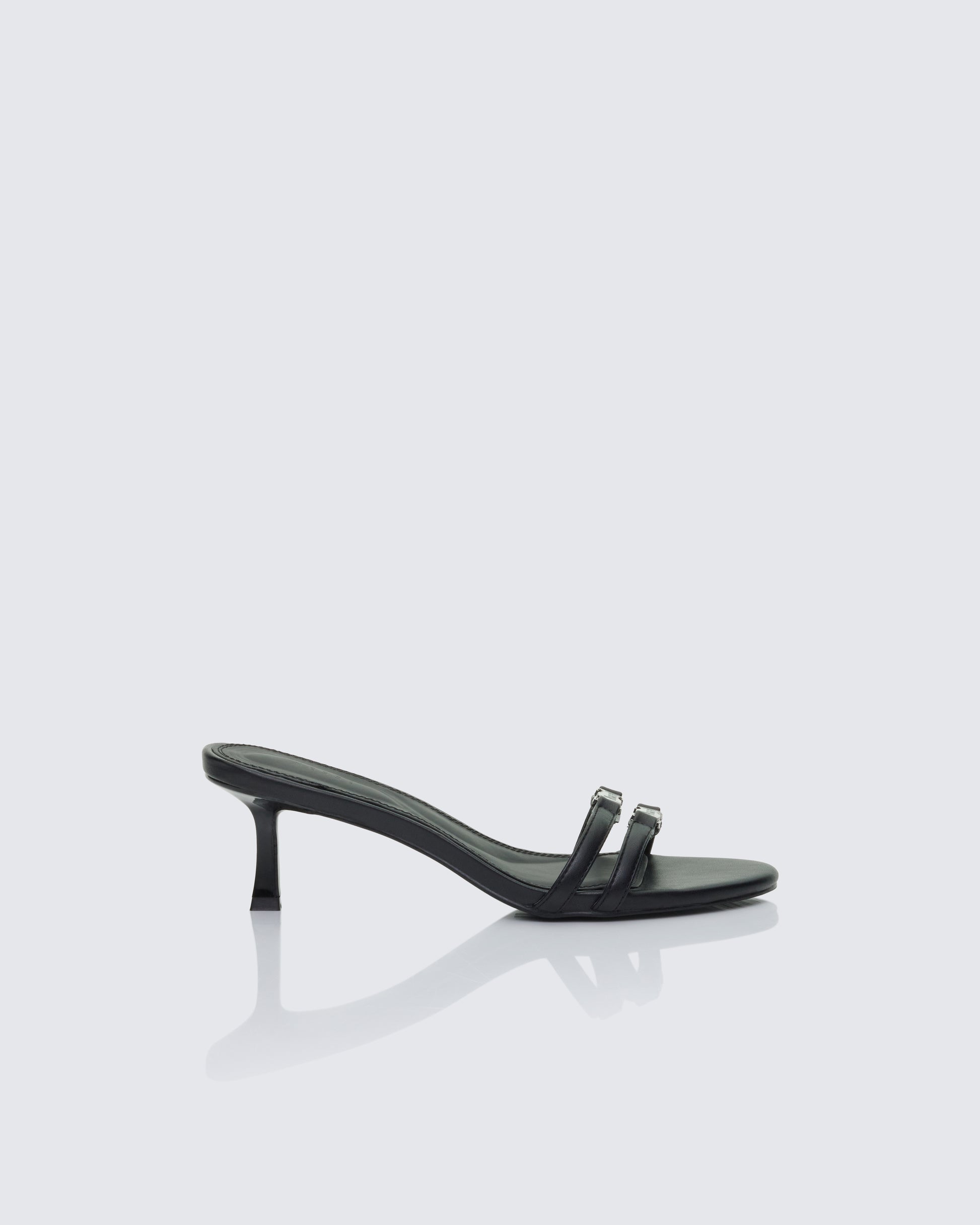 Sleek never looked so sharp 🖤 Complete with black straps that keep it minimal and buckle hardware that adds just the right bite - these kitten heels have a quiet edge that lingers long after you’ve walked away 😌