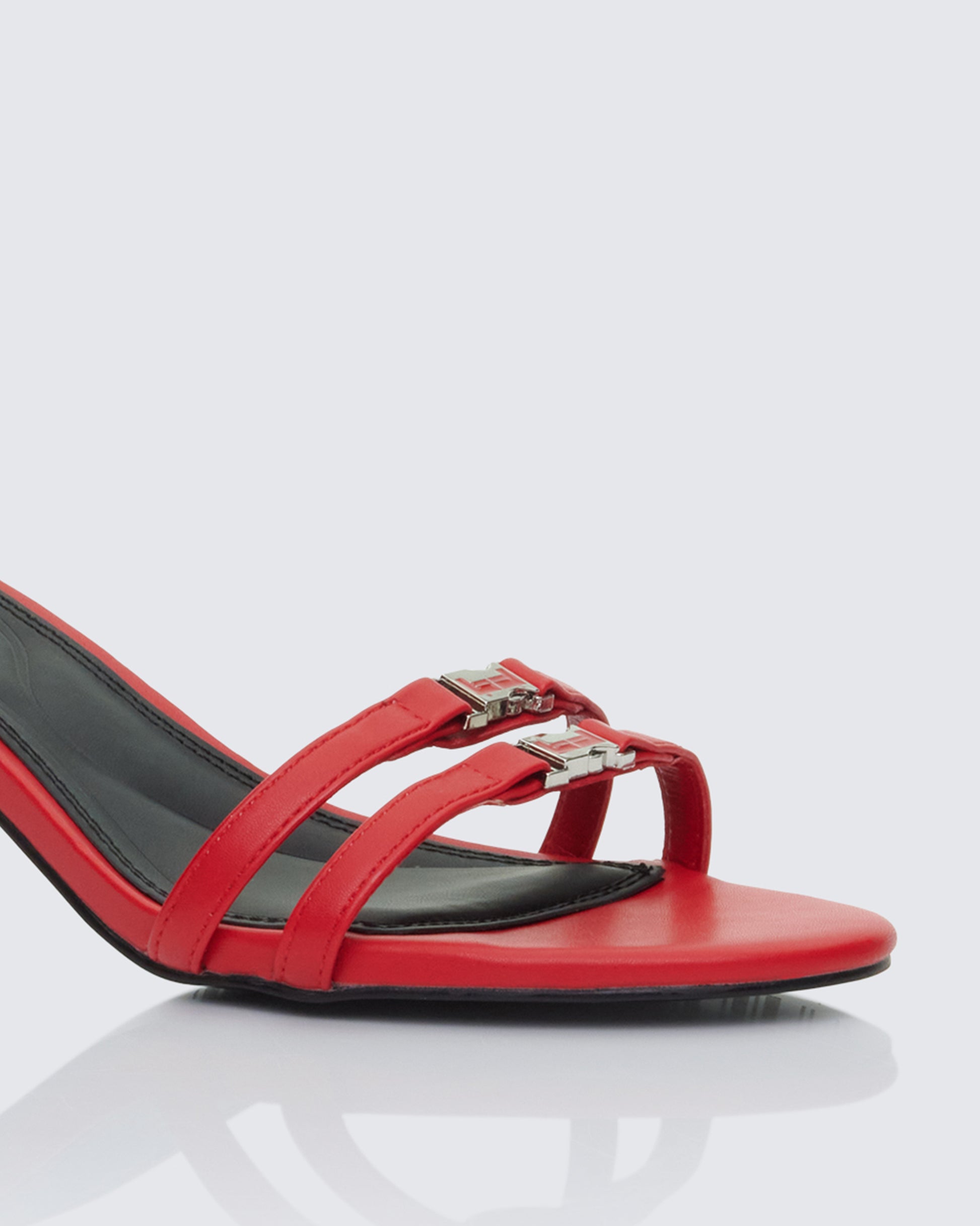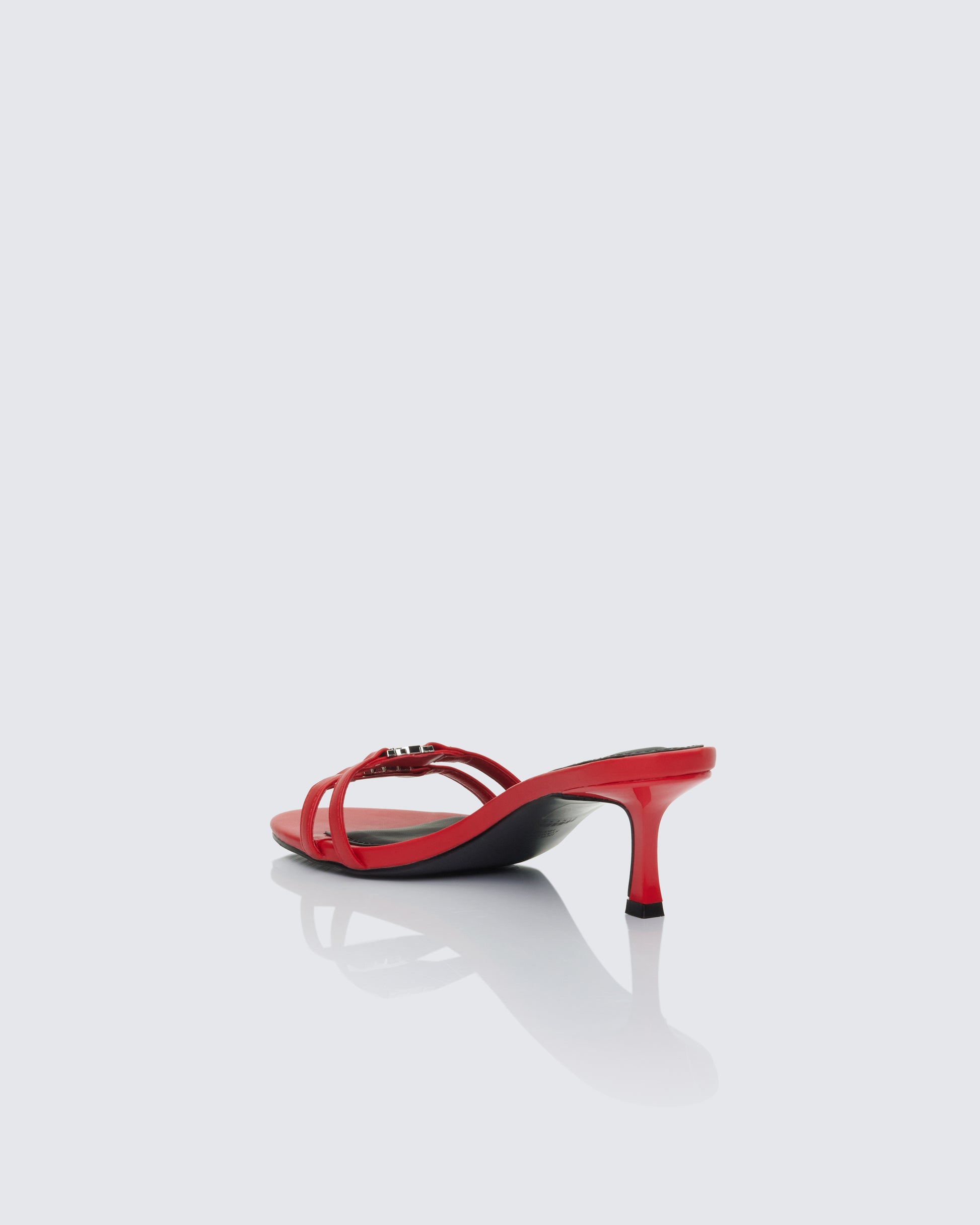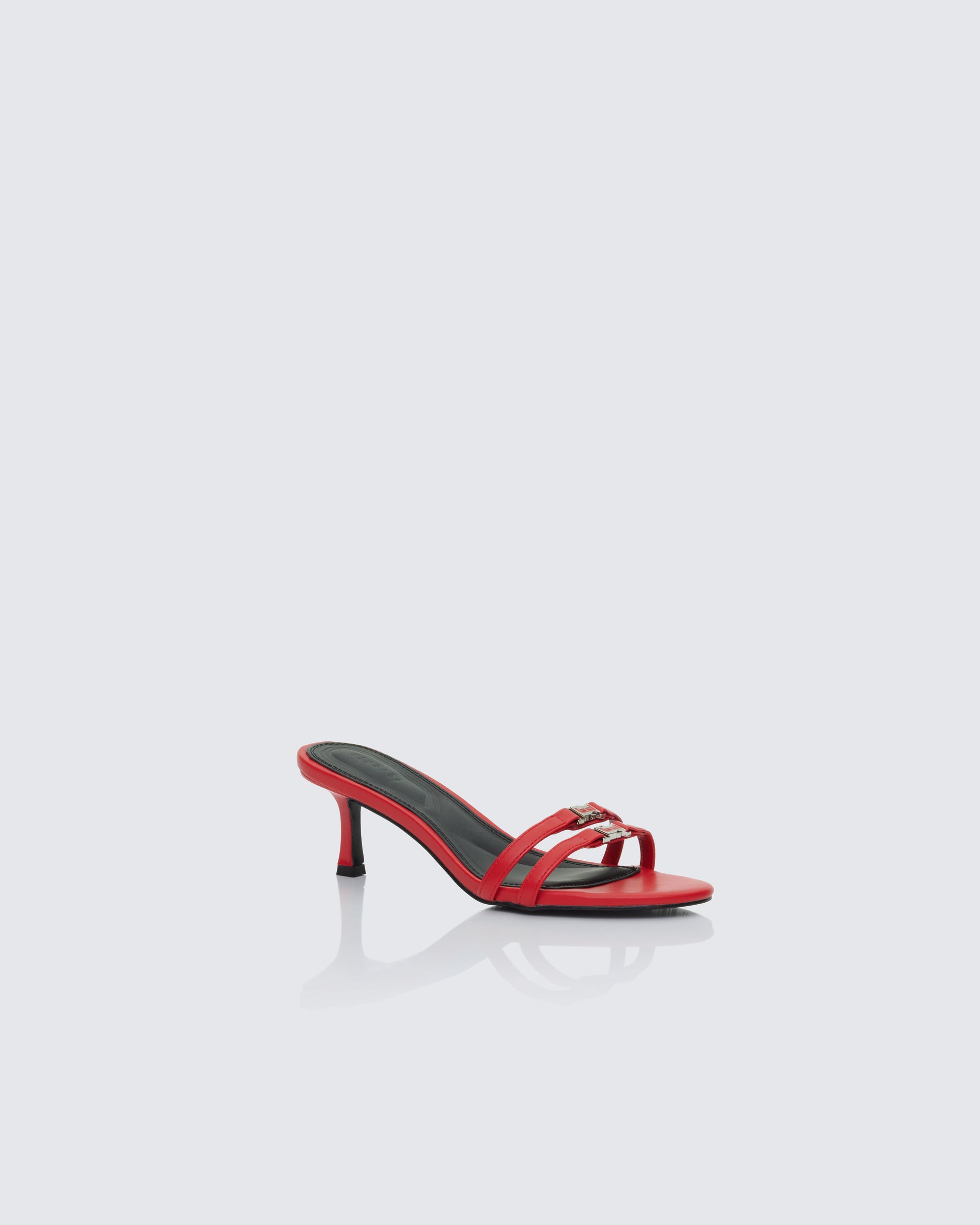 The kitten heel just got dangerous 💋 In fiery red with our signature safety buckles, these red strappy heels prove that low height doesn’t mean low impact ❤️