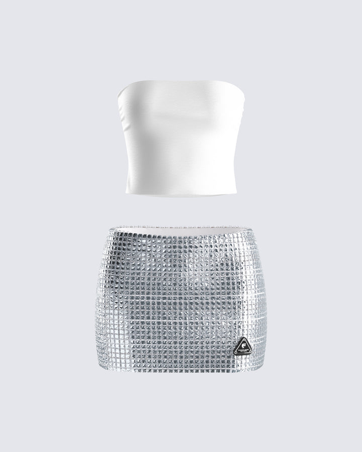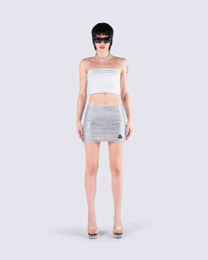 Liora Silver Rhinestone Mini Skirt Regular price $128.00Regular priceUnit price / per-