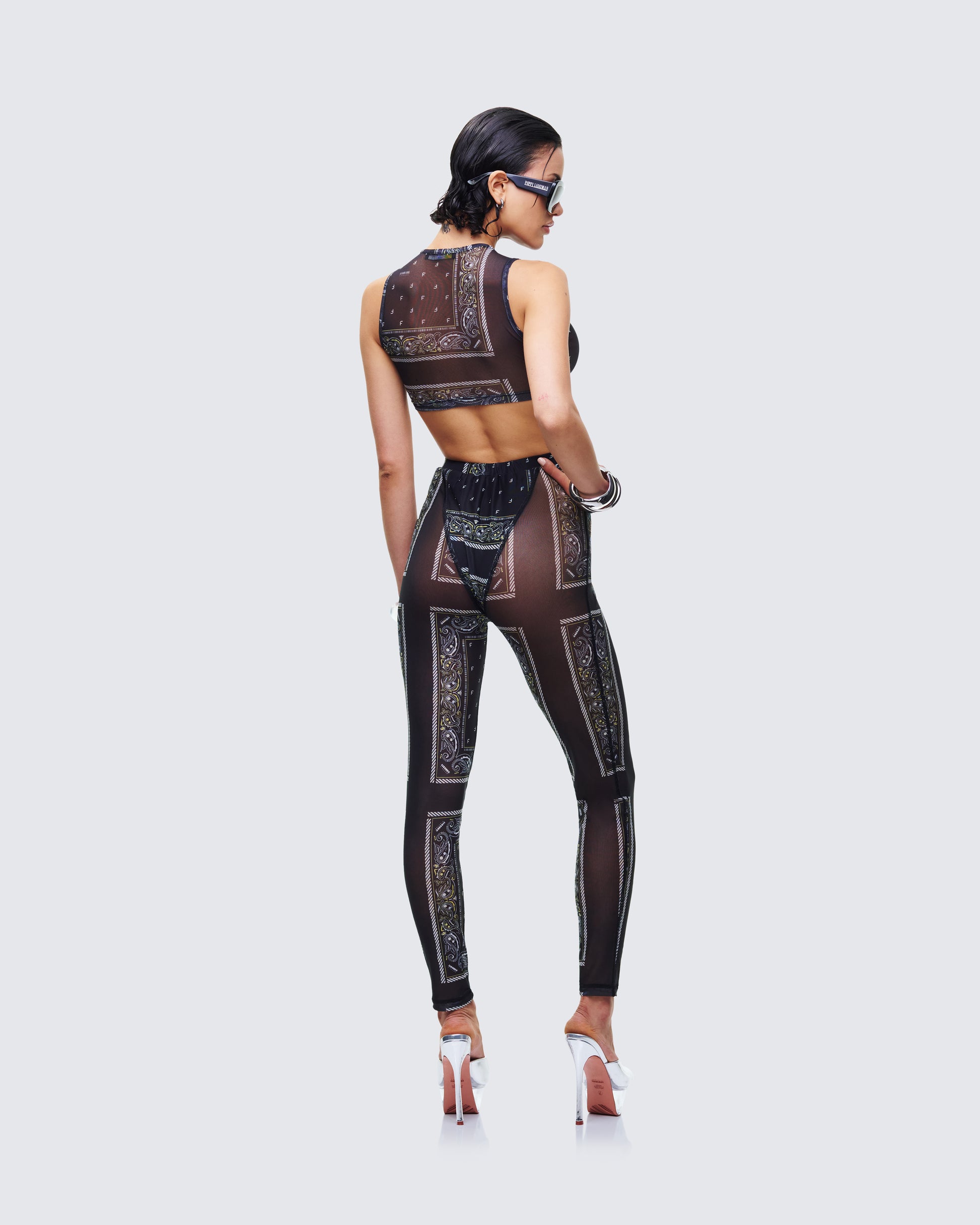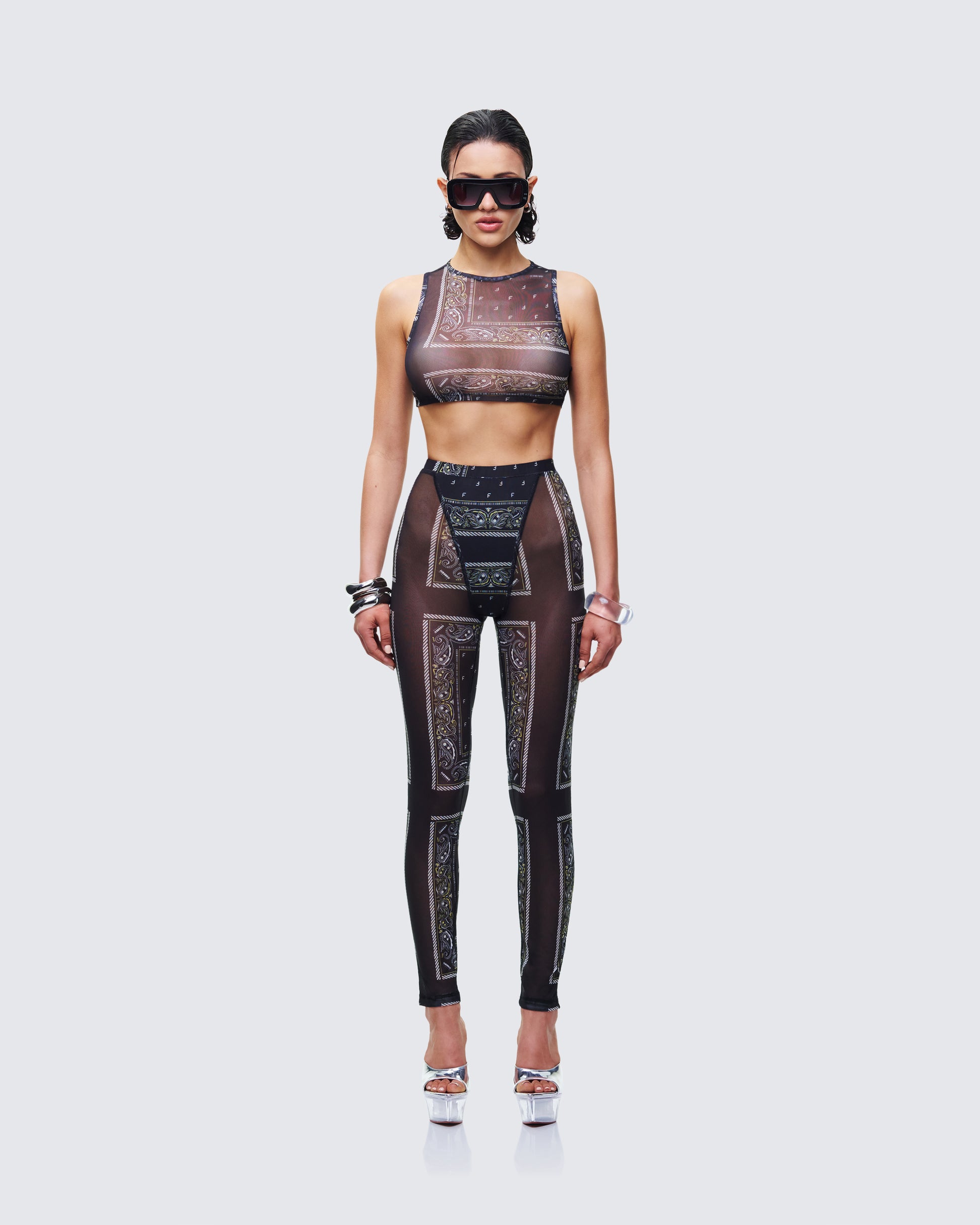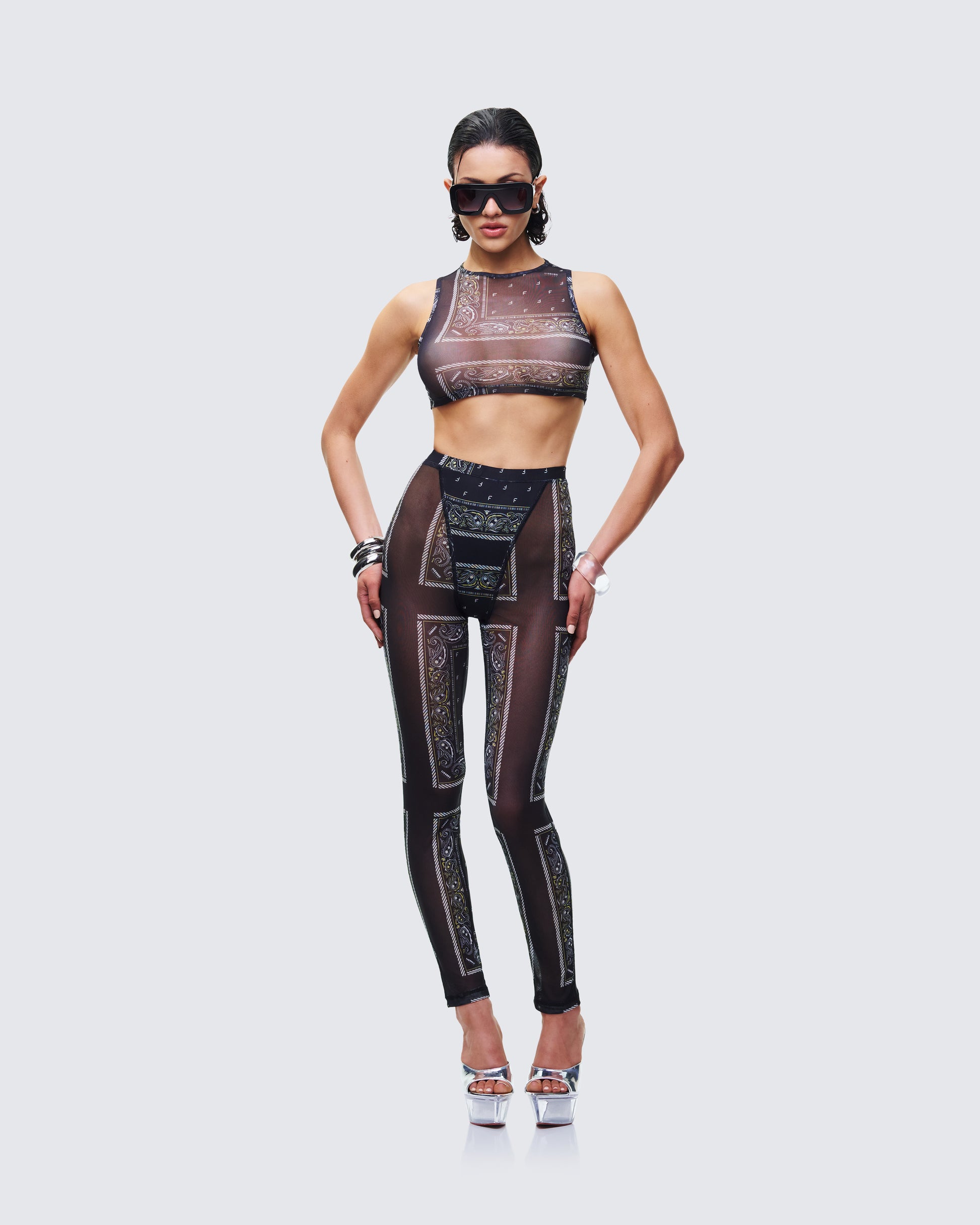 Be the type of girl they don't want to mess with in this matching two-piece set π Featuring a black bandana mesh top and leggings for a look that gives off baddie energy in the most intimidating way π€