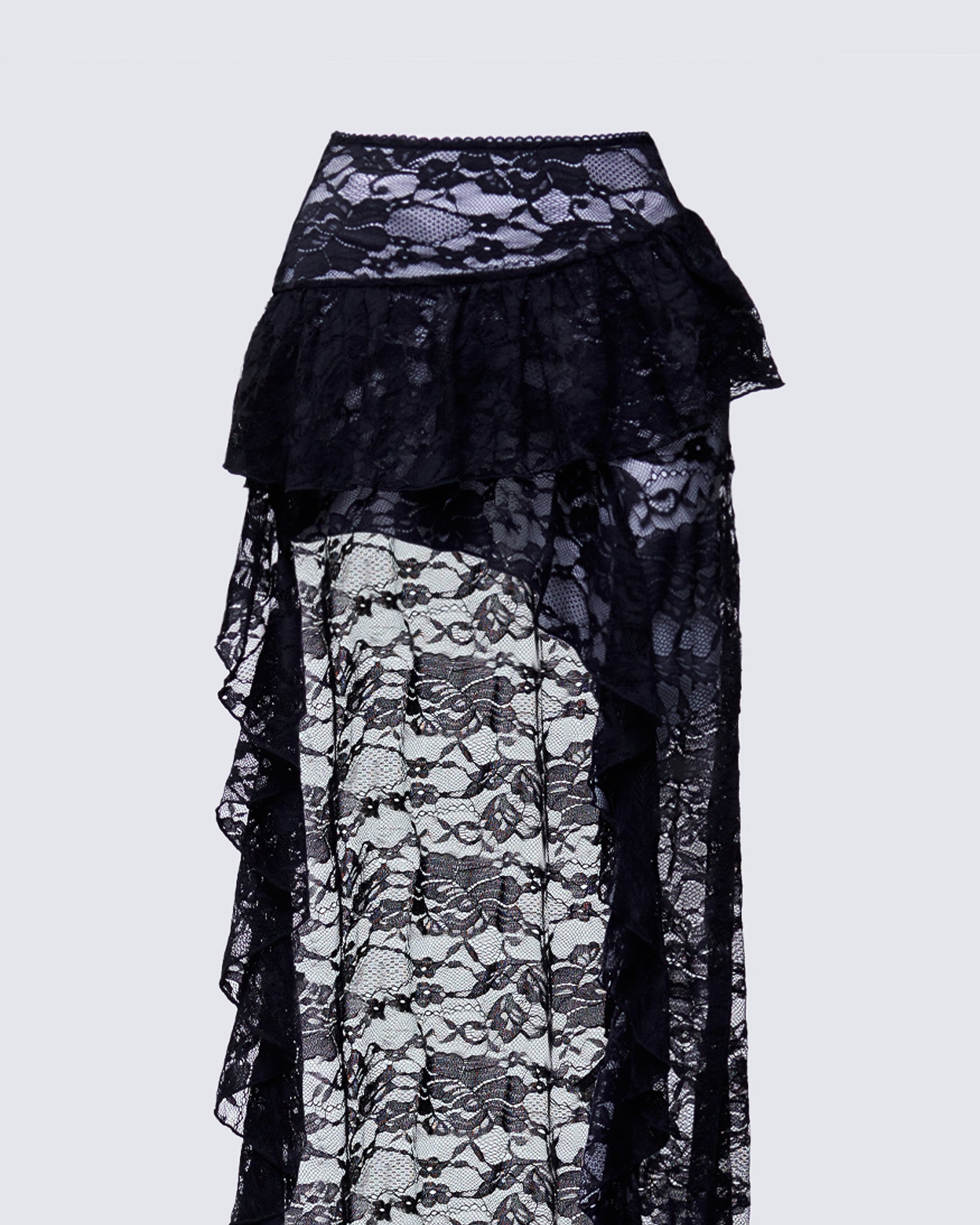 Rina Black Lace Asymmetrical Hem Ruffle Skirt