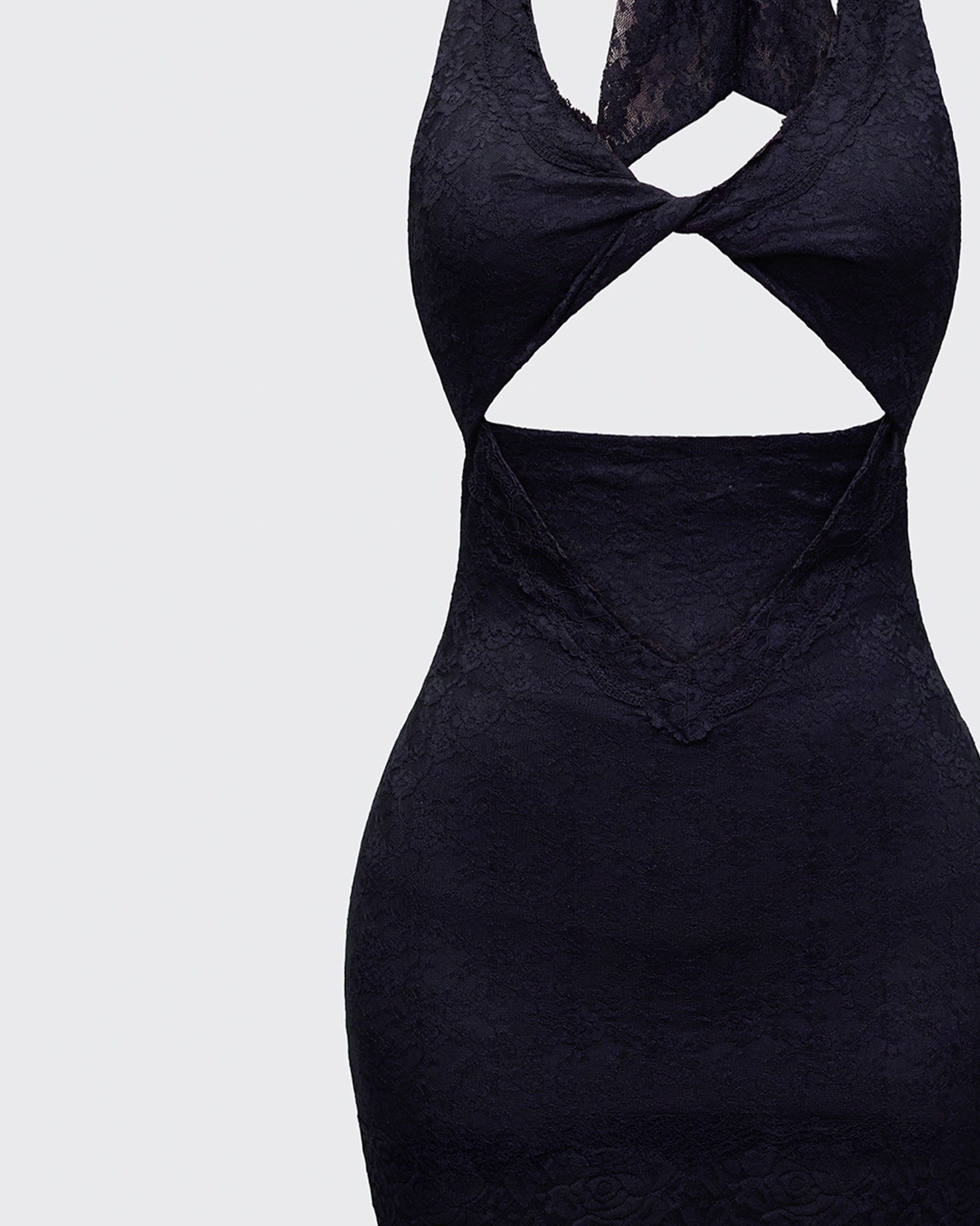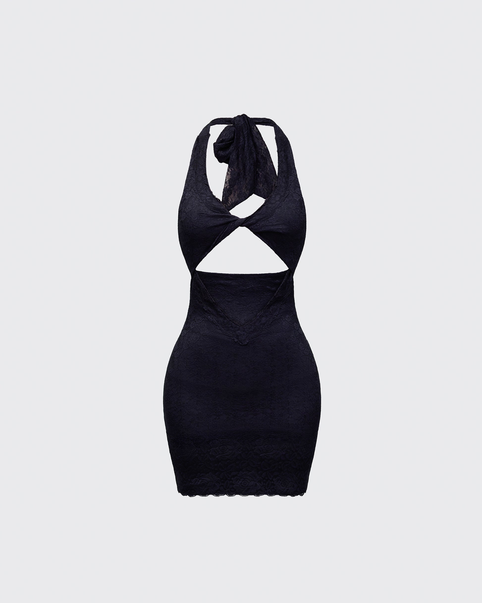 Cut to the chase 💅 This black lace mini, featuring a twist neckline detail and diamond centre cut out, is your new go to LBD for those nights where you wanna feel sexy but sweet 😘