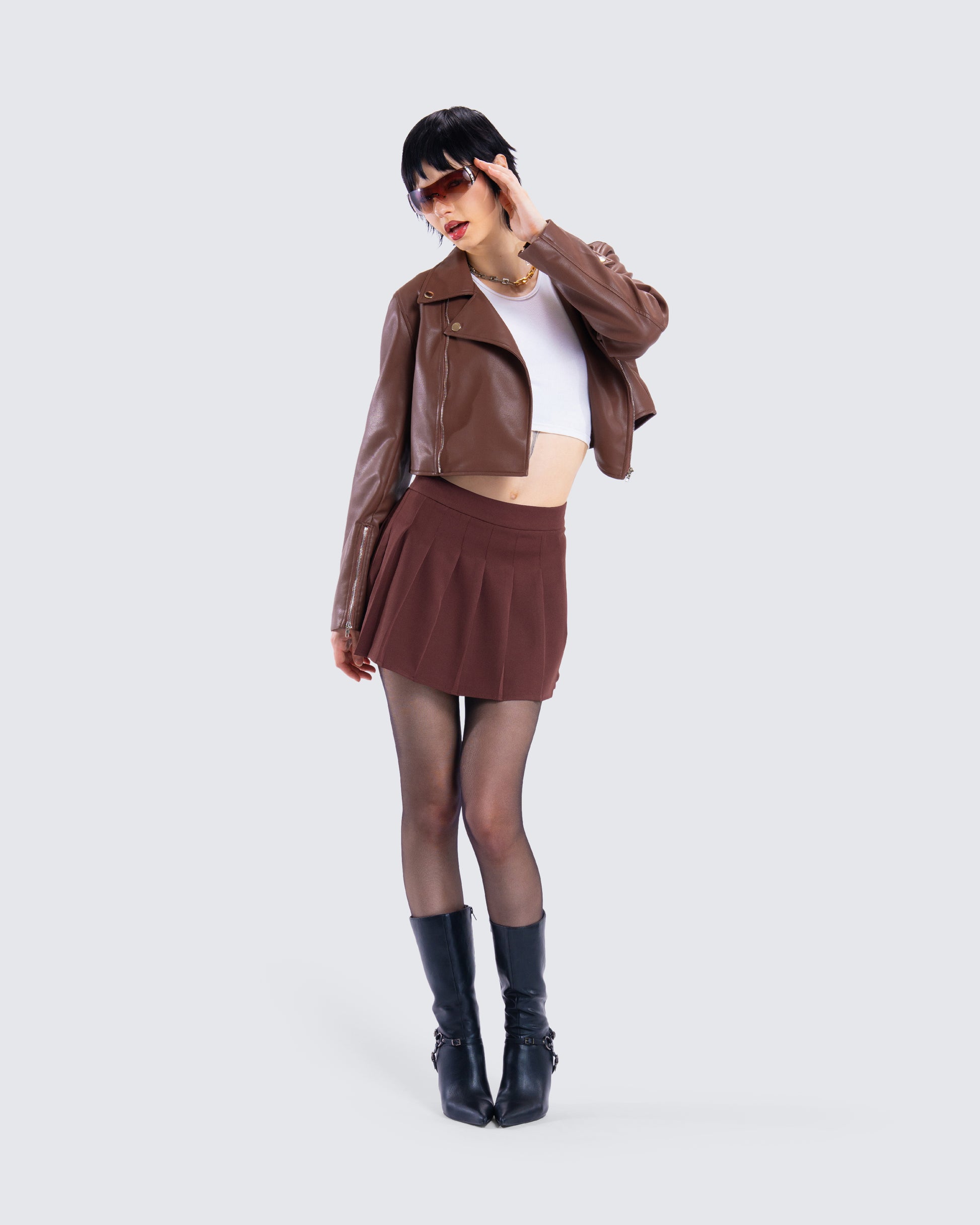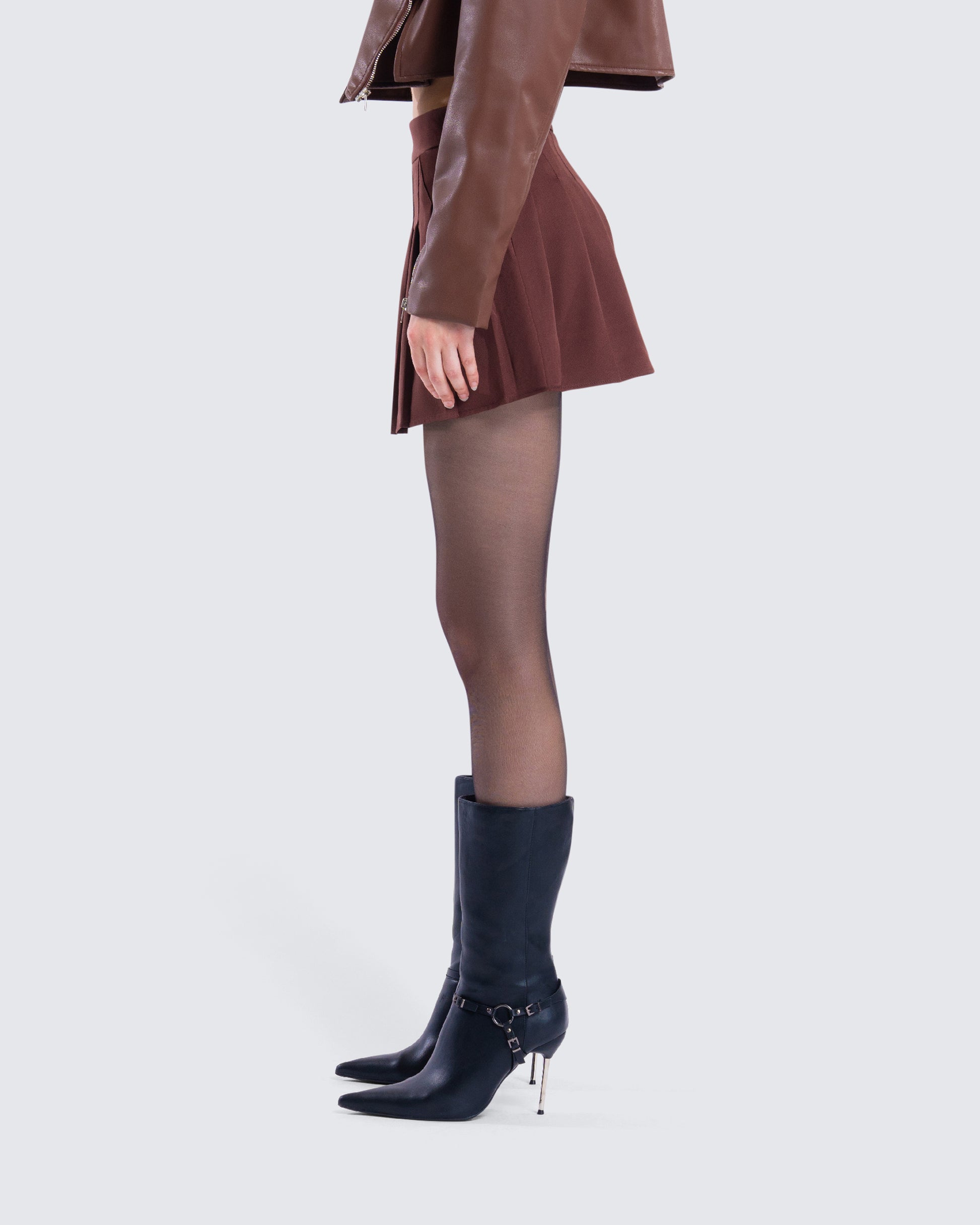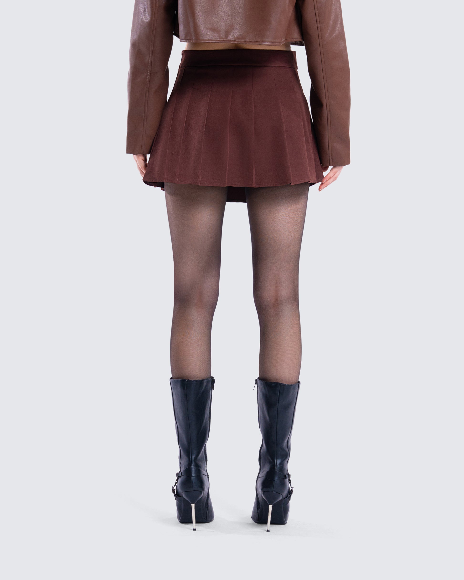 Ronny Brown Pleated Mini Skirt