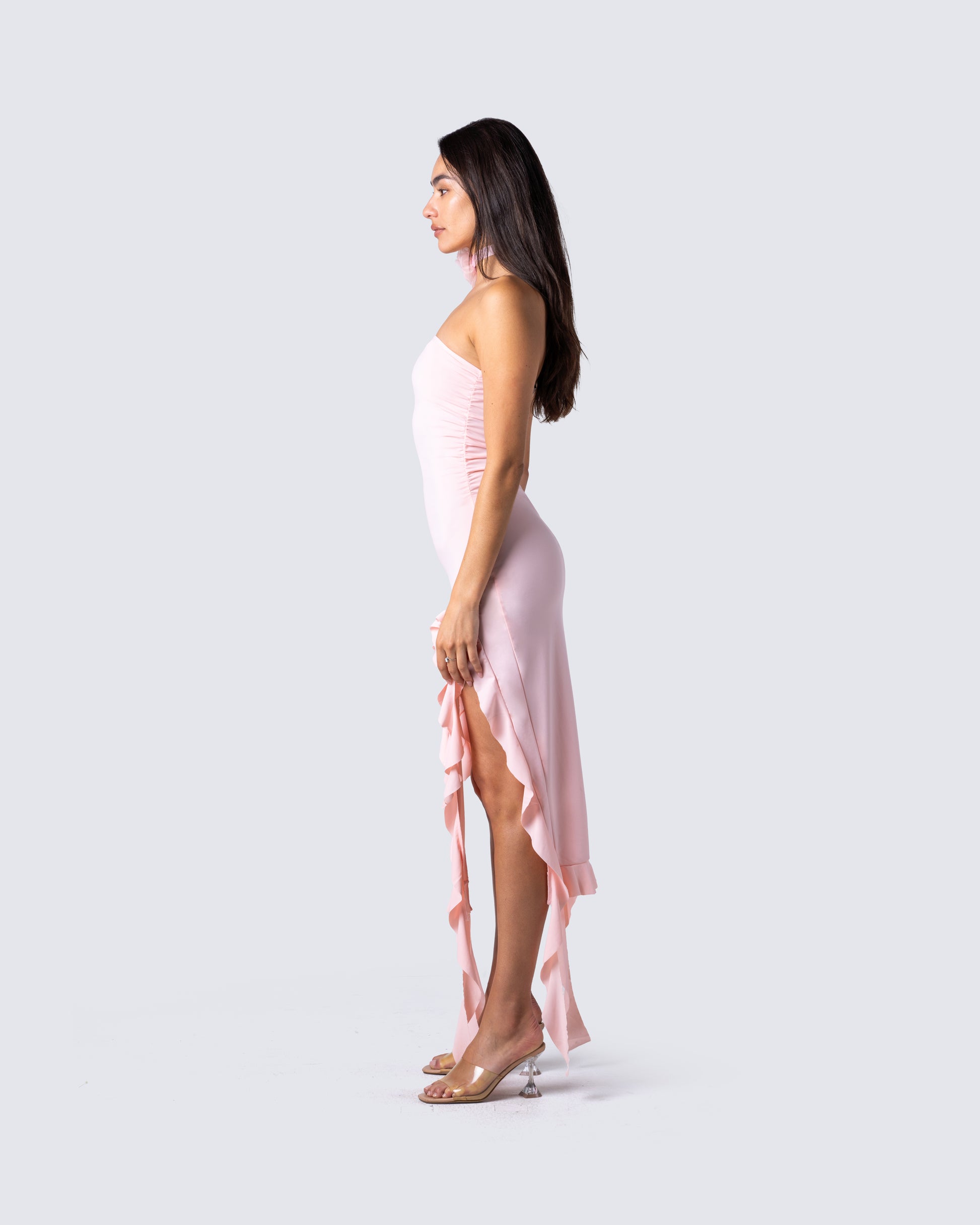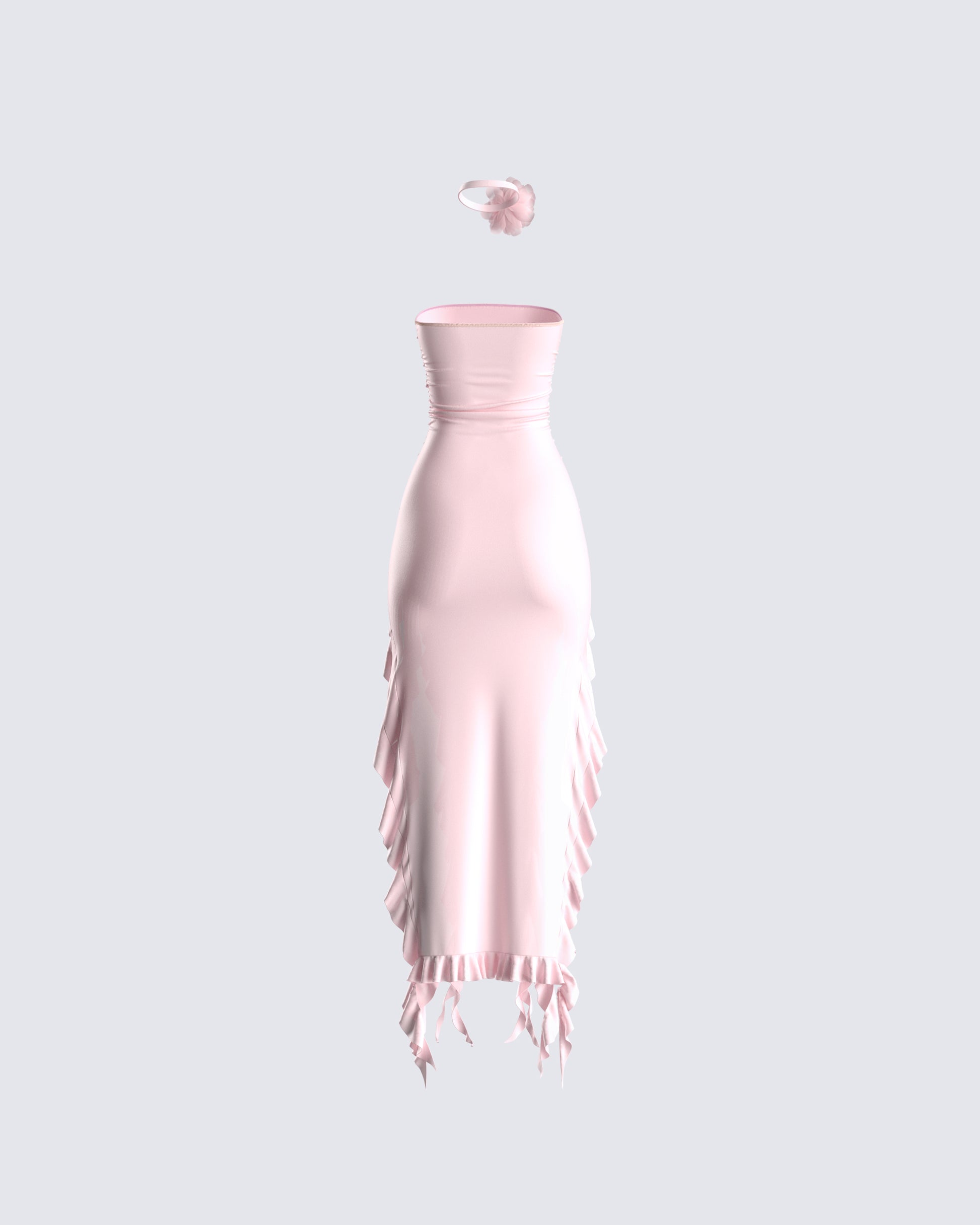 Prepare to get the attention you deserve in this 2 piece set that screams fabulousness from every angle 💕 Featuring a pink strapless ruffle dress, and a pink flower choker for a look that will cause everyone to fall to their knees 😚