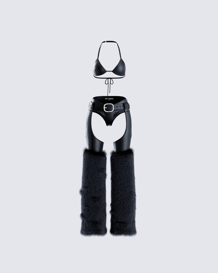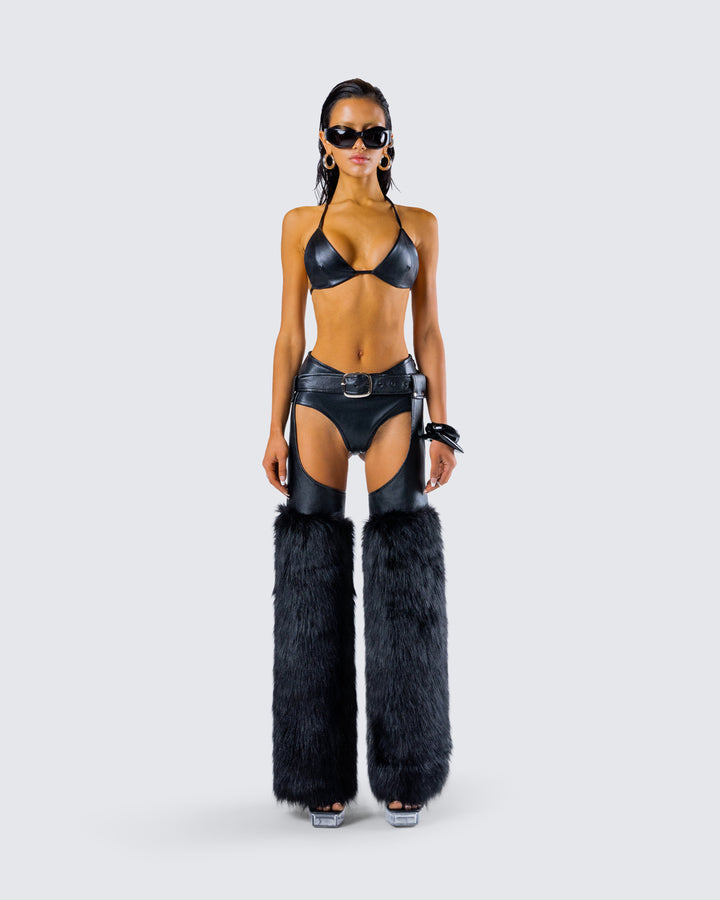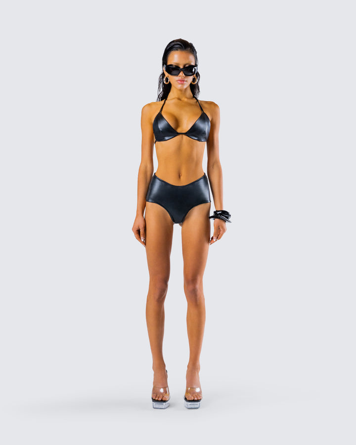 Zaria Black Vegan Leather Bikini Top